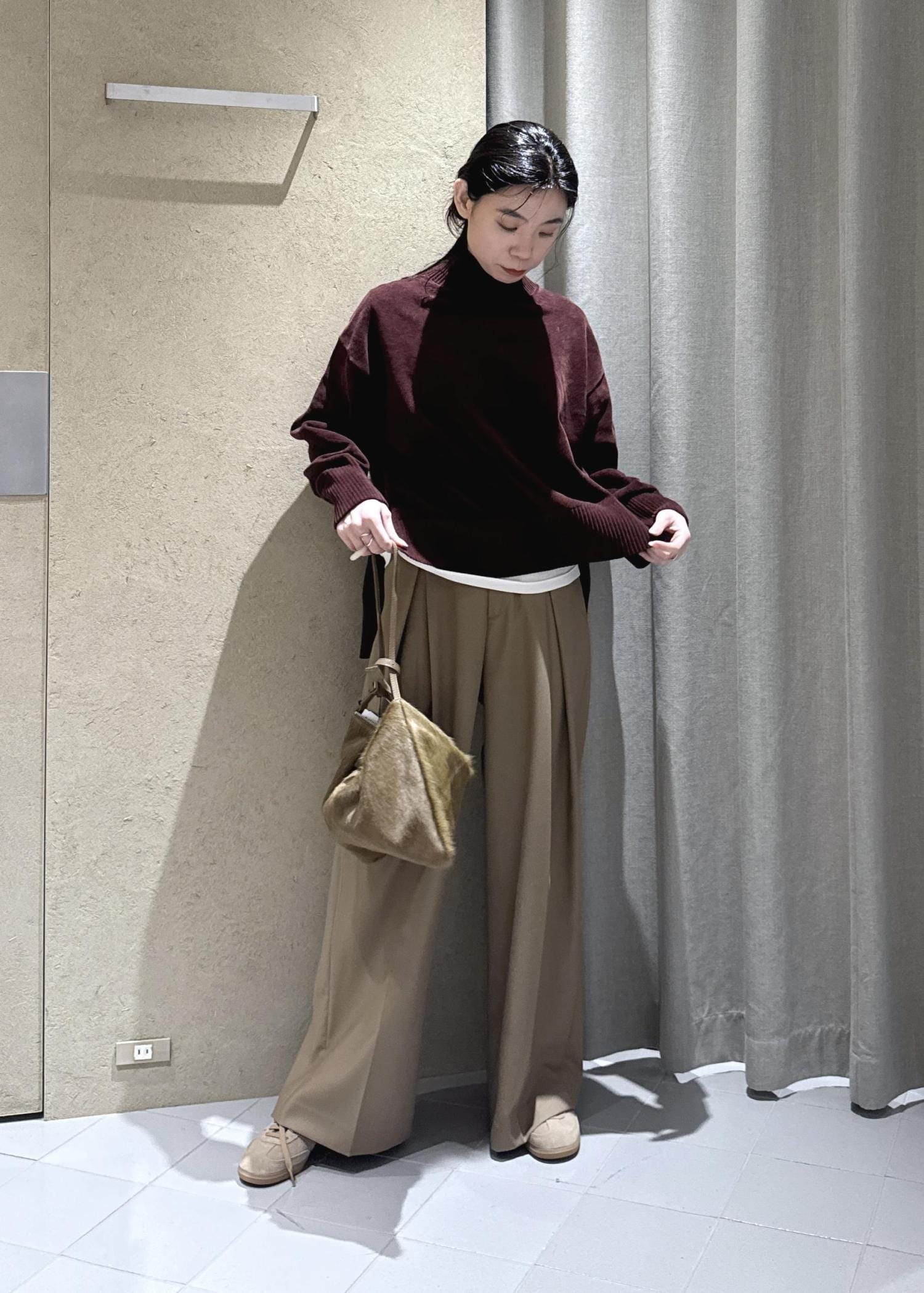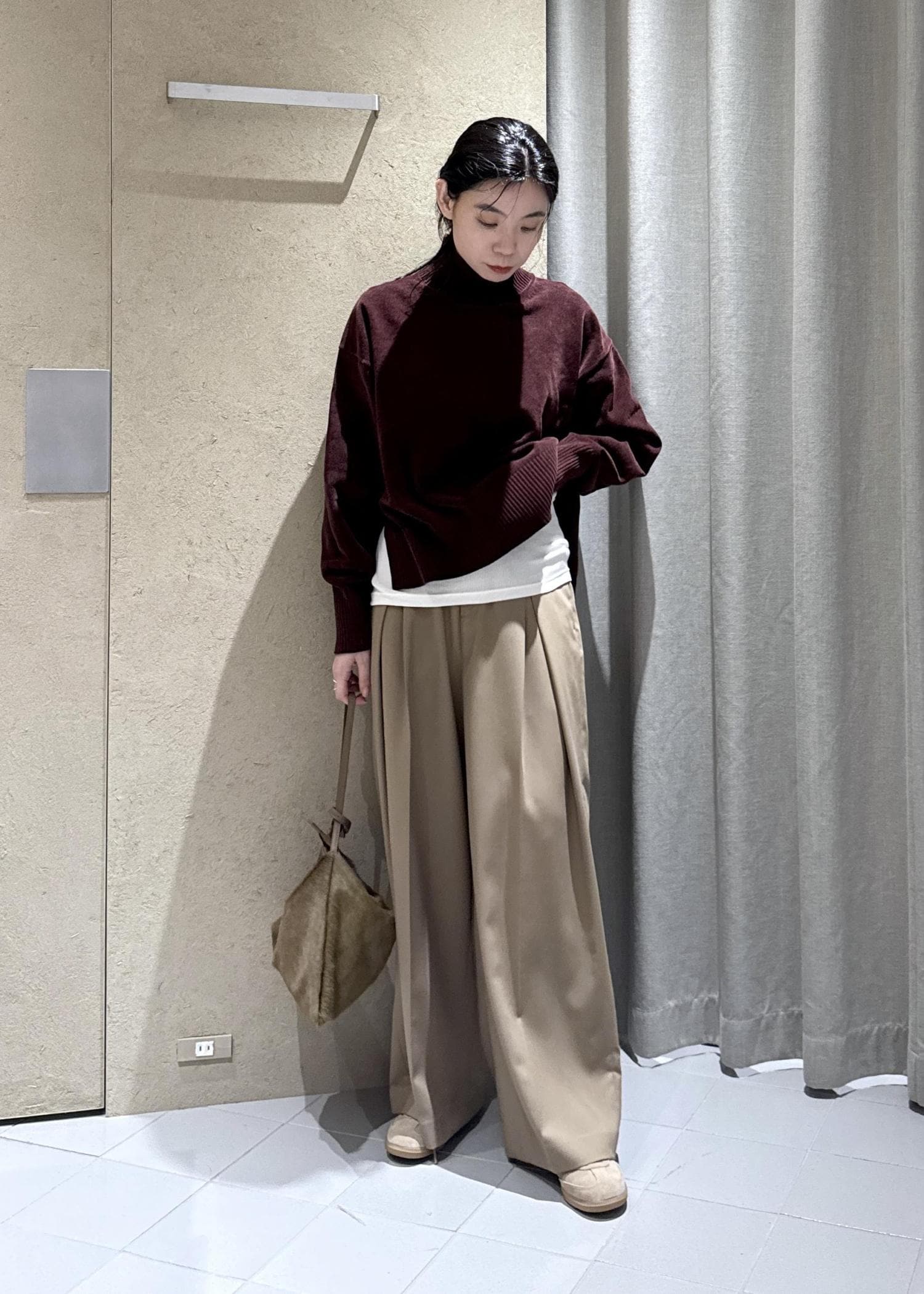 SALON adam et ropéインバーテッドタックパンツ/スラックスベージュ / S¥25,300レビュー腰高に見えて脚長効果のあるパンツ。
