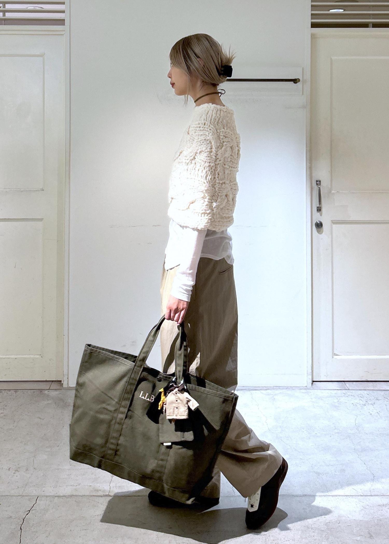 SALON adam et ropé【L.L.Bean for SALON(エル・エル・ビーン)】別注グローサリー・トート&チャームポーチカーキ / F¥7,920レビュー【サイズ感】