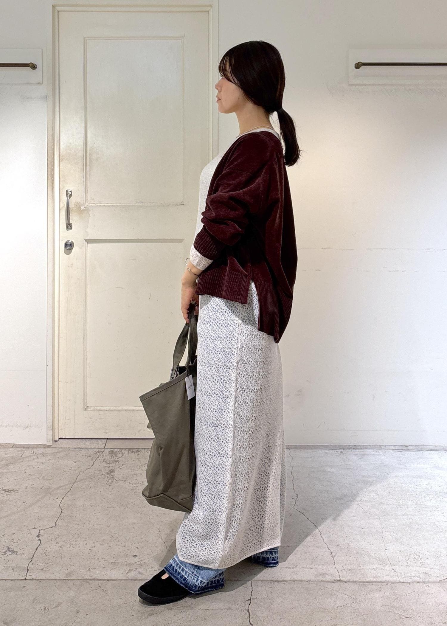 Creamy Cottonのブラウンのカーディガンと合わせて秋色コーデにしてみました。