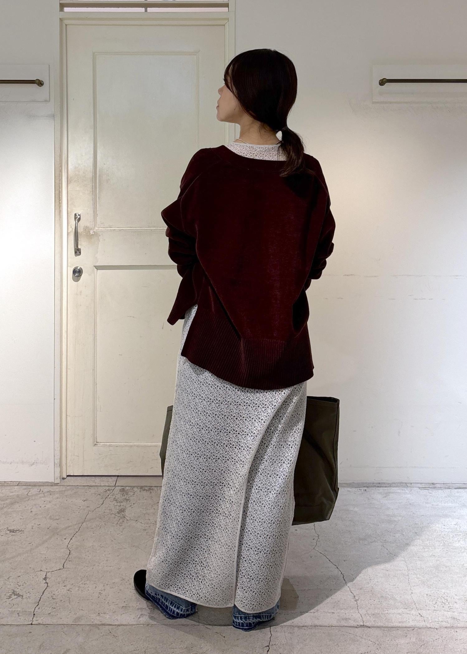 SALON adam et ropéVネックカーディガン-CreamyCotton /クリーミーコットン-ブラウン / F¥20,900レビュー丈は腰あたり、後ろは長めなのでヒップあたりまであります。