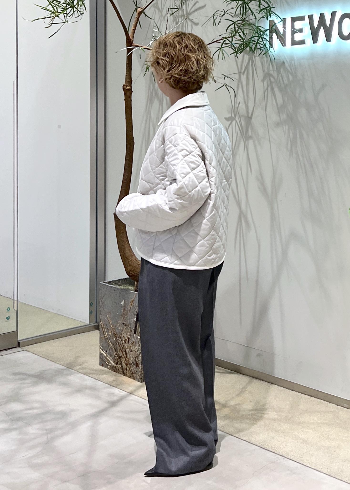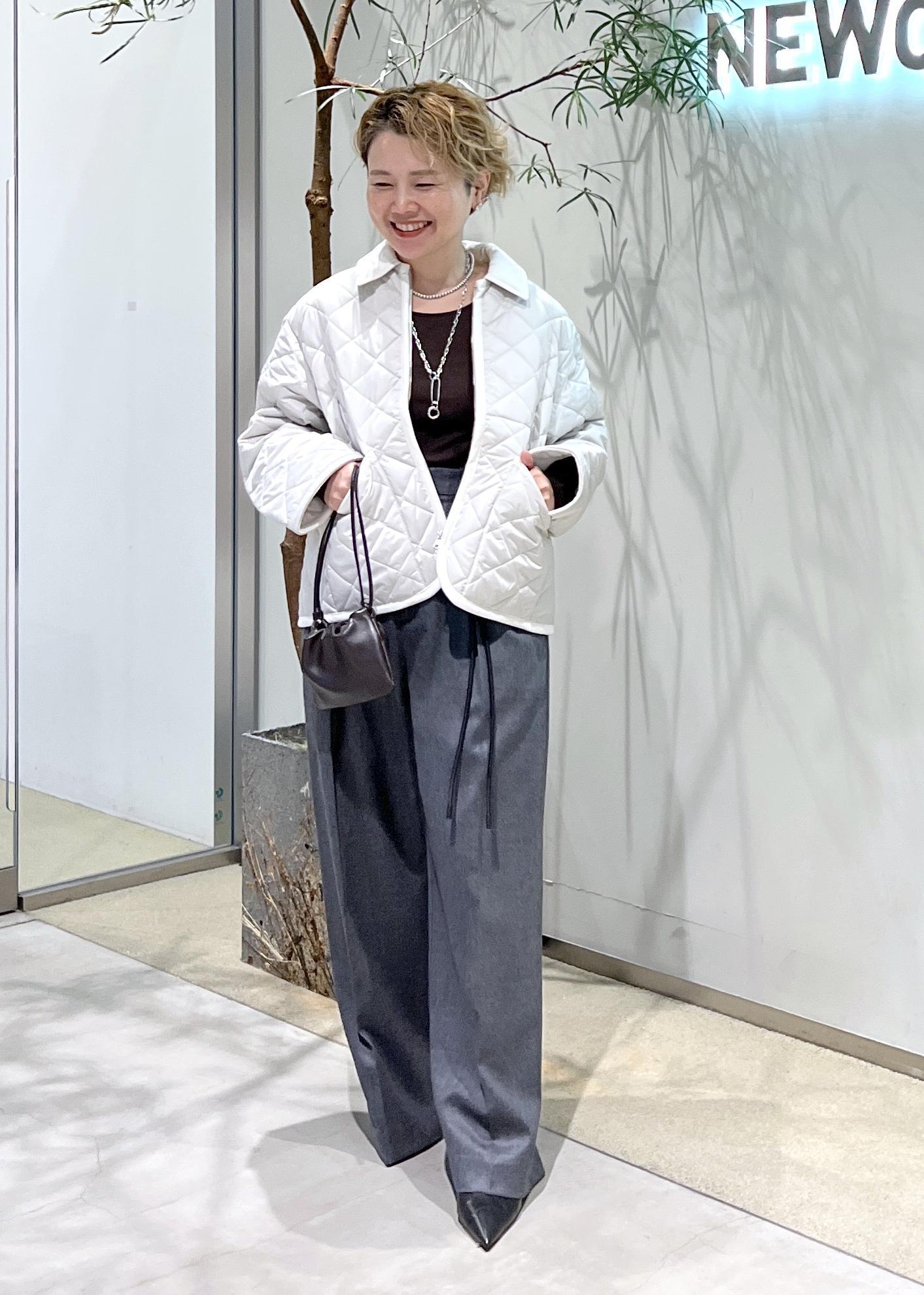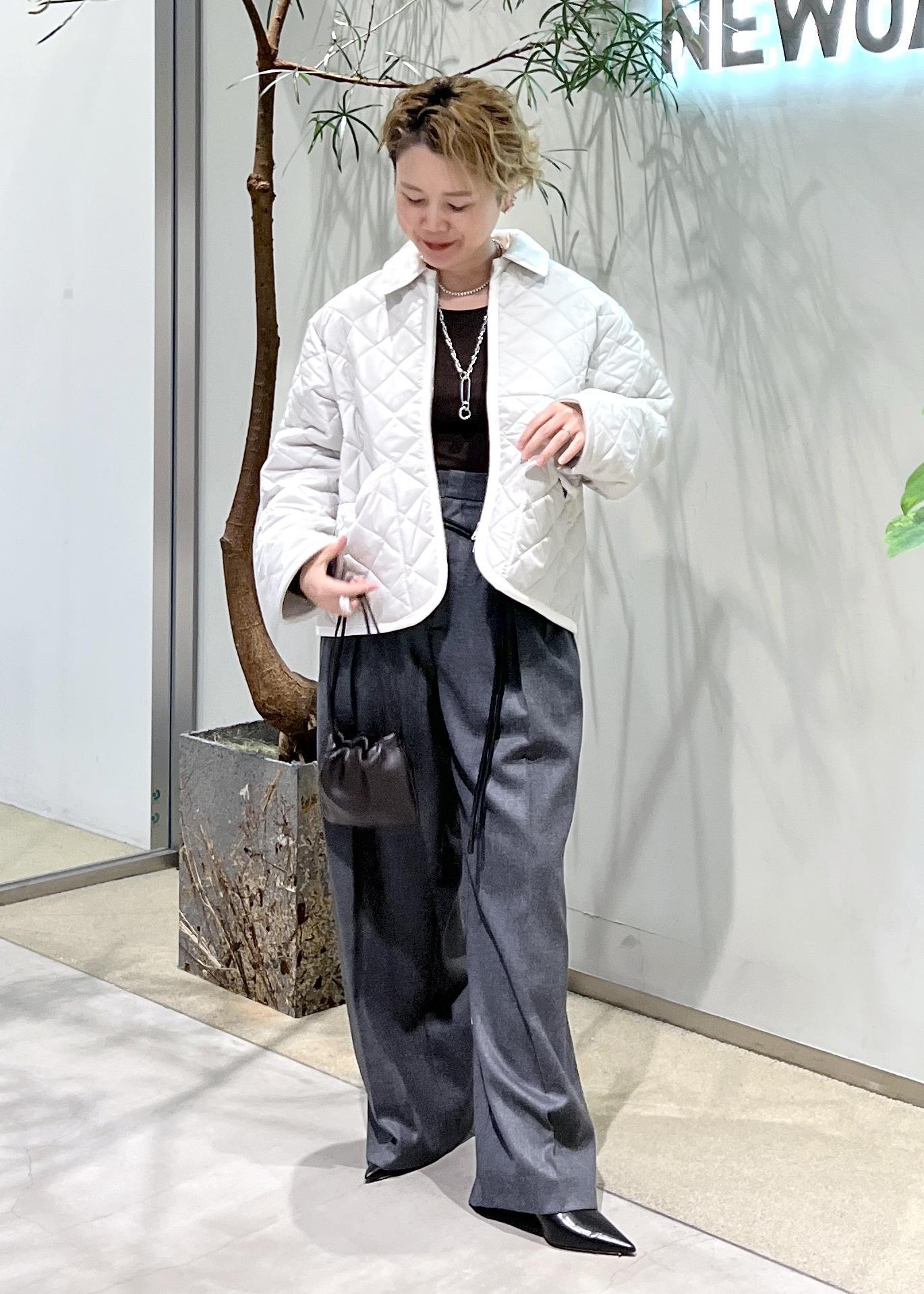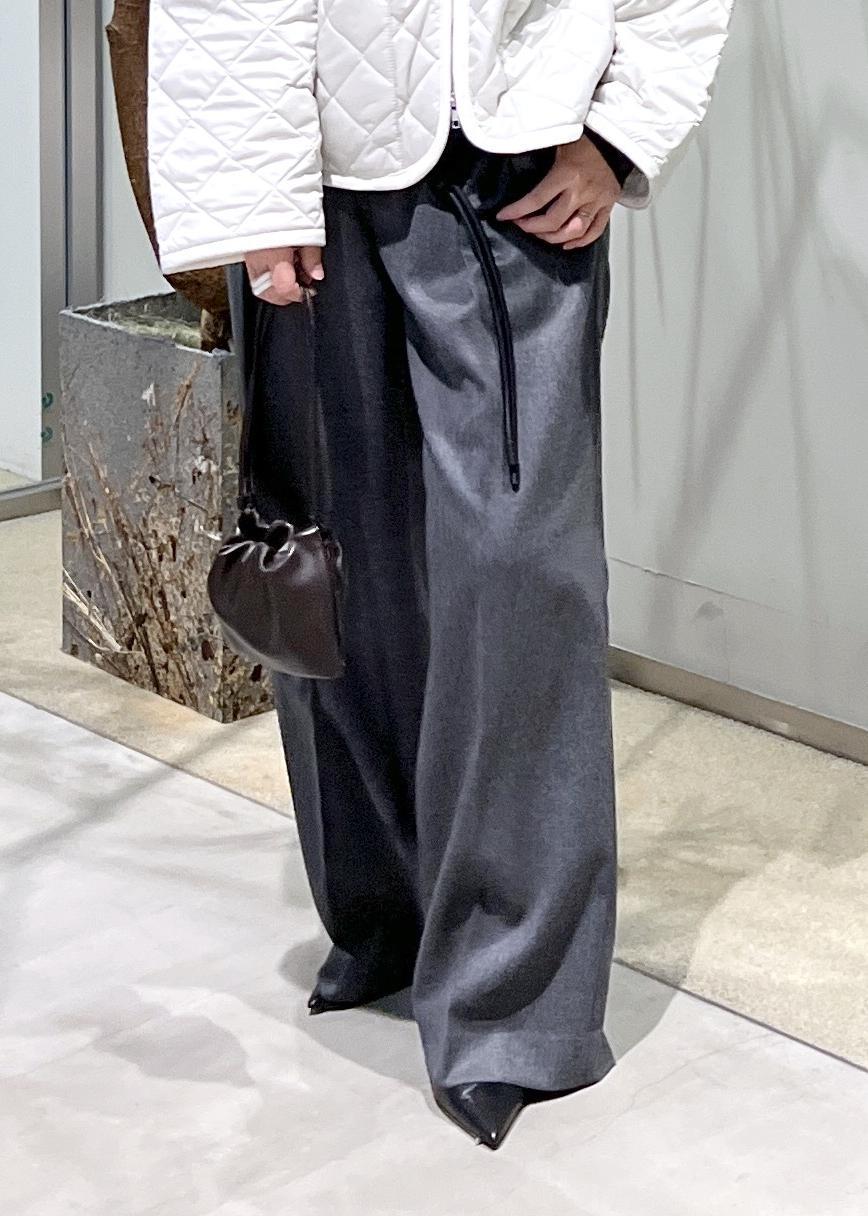 柔らかく滑らかな質感。フロントにタックが入っていて、横から見たシルエットがしっかりワイド感があります。 -