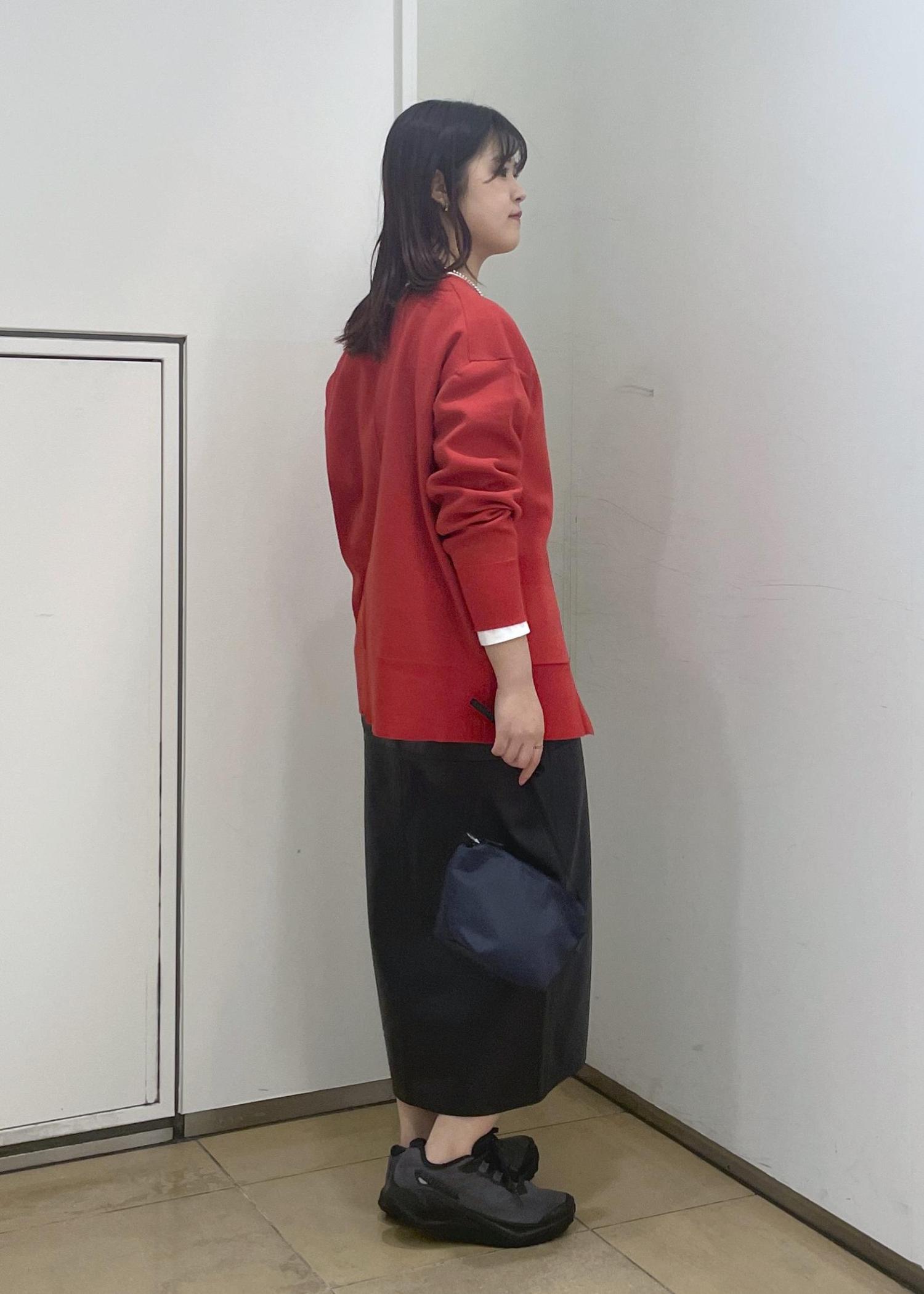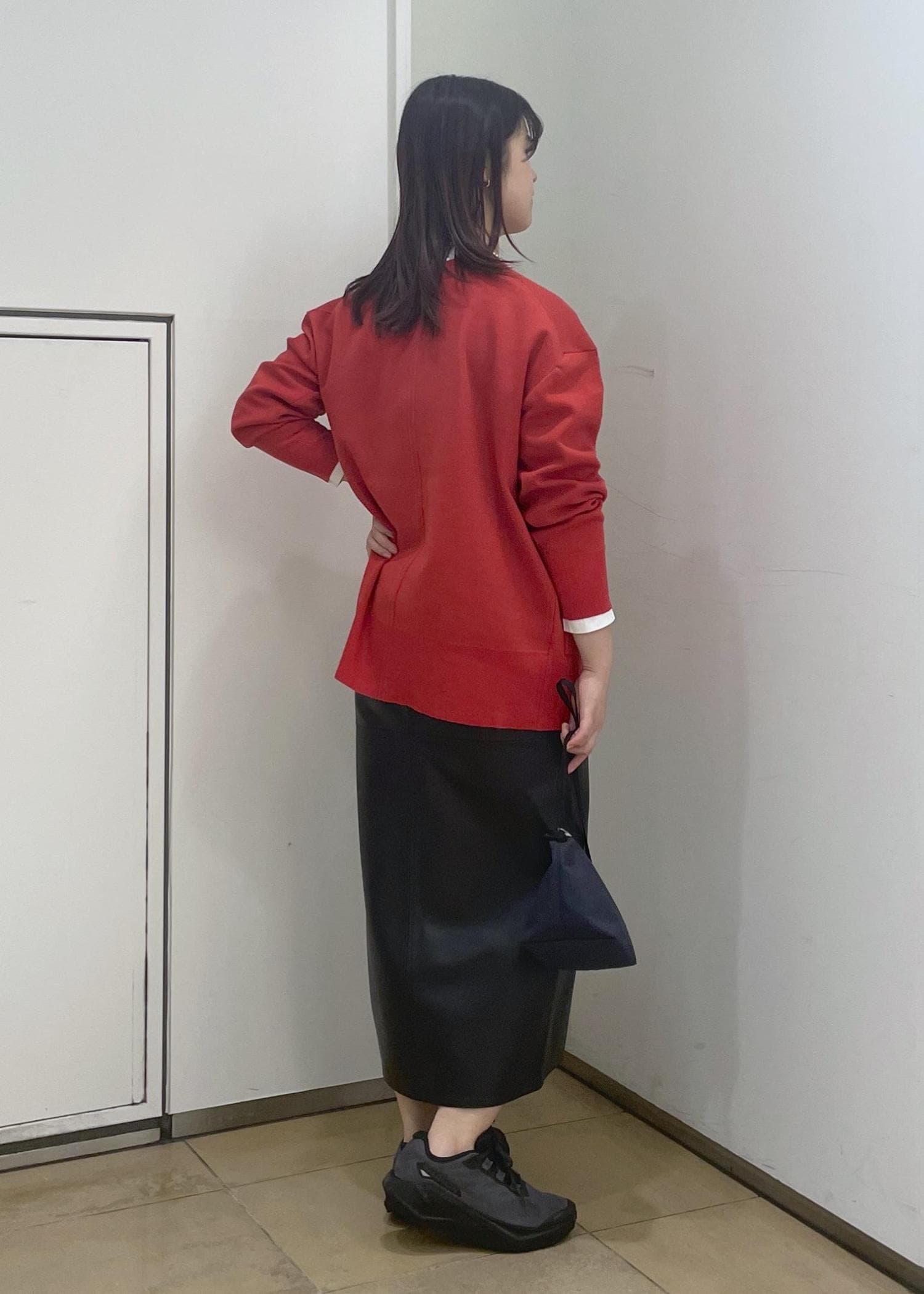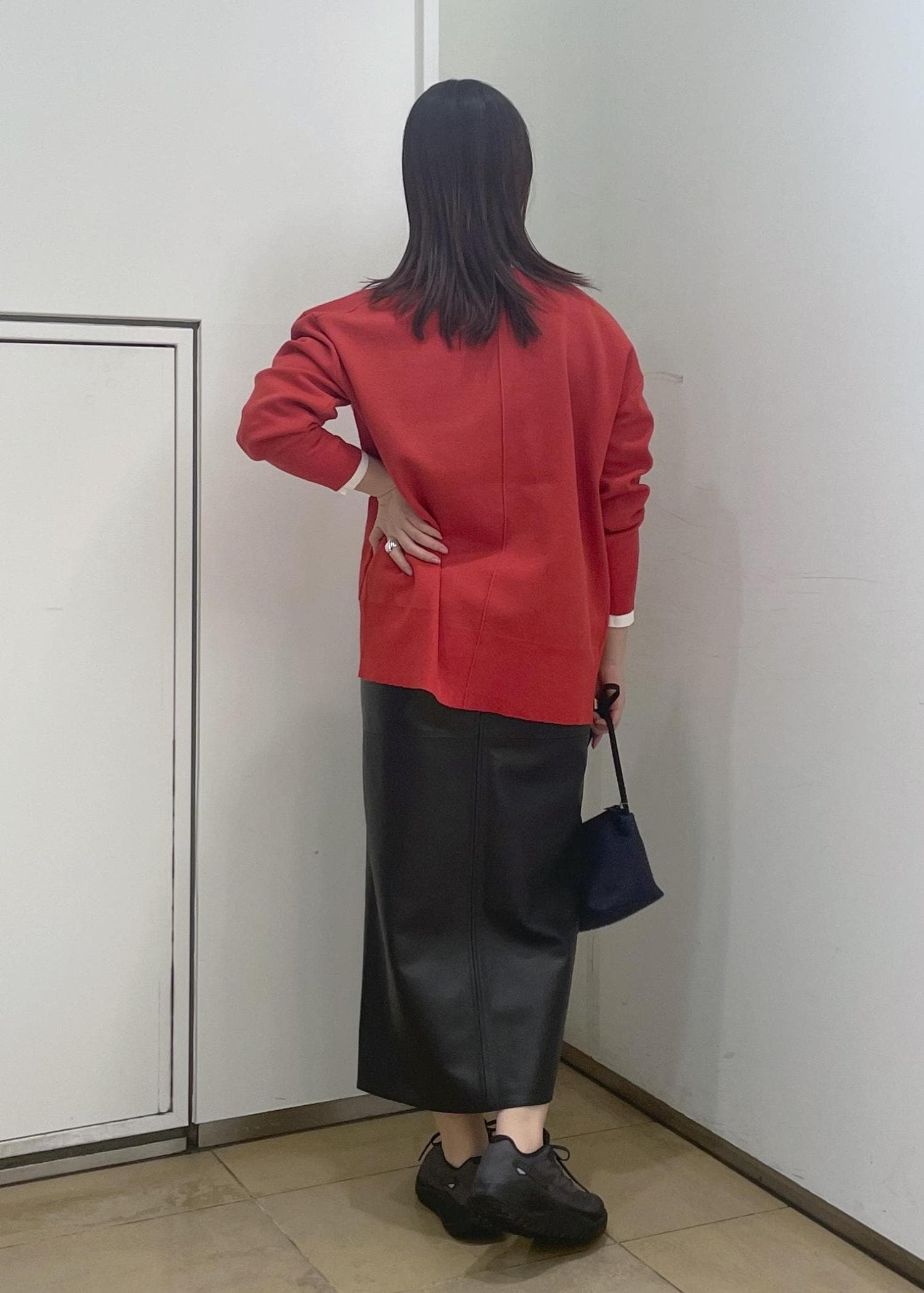 柔らかく軽いラムレザーなので着ていて窮屈感を感じにくいです。スリットが入っているのでタイトスカートですが歩きやすくシルエットもスッキリ見えます。 -