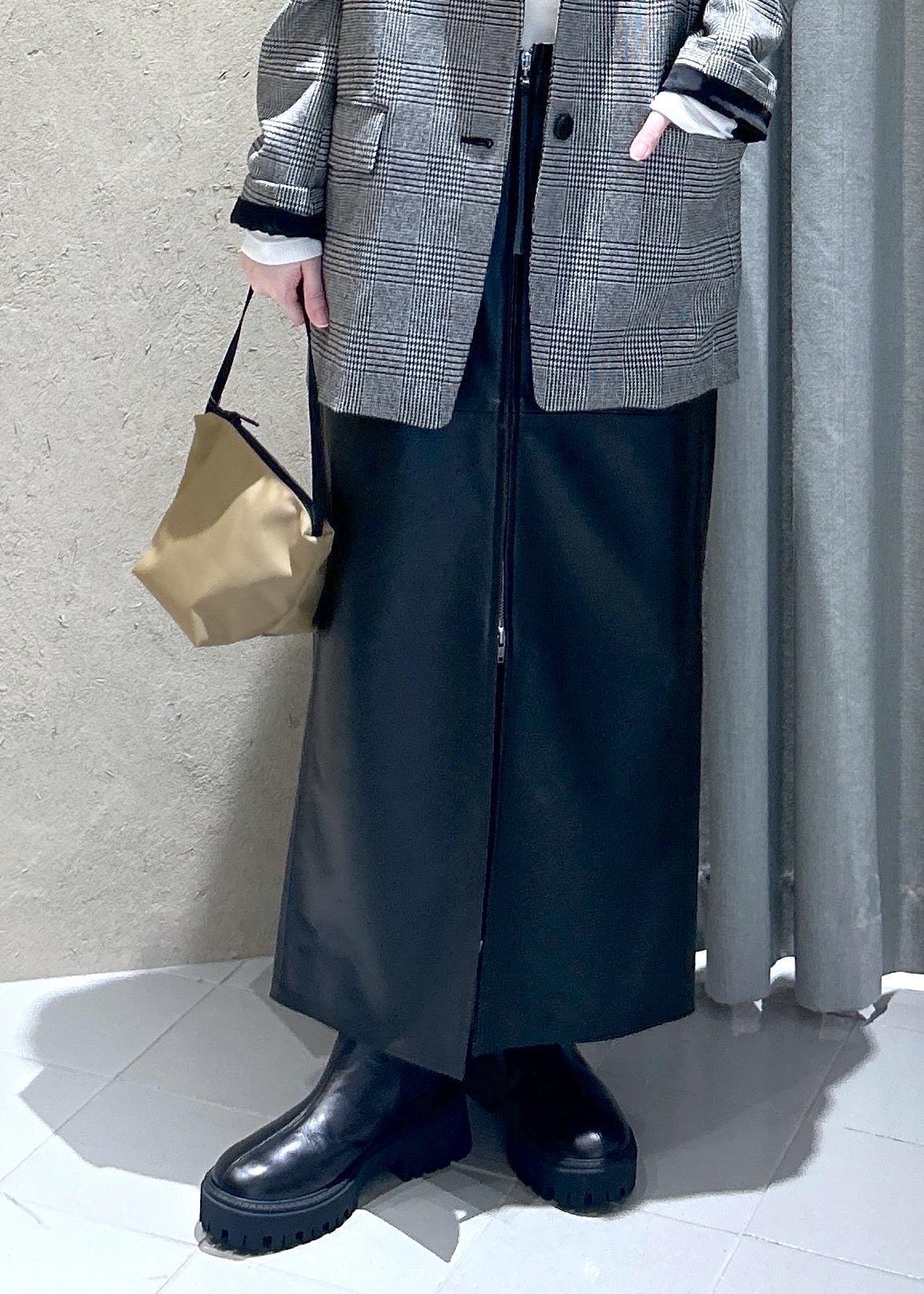 チャックを締めてスカートとしてもよし、チャックを少し上げてパンツとレイヤードしても素敵です◎