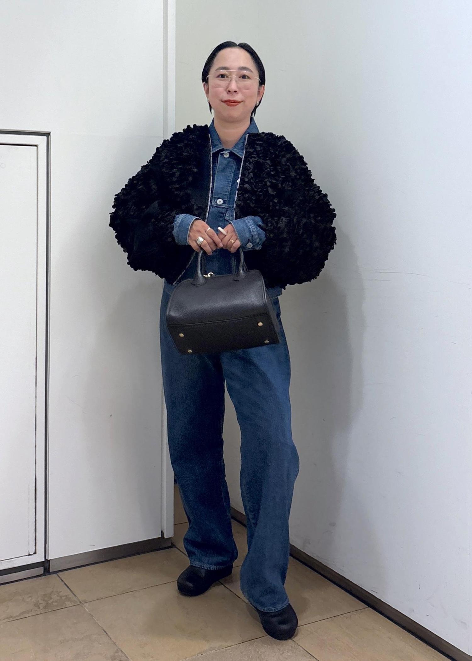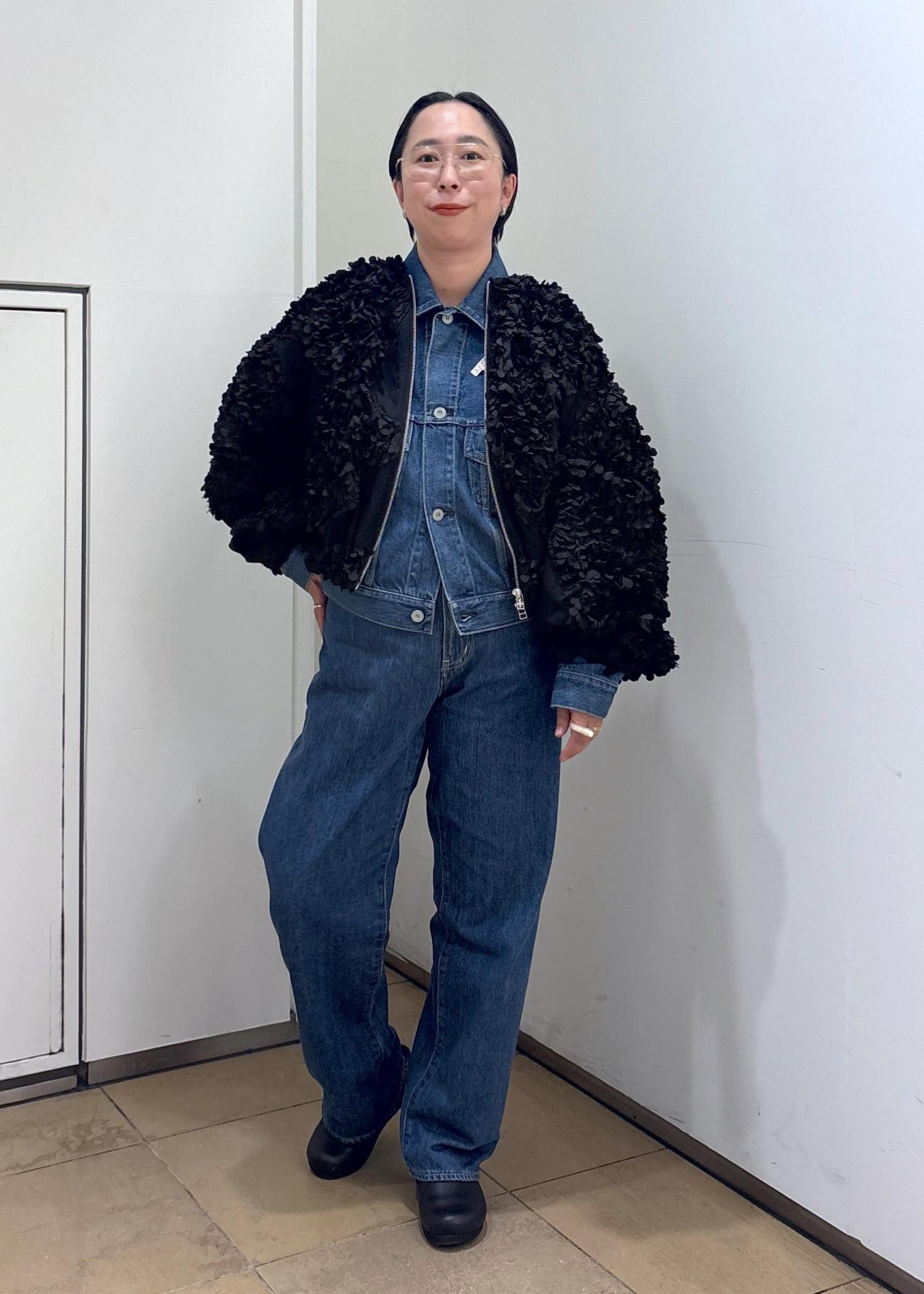 甘くなりすぎないよう、KUROのデニムセットアップに合わせてみました。