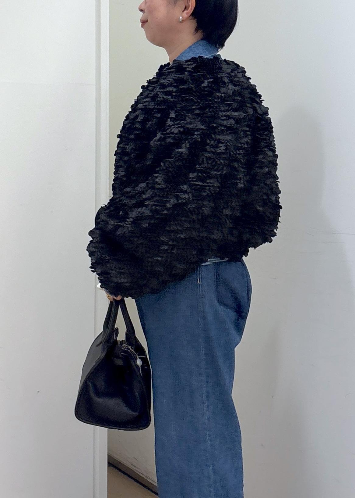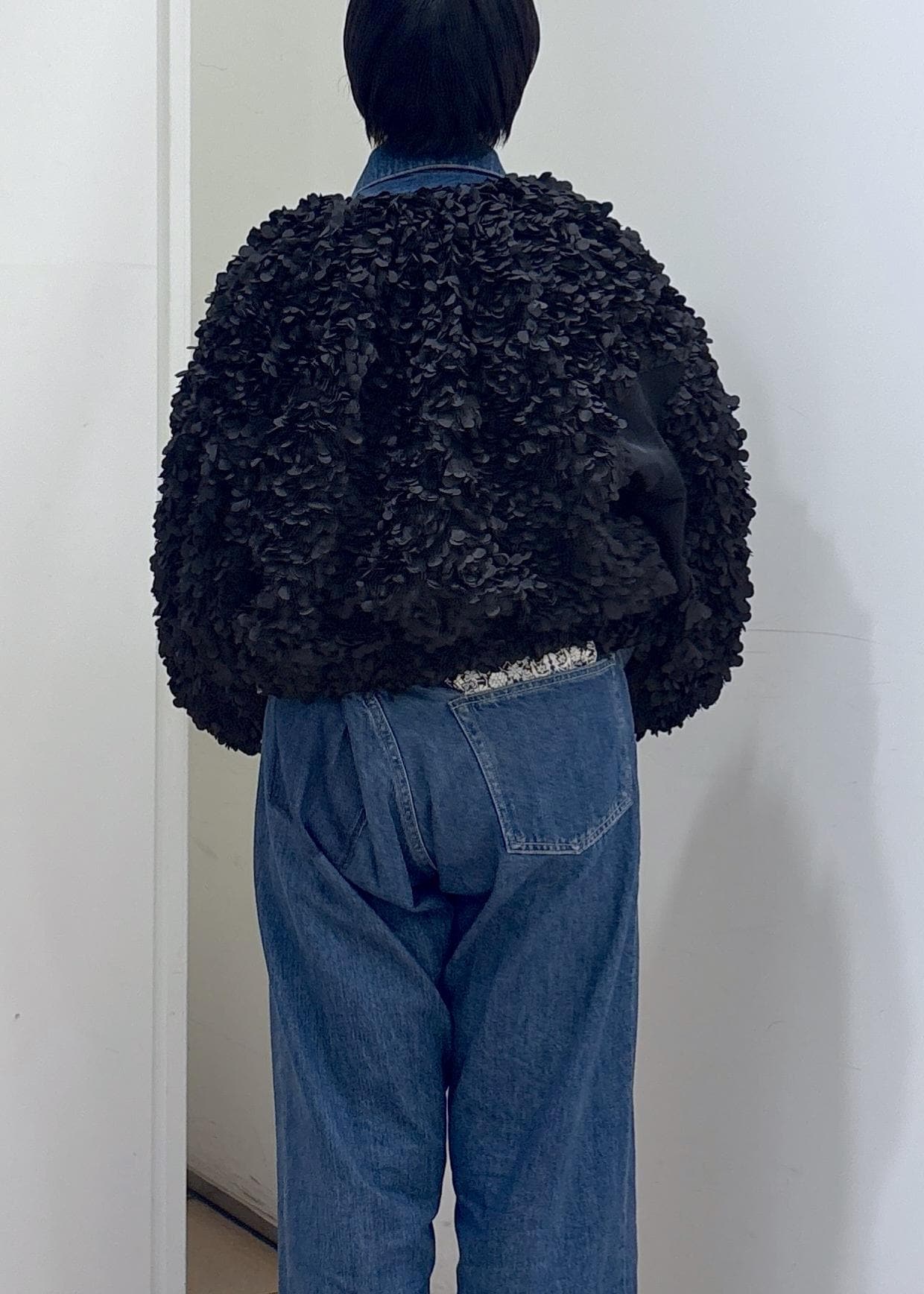 無数の花びらのような立体ディテールが目を惹く、華やかさと存在感を併せ持つショートブルゾン。