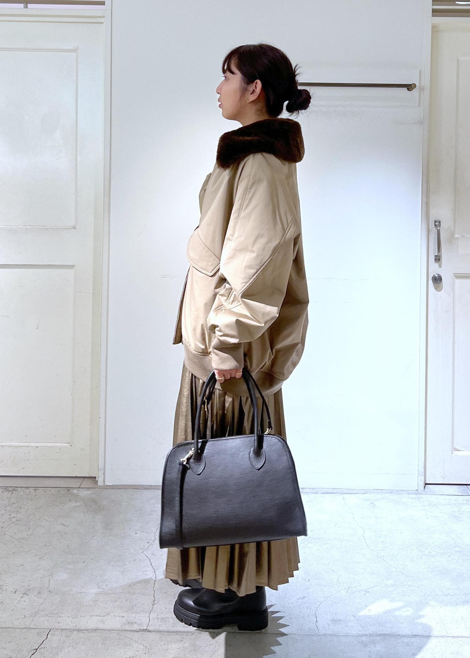 SALON adam et ropé【AULENTTI(オーレンティ)】ショルダーベルト付きバッグ Lブラック / F¥30,800レビュー【サイズ感】