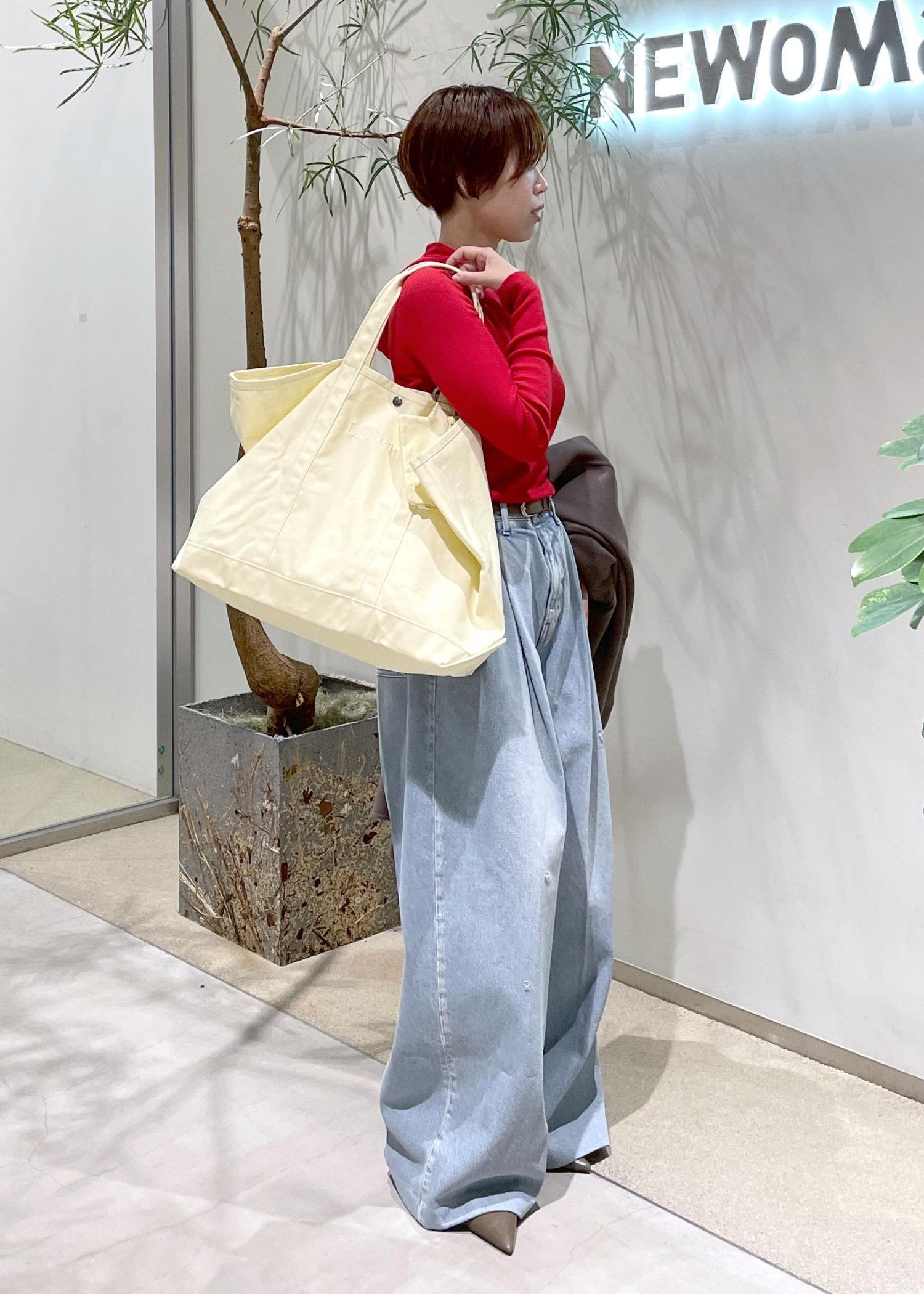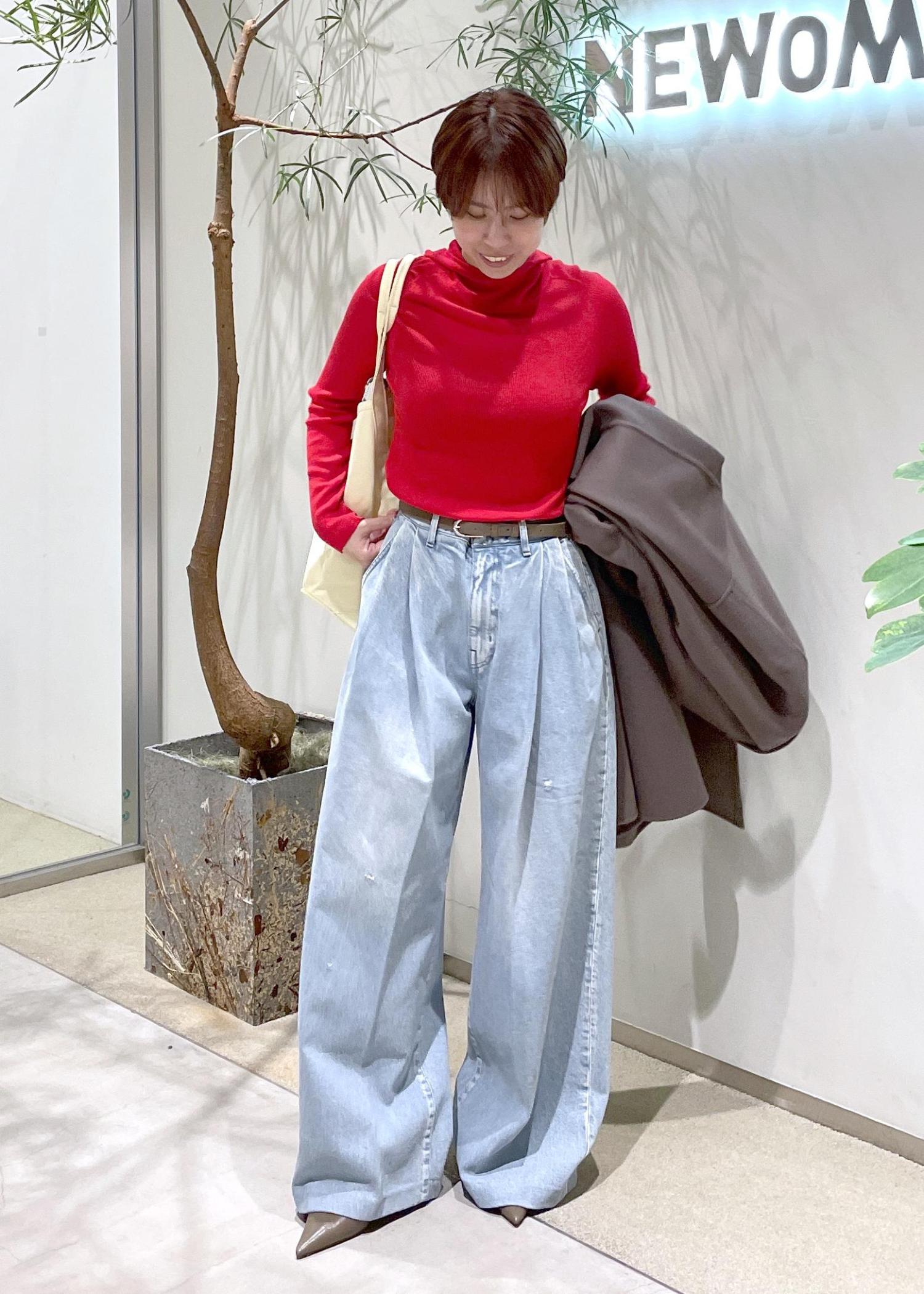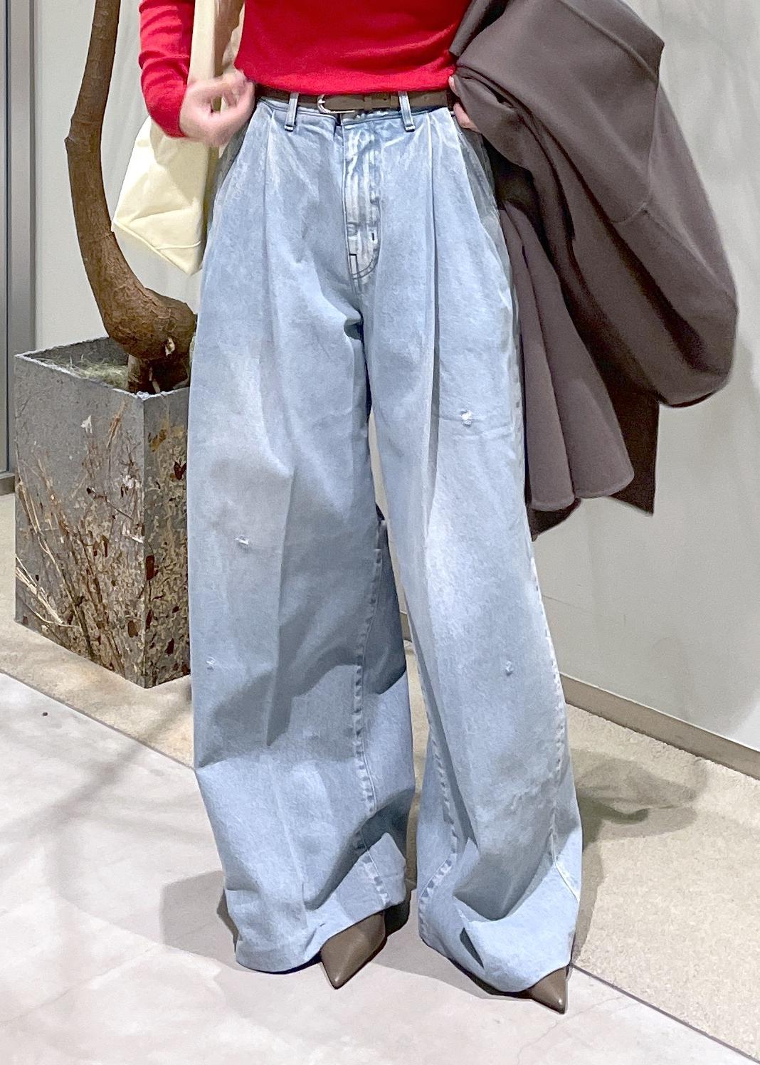 タック入りで腰回りカバー力も高く、脚のラインが綺麗に見えるデニムです。 -
