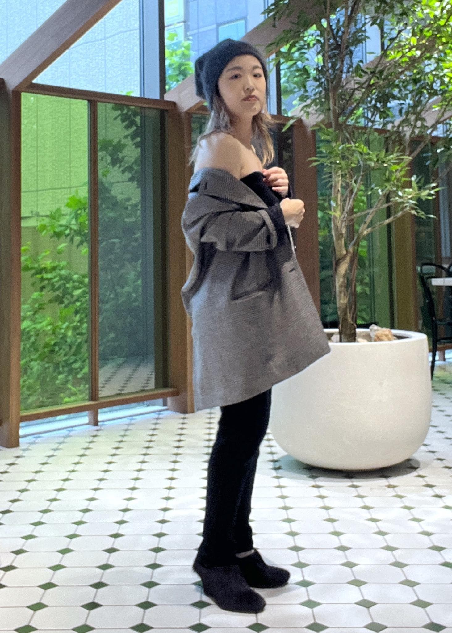 SALON adam et ropé【J'aDoRe・店舗限定】【Y YO_cashmere(イーヨ カシミヤ)】cable long leggingsブラック / F¥52,800レビュー152cm、裾をくしゅっとする形で大きすぎる違和感なく着用できます。