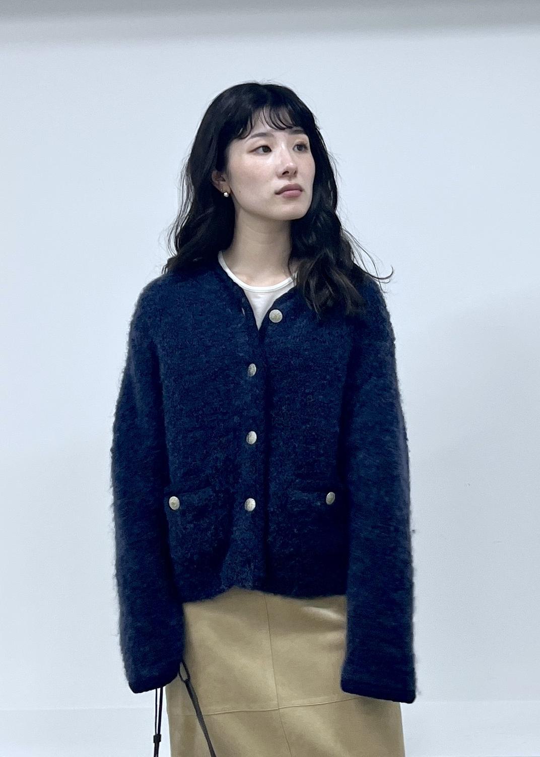 プードルのようなふわふわな見た目と軽くて伸びの良い素材を使用。ジャケットのようなデザインと金ボタンなのでオフはもちろん、カジュアルなオンモードでも使えます。 -