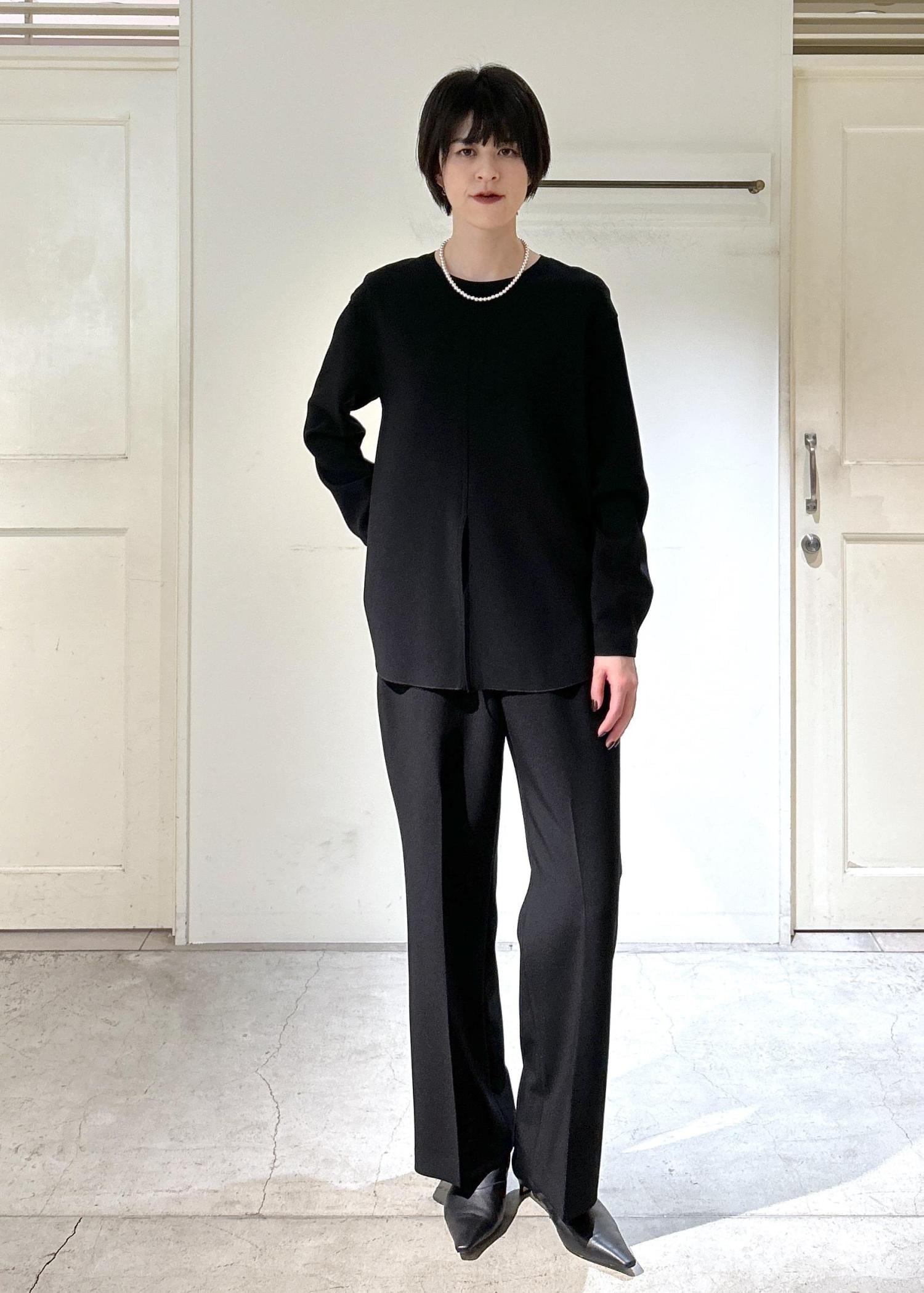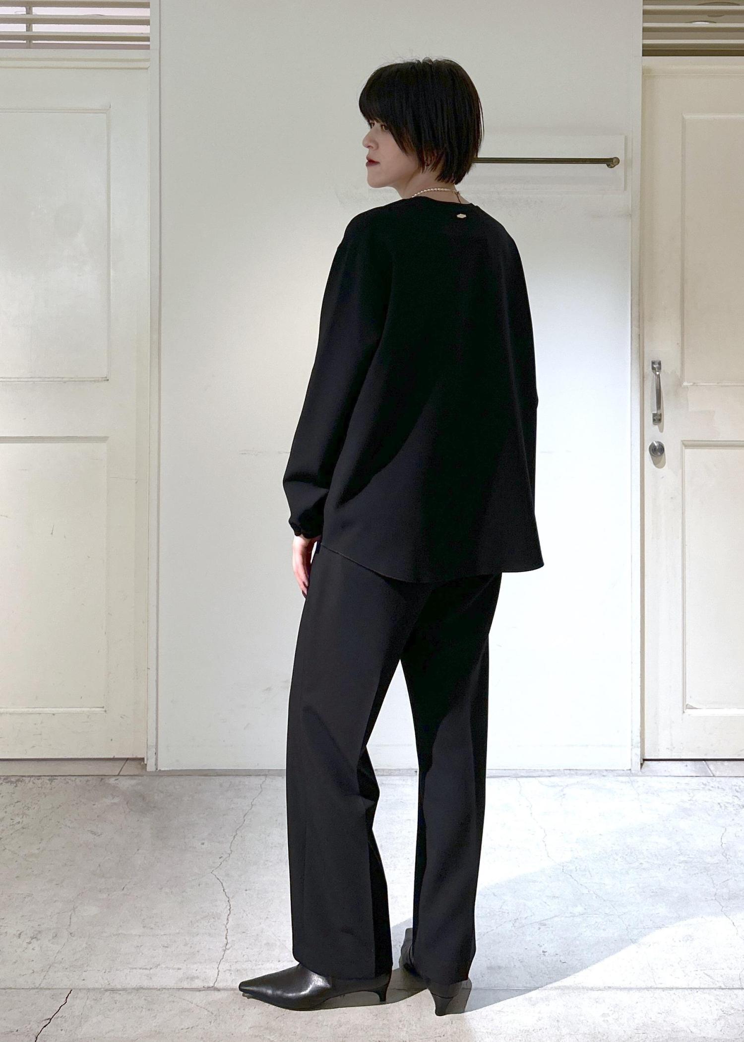 SALON adam et ropéダブルクロスロングTシャツブラウス / セットアップ対応ブラック / F¥17,600レビュー身長171cmで、丈は太ももにかかるくらいの長さ。程よいサイズ感なので、スッキリとした印象で着られます。柔らかく軽い素材で、着心地が良いです。シーズンを問わず使いやすい素材感です。