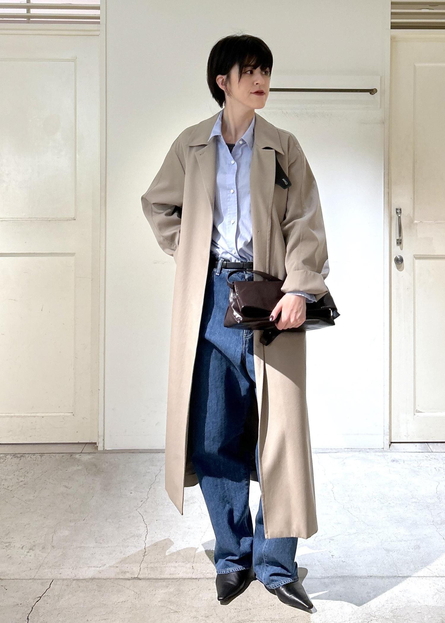VISTO WOOL GABAのステンカラーコートをメインにキレイめコーディネートを組んでみました。