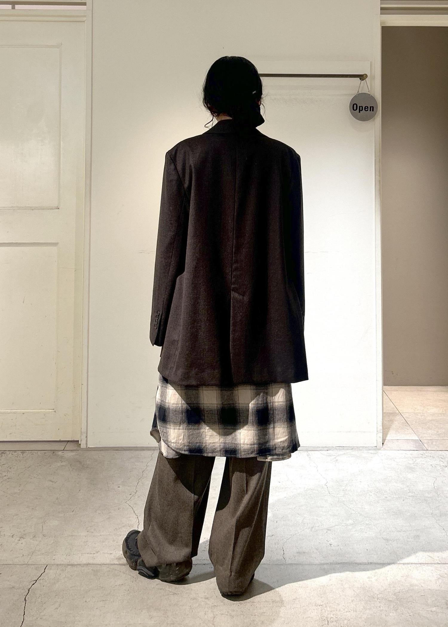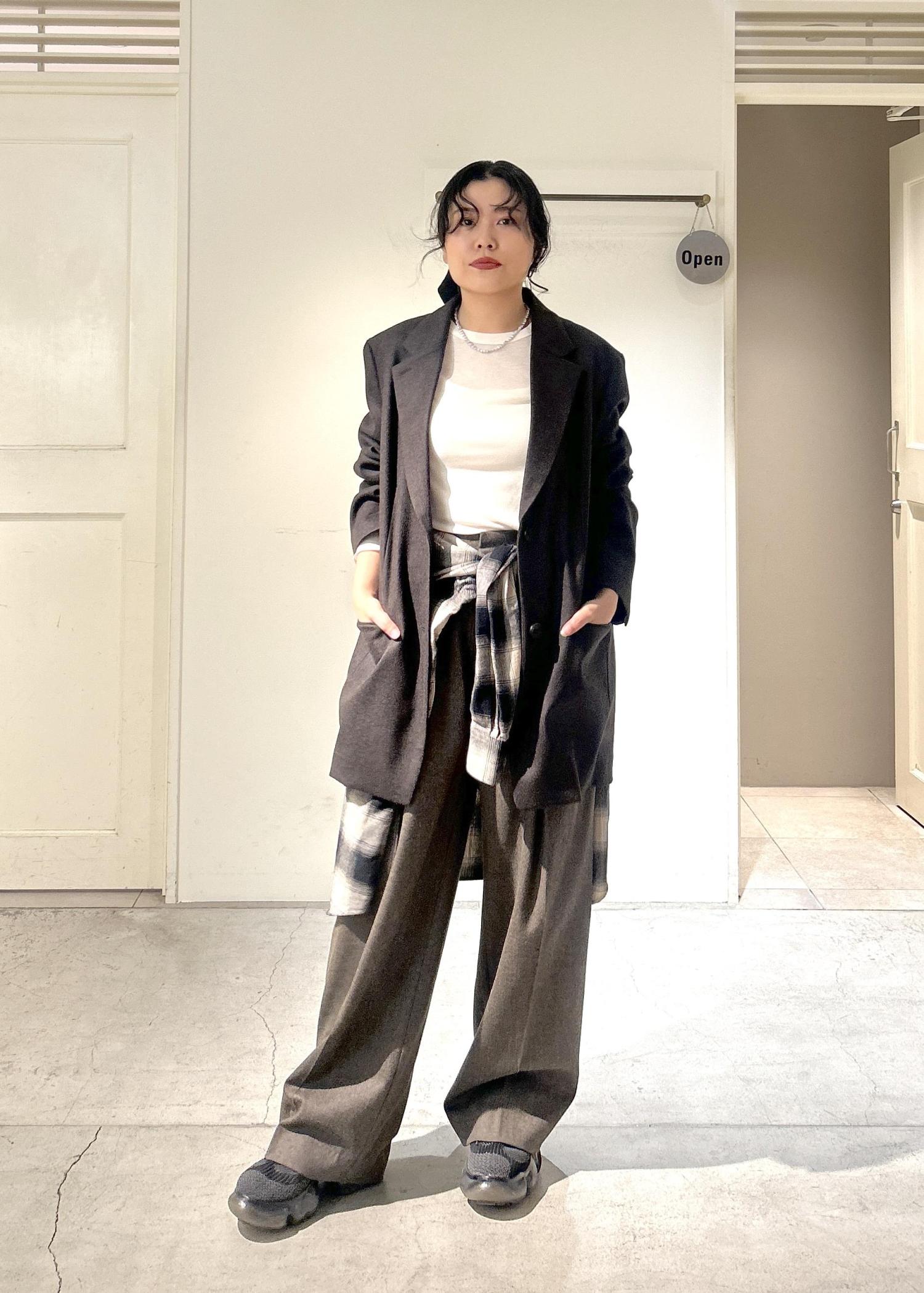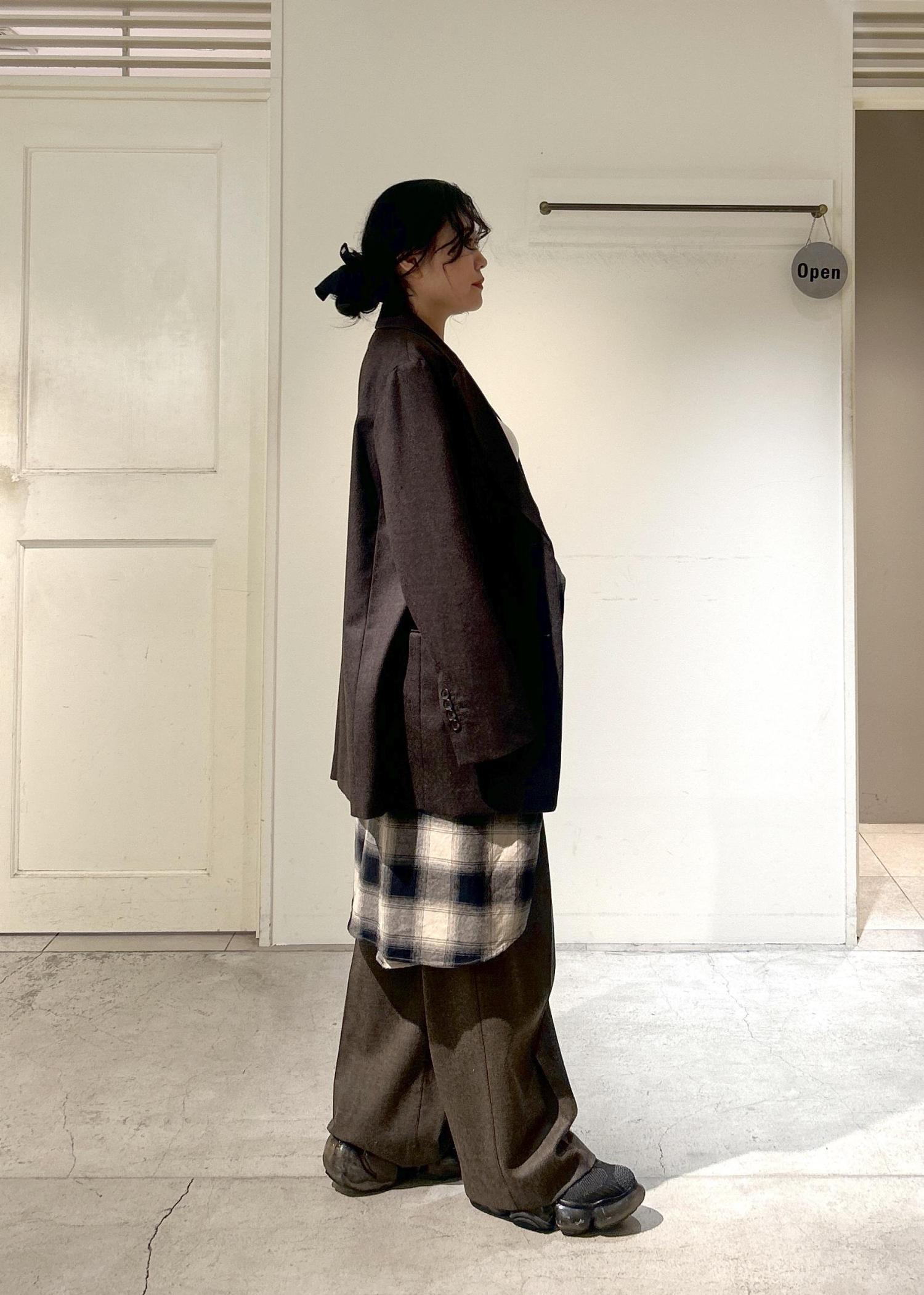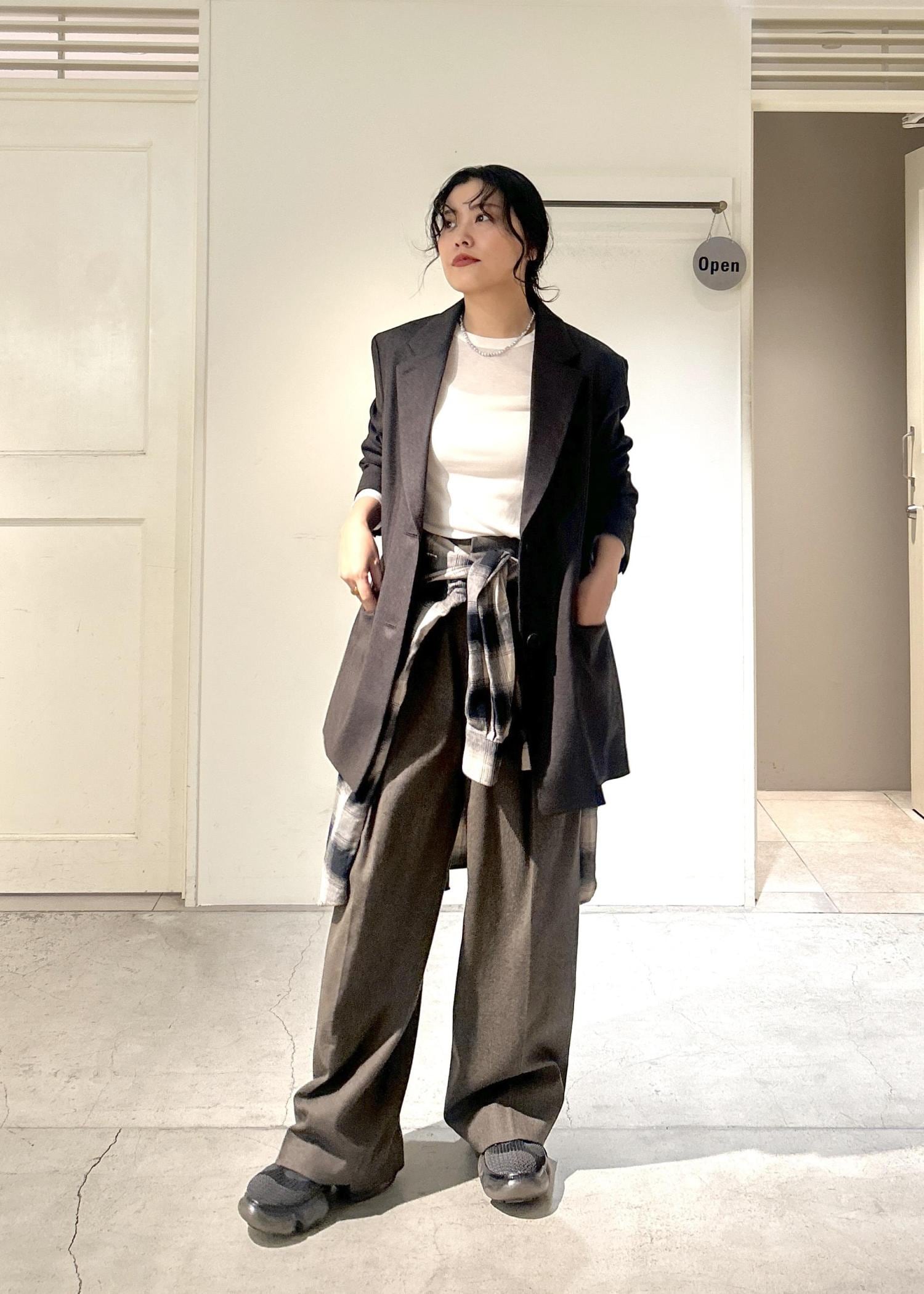 ブラウンのワントーンでまとめたジャケットスタイルになります。