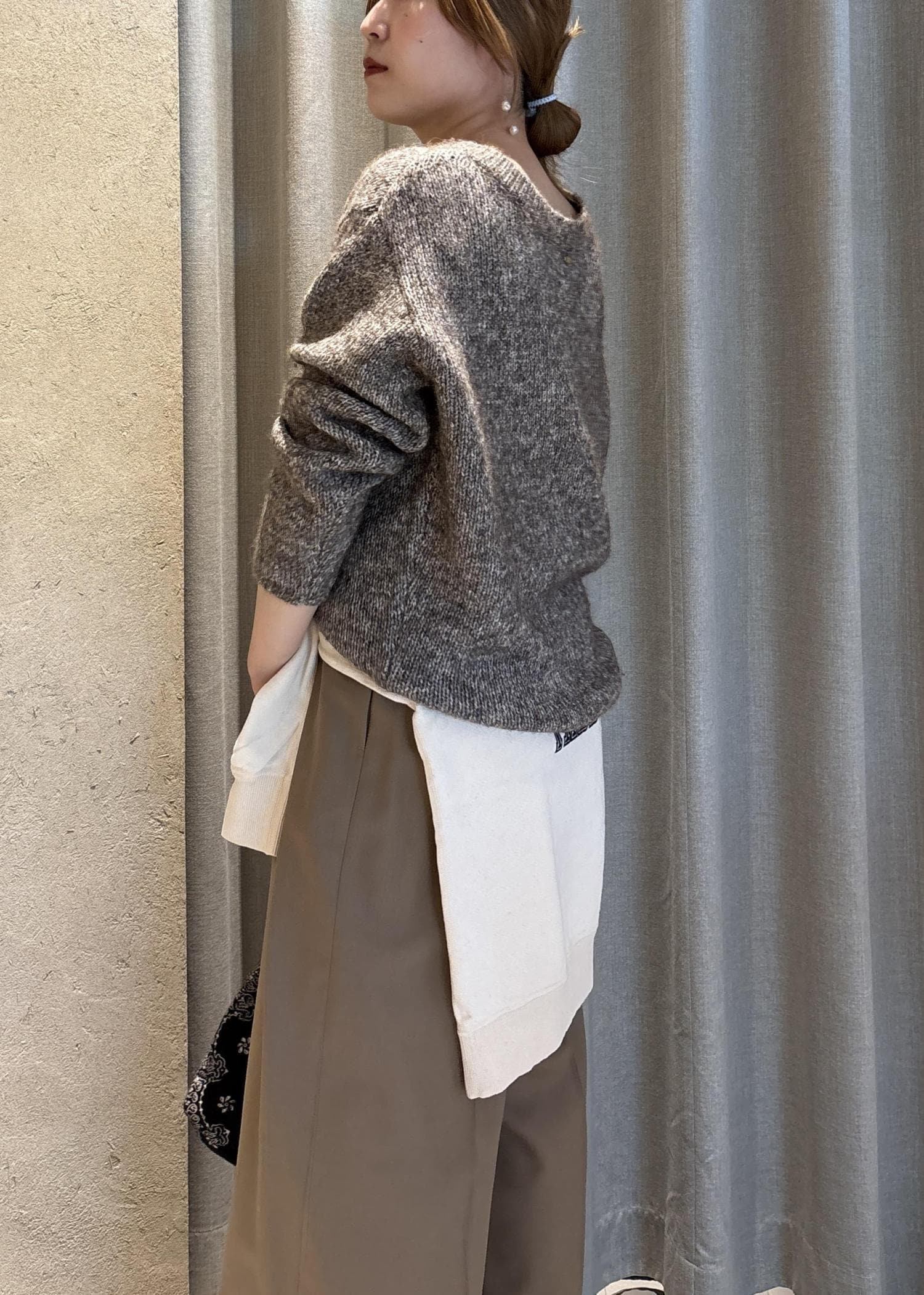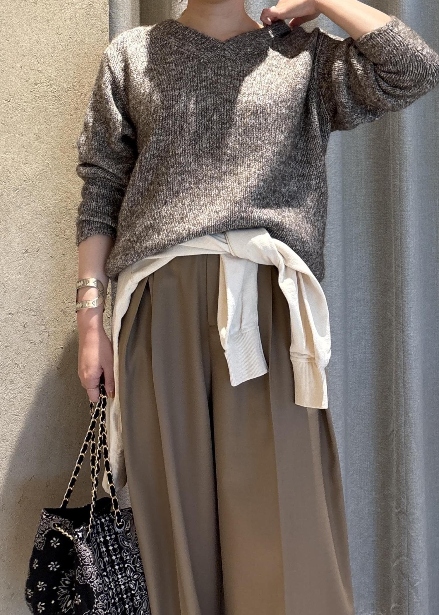 SALON adam et ropéコットンウールメランジVネックニットプルオーバーブラウン系 / F¥18,700レビューゆったりしたサイズ感で、間違いのないセーターです。首元も空きすぎないので1枚でルーズに着るのも良し、シャツやタートルなどと重ねても良しな1着です。
