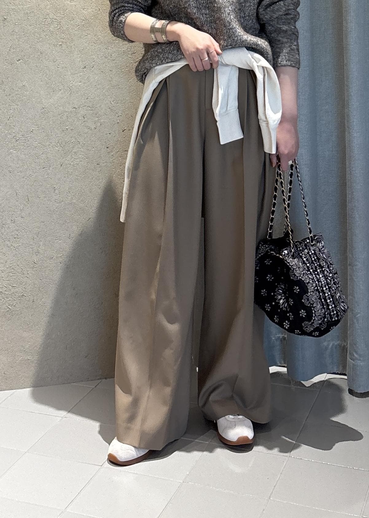 SALON adam et ropéインバーテッドタックパンツ/スラックスベージュ / M¥25,300レビュージャストサイズで36、ゆるっと着用したかったら38がオススメです!ウールが入っているので、気持ちチクチクする感じはありますが、ペチコート履けば気にならない程度でした。
