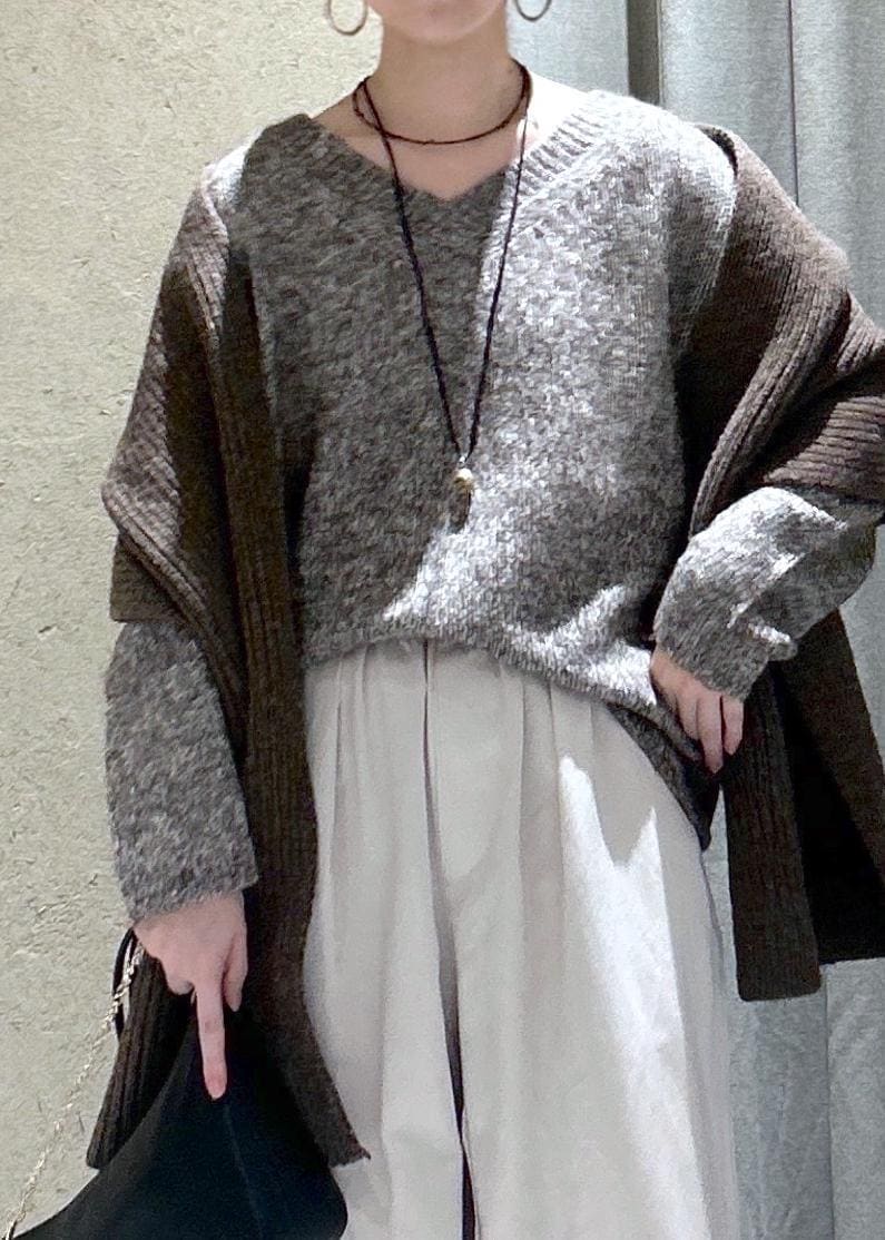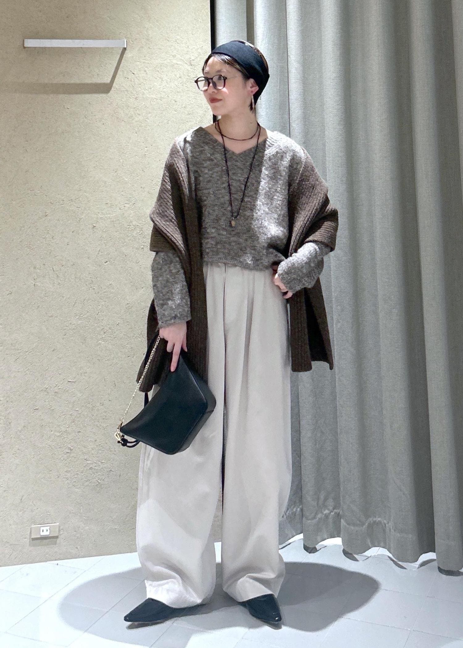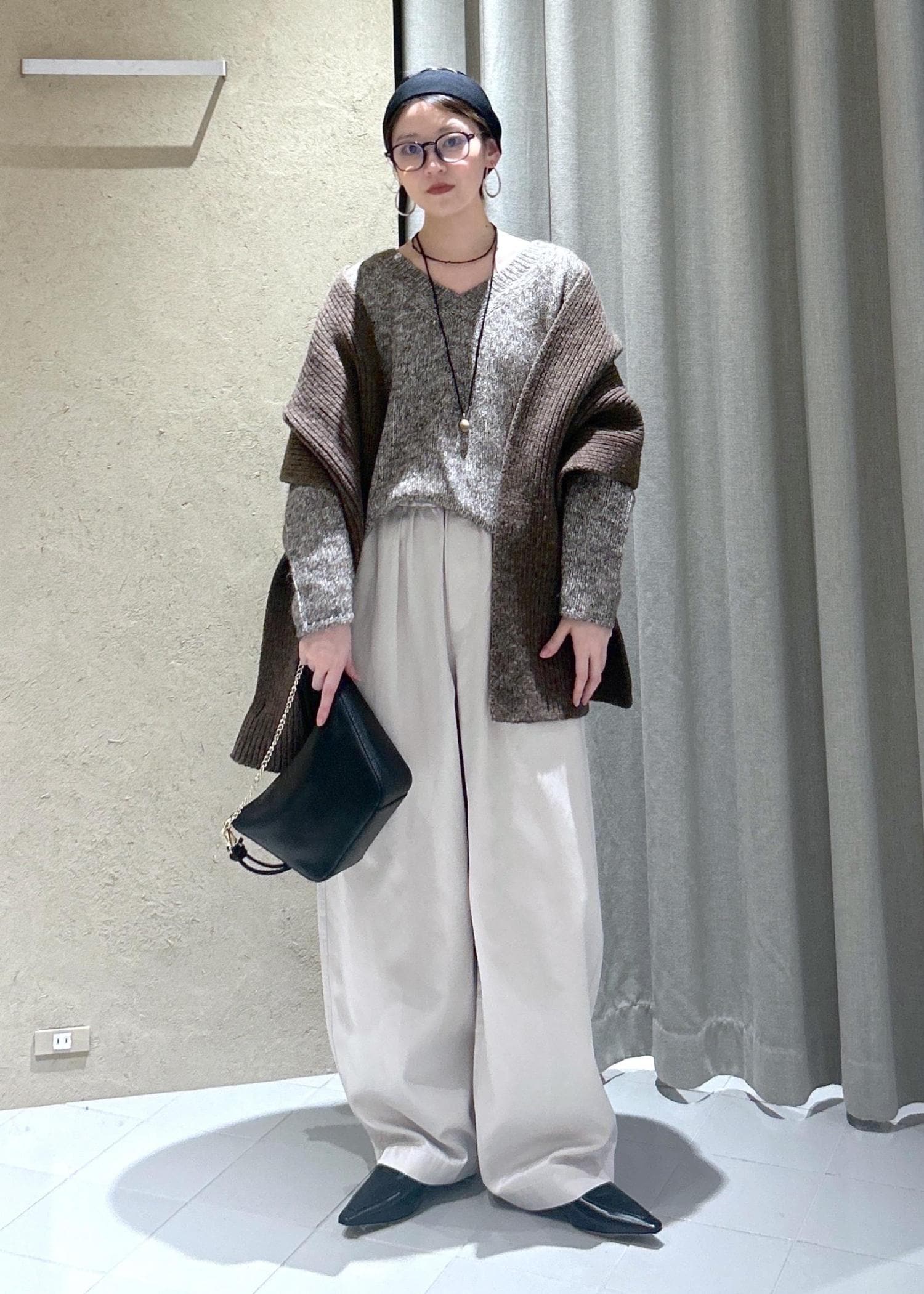 ニュアンスのあるメランジニットを使った大人のワントーンコーデ。