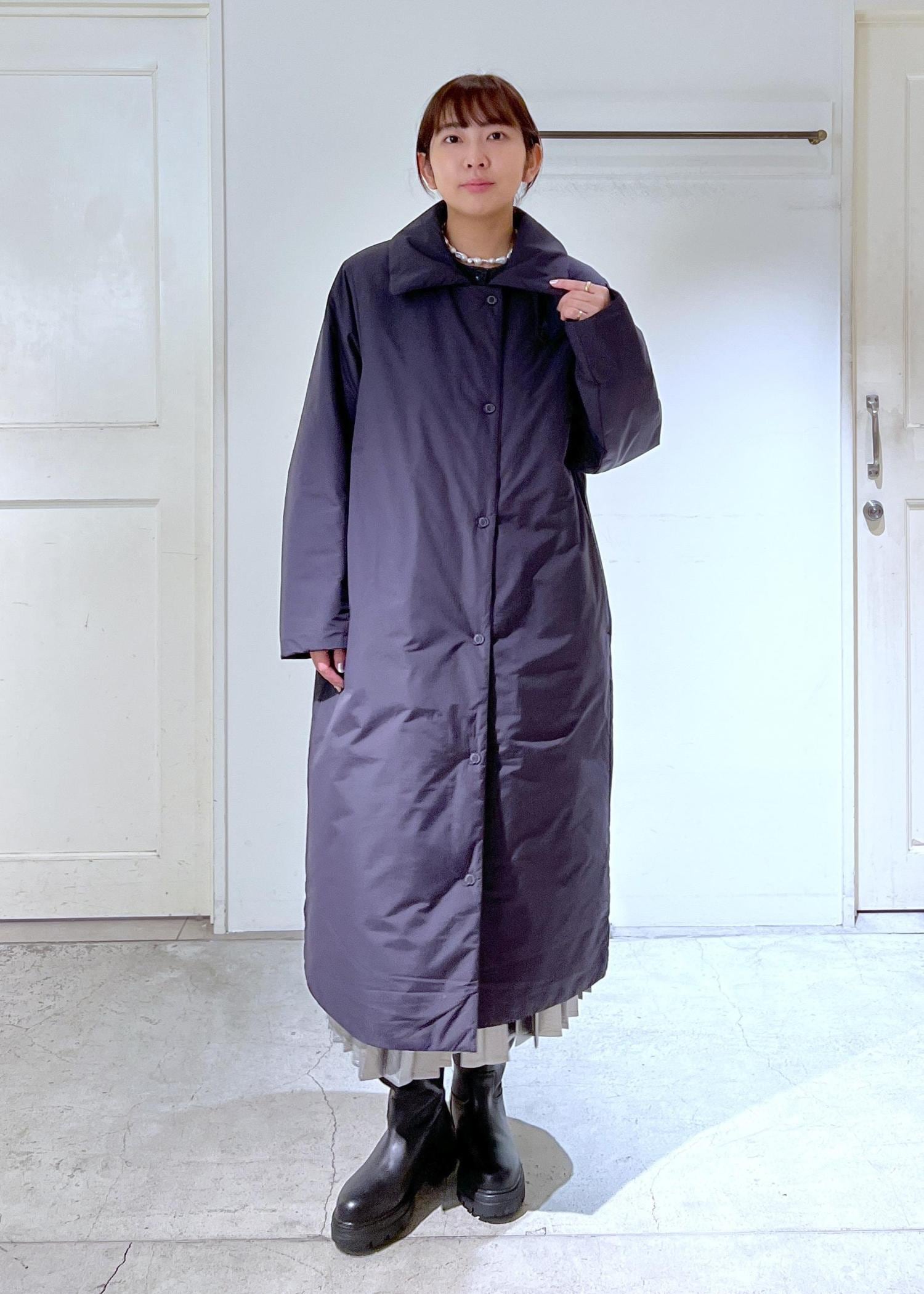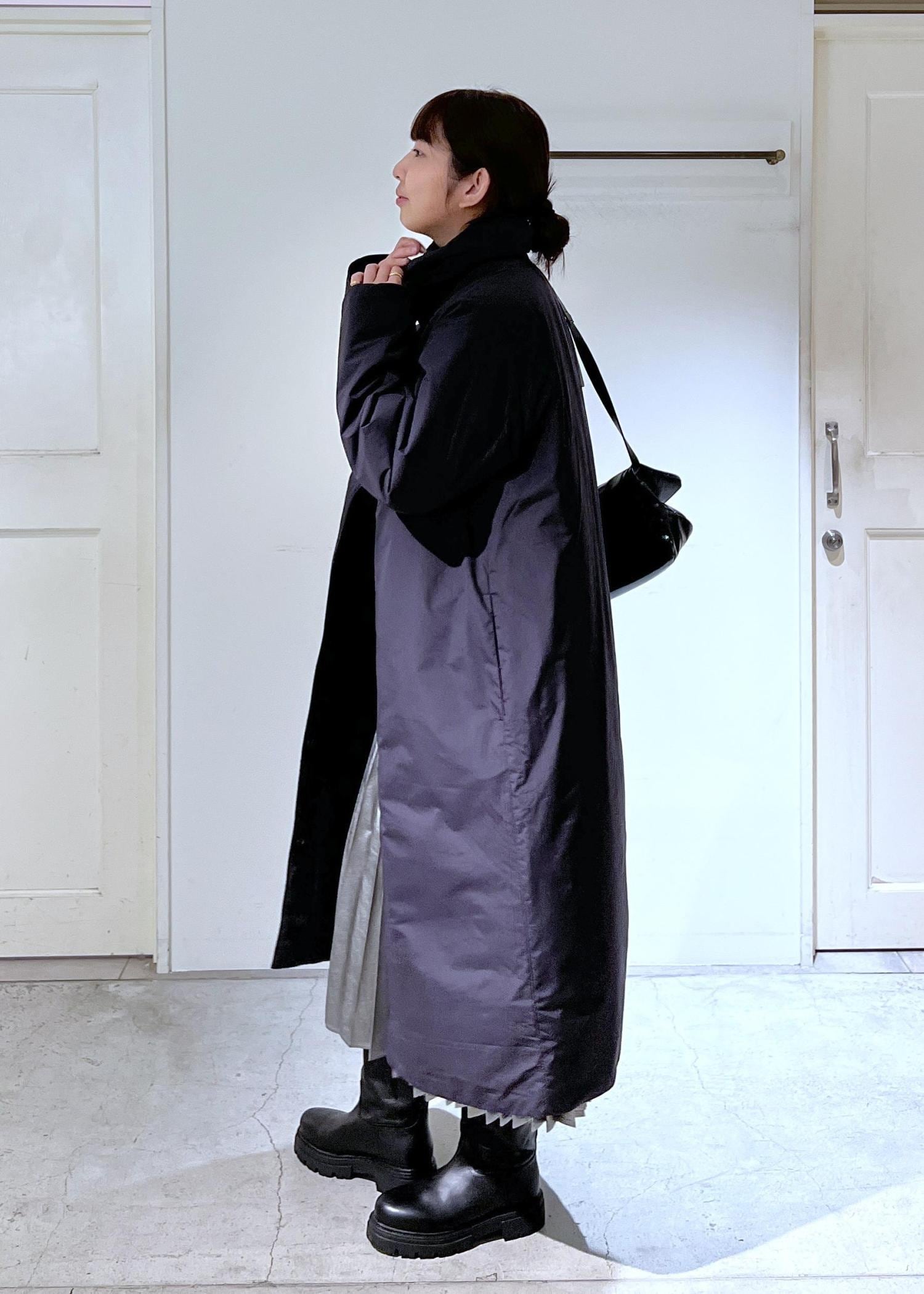 SALON adam et ropé【DESCENTE ALLTERRAIN(デサントオルテライン)】別注ステンカラーパフコートブラック系 / F¥69,300レビュー丈は長めでふくらはぎあたりで。