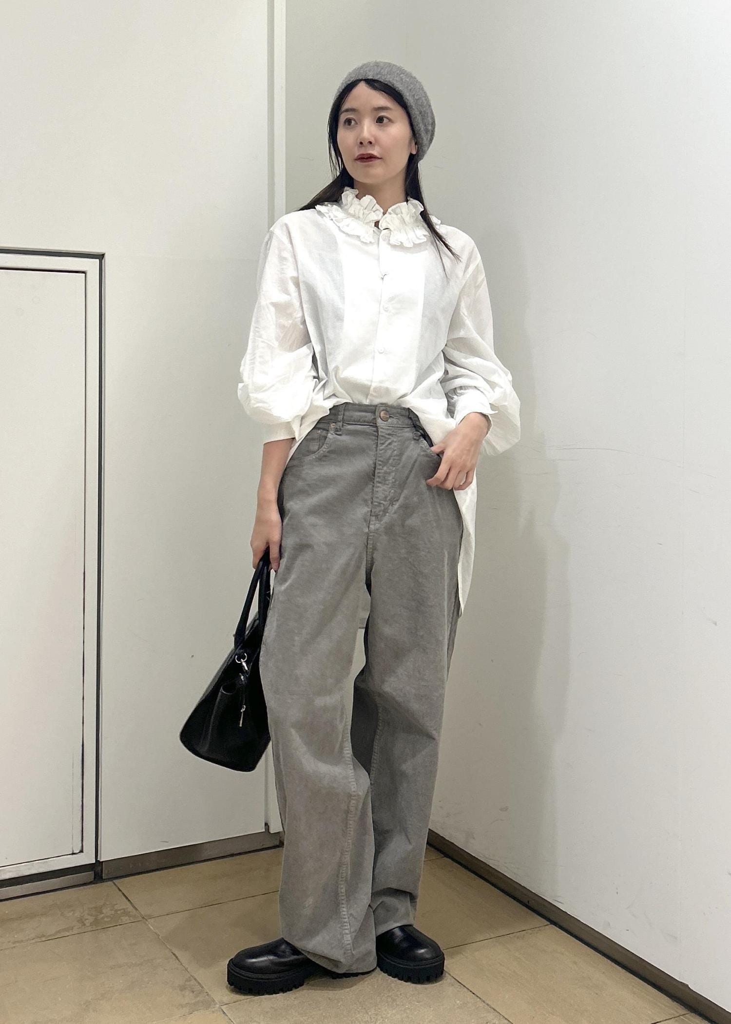 柔らかいコーデュロイ素材を使用しておりとにかく軽い。ストンと落ちてくれるシルエットで足長効果あり -