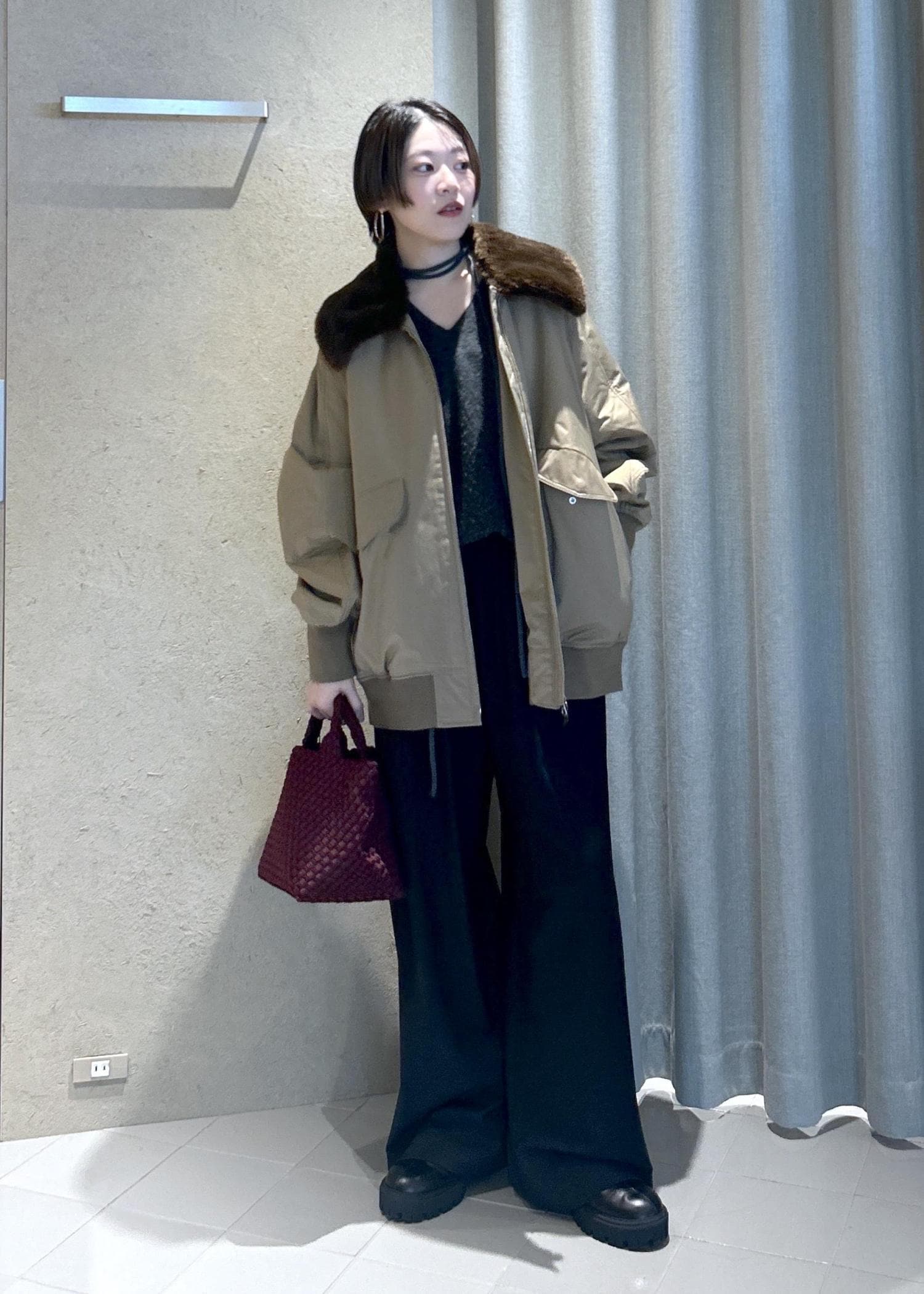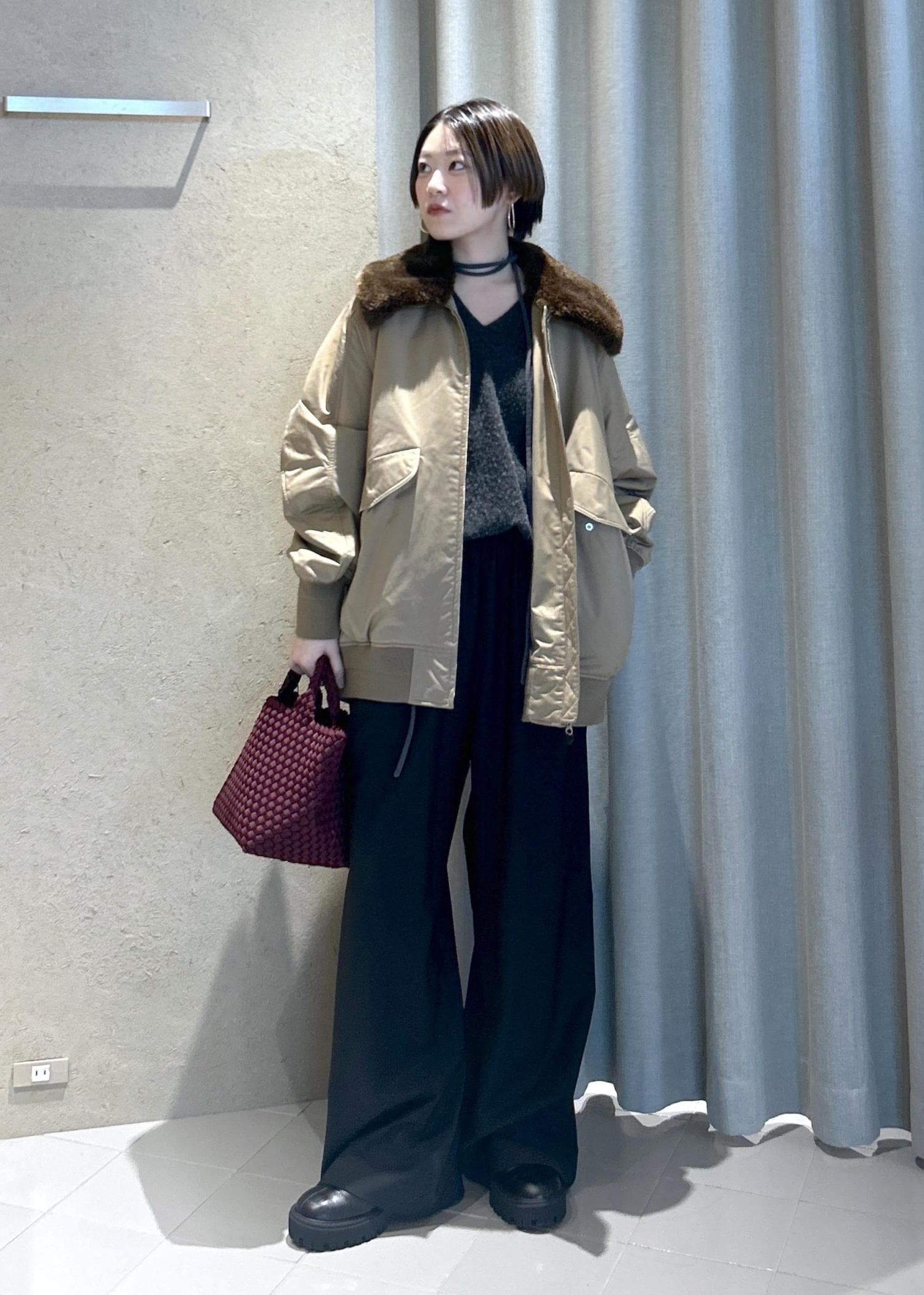 ボリュームのあるシルエットなので、細身のパンツを合わせるとバランスにメリハリが出ておすすめです◎