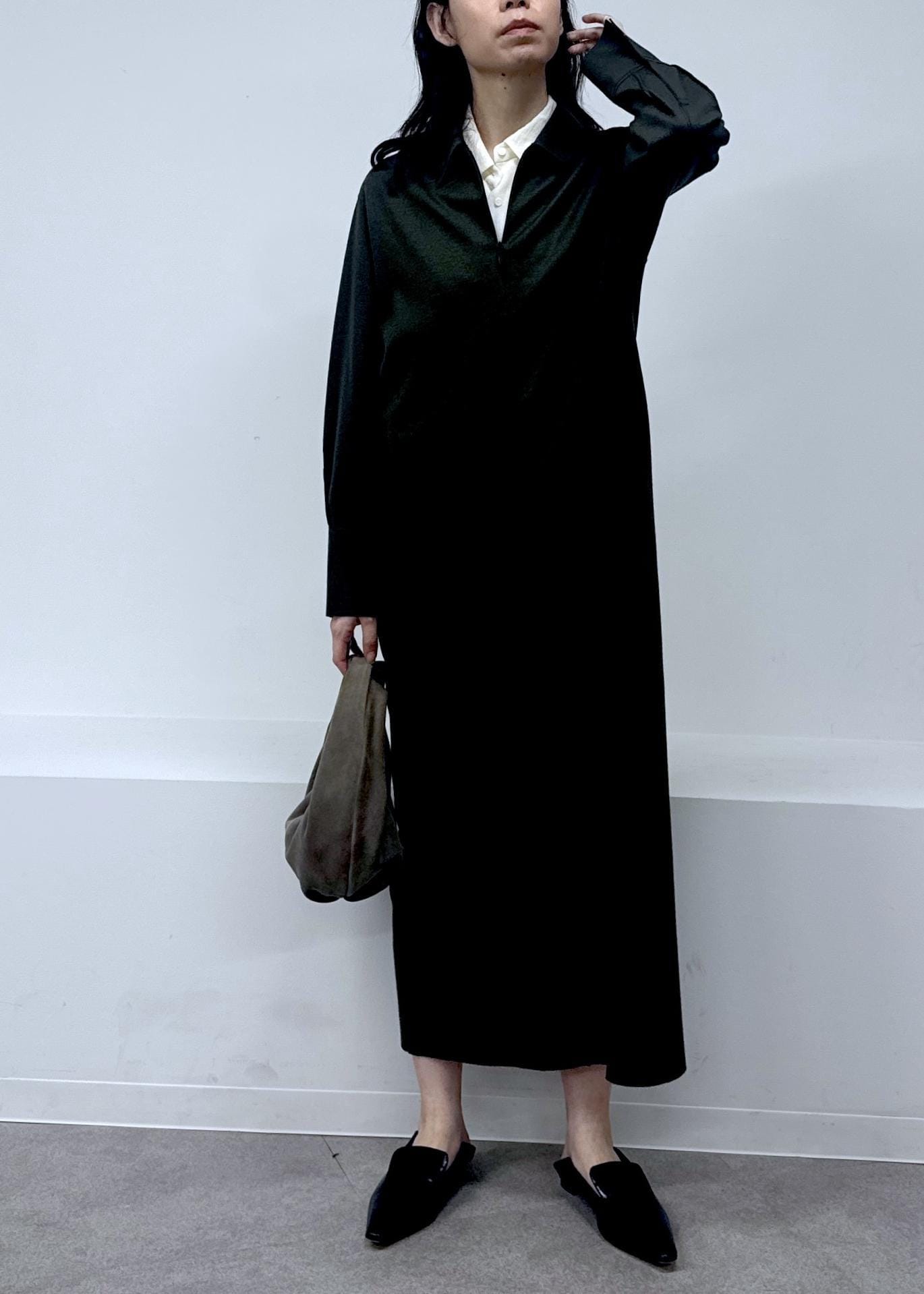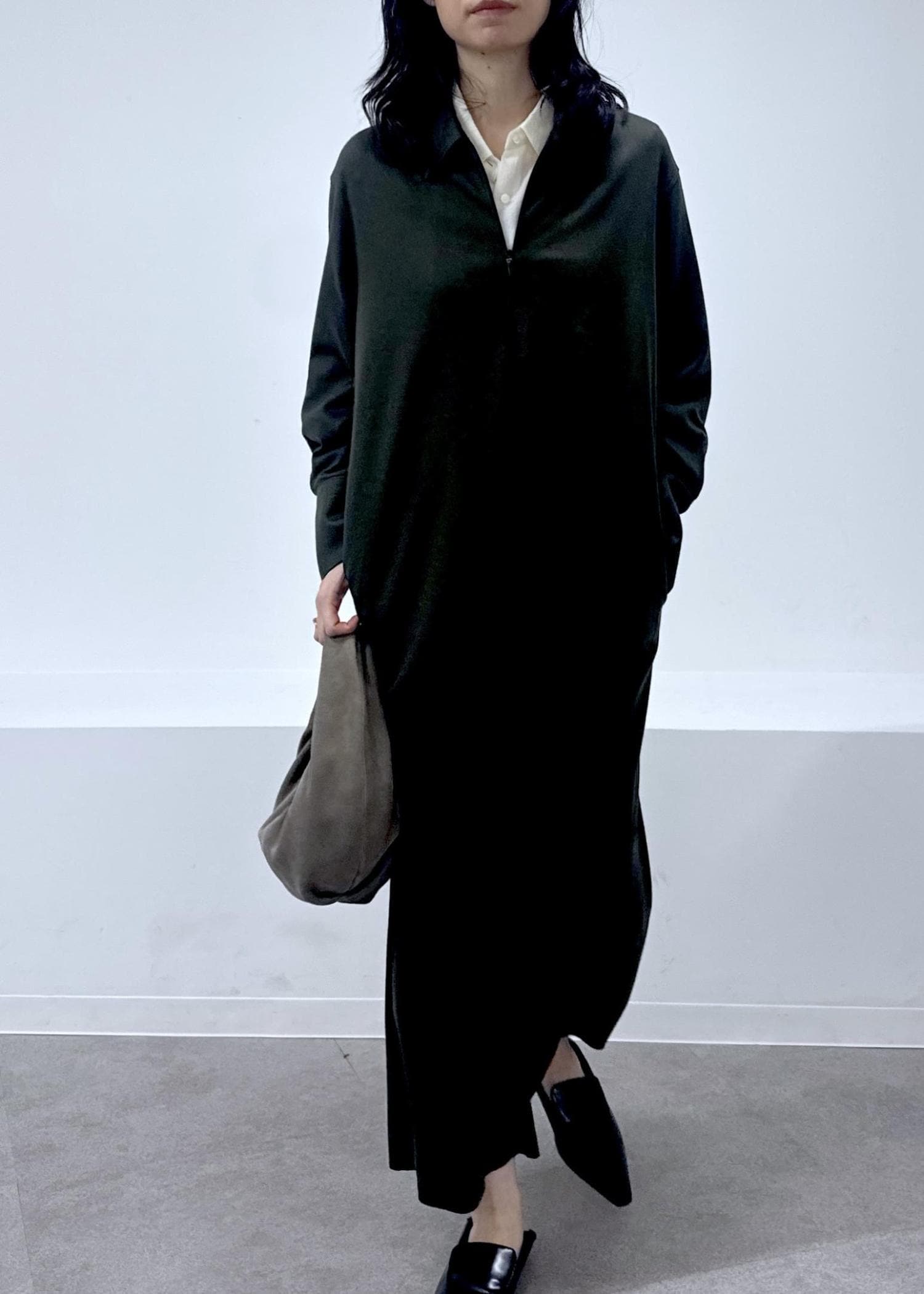 ワンピースなのに甘さがなく、丈も長めでモードな印象。