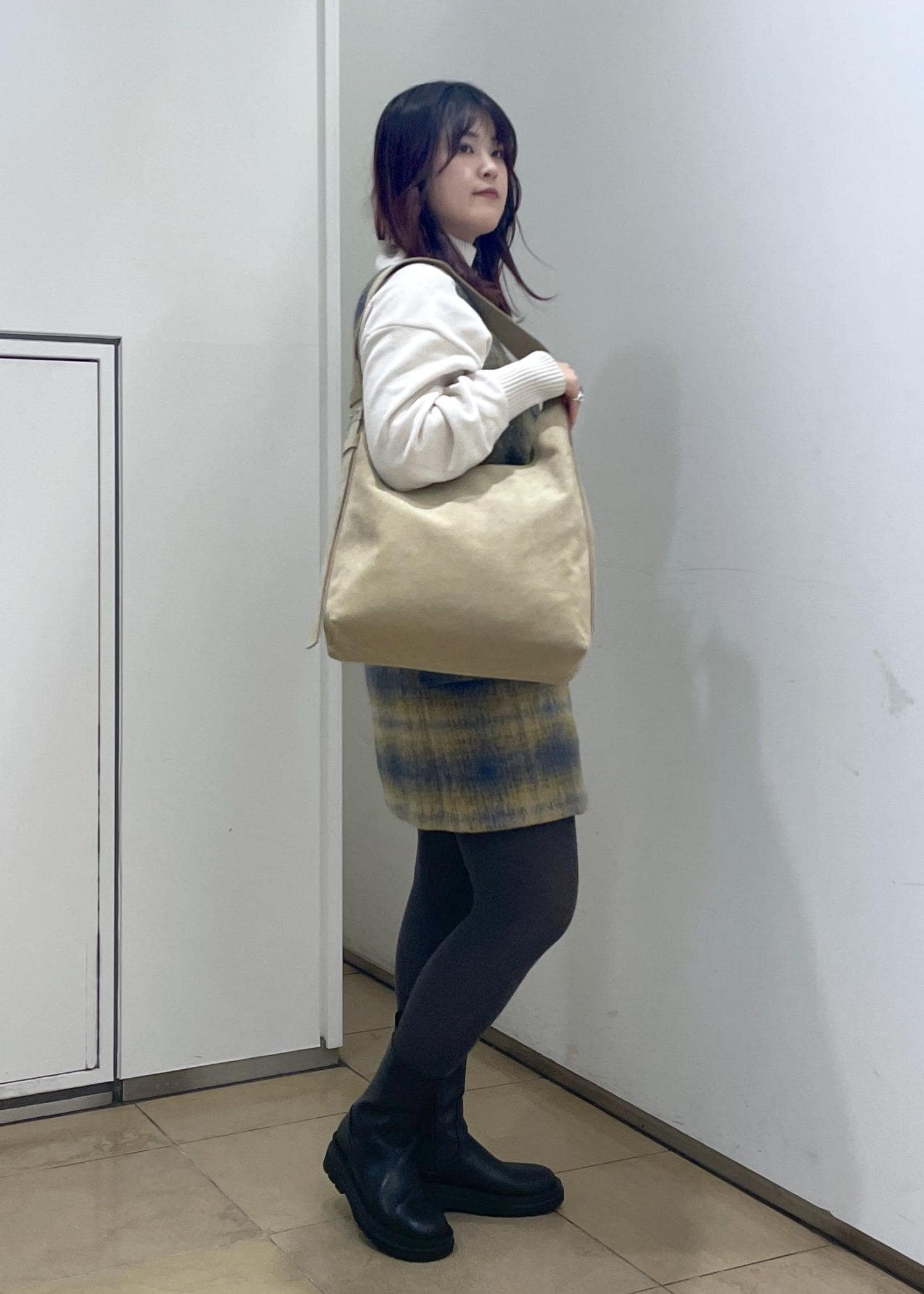 身幅はゆとりがあるので厚手のトップスも重ねられます。