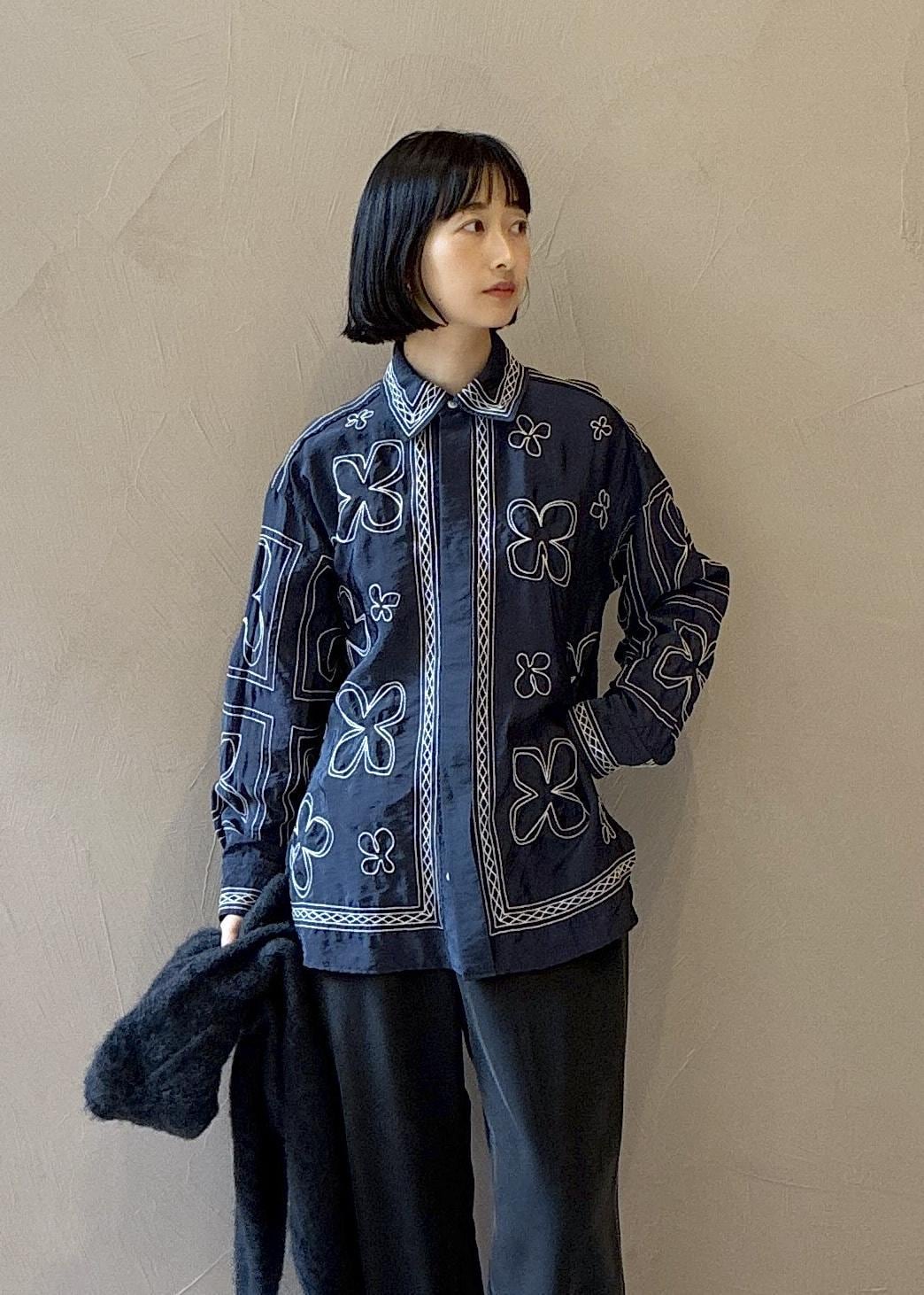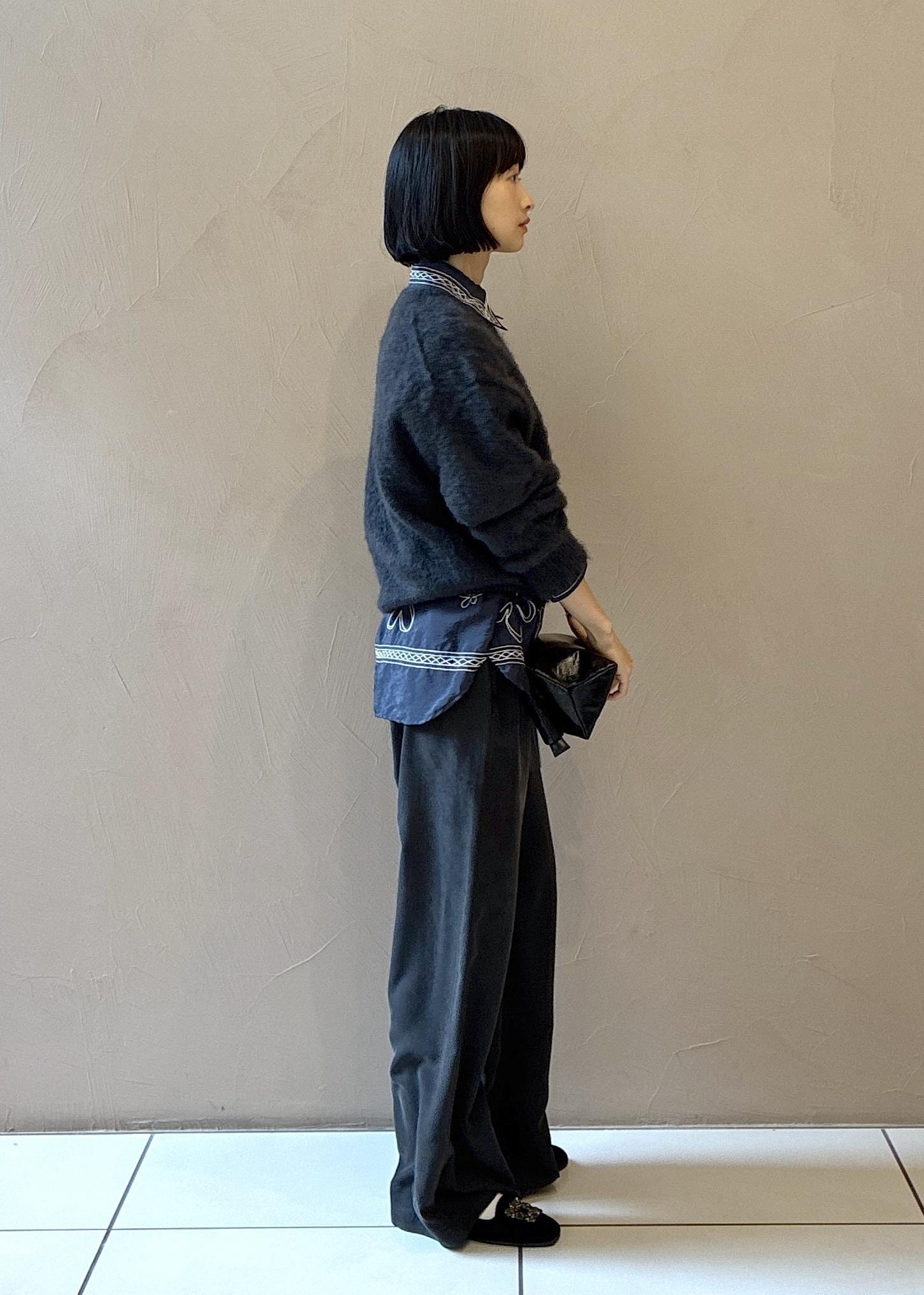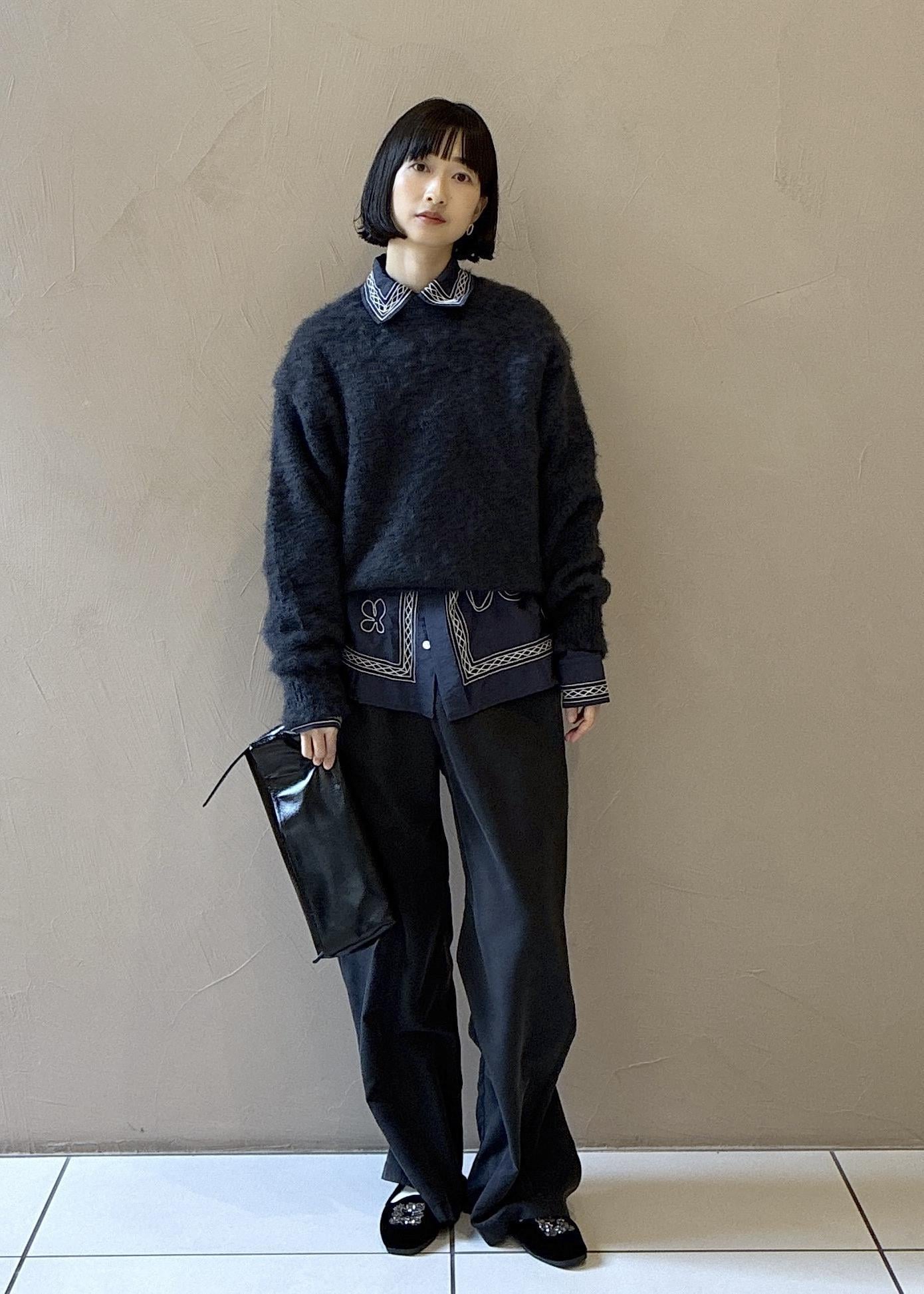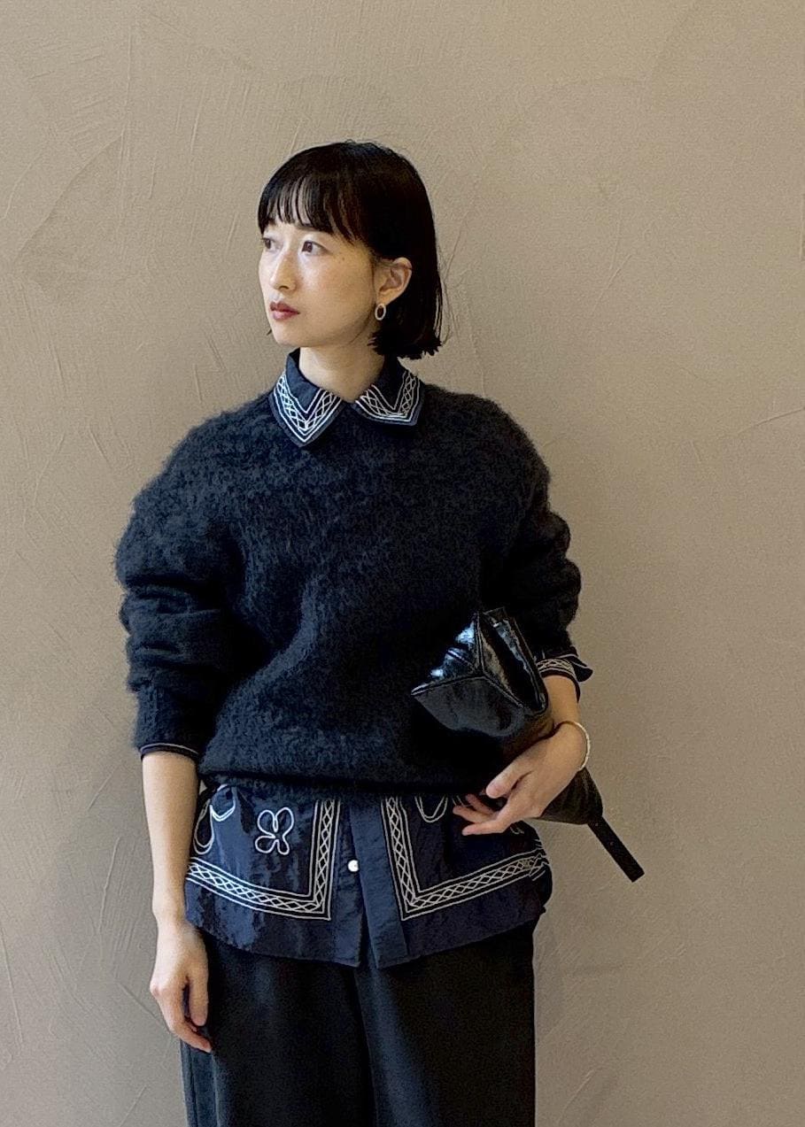 CURRENTAGEシャツにモヘヤニットをレイヤードしました。