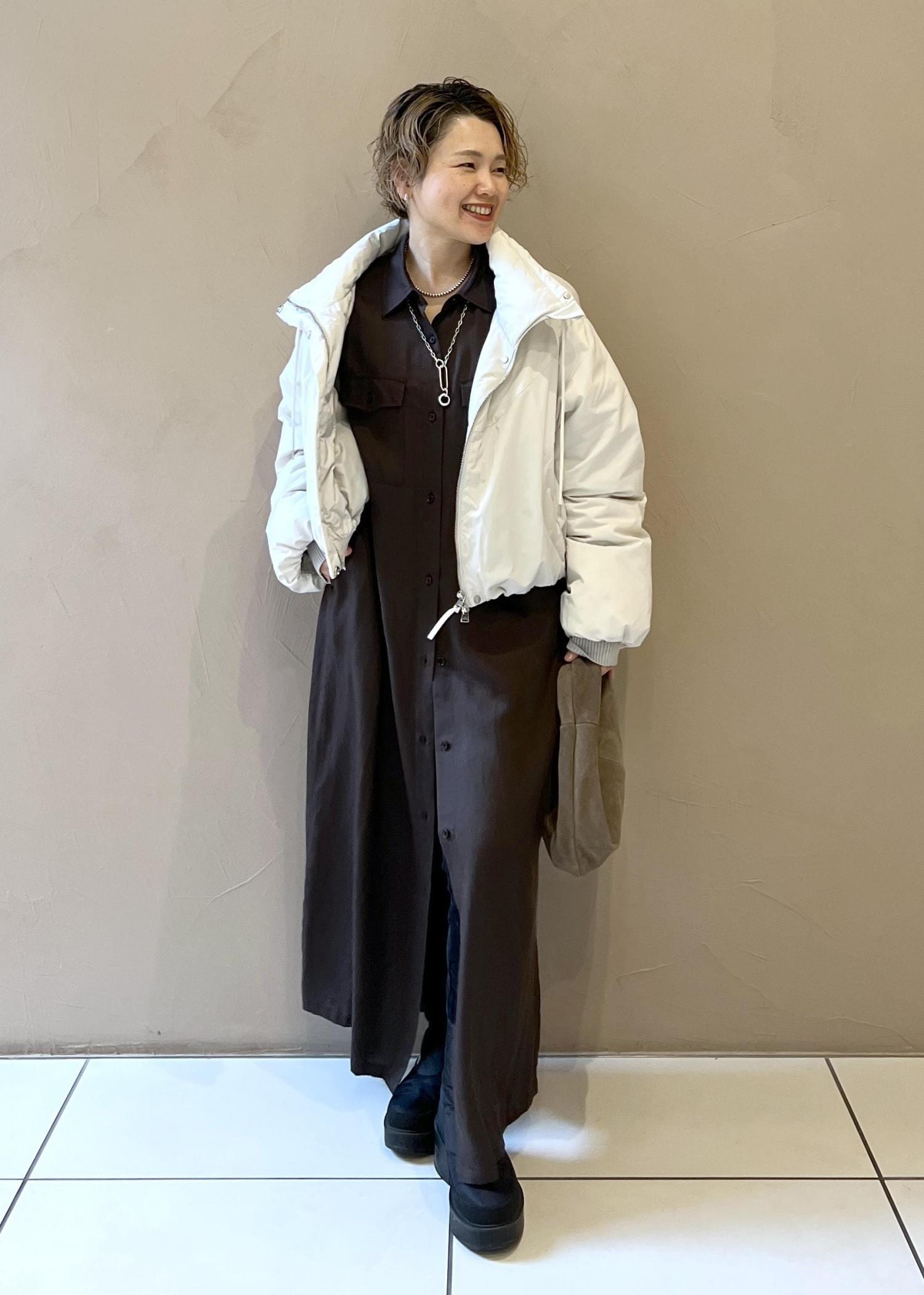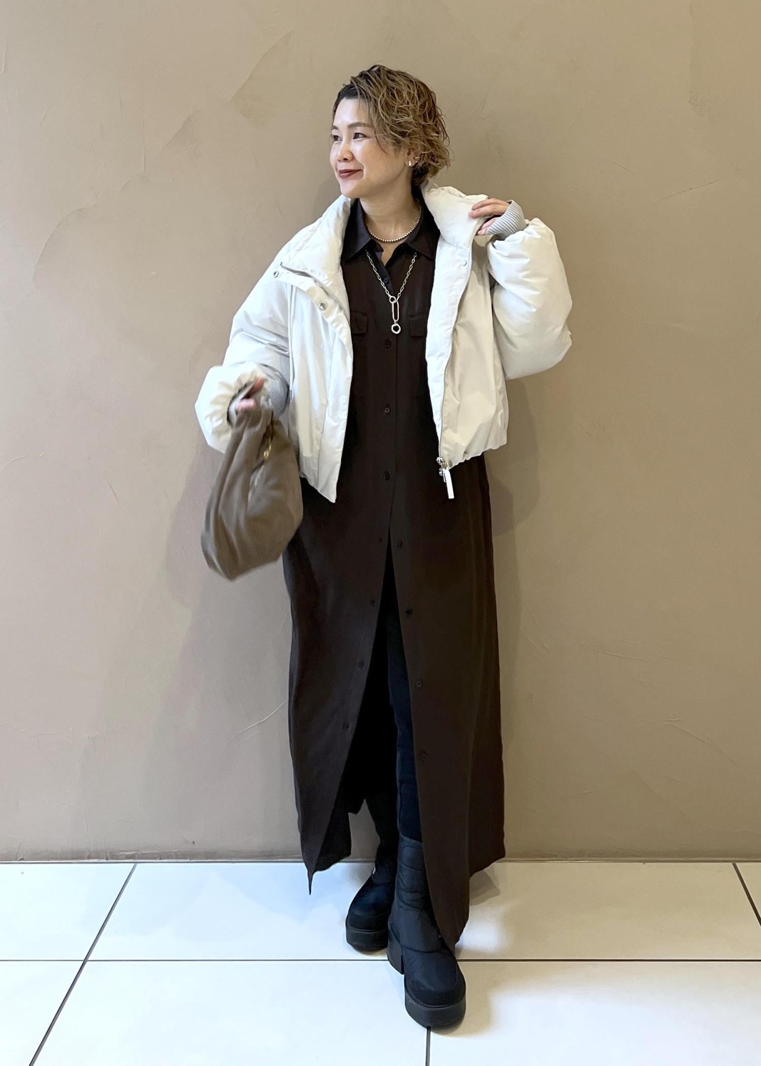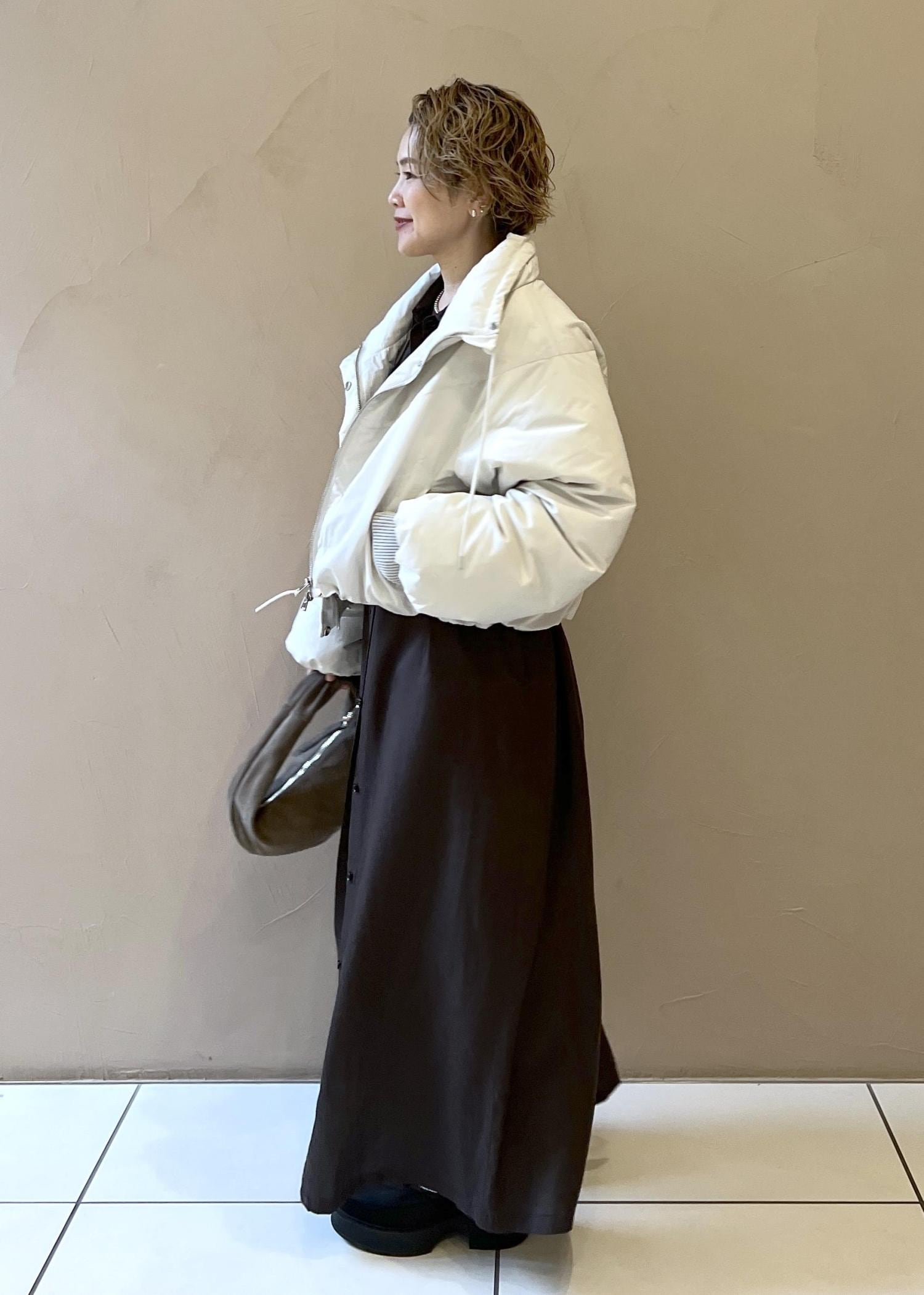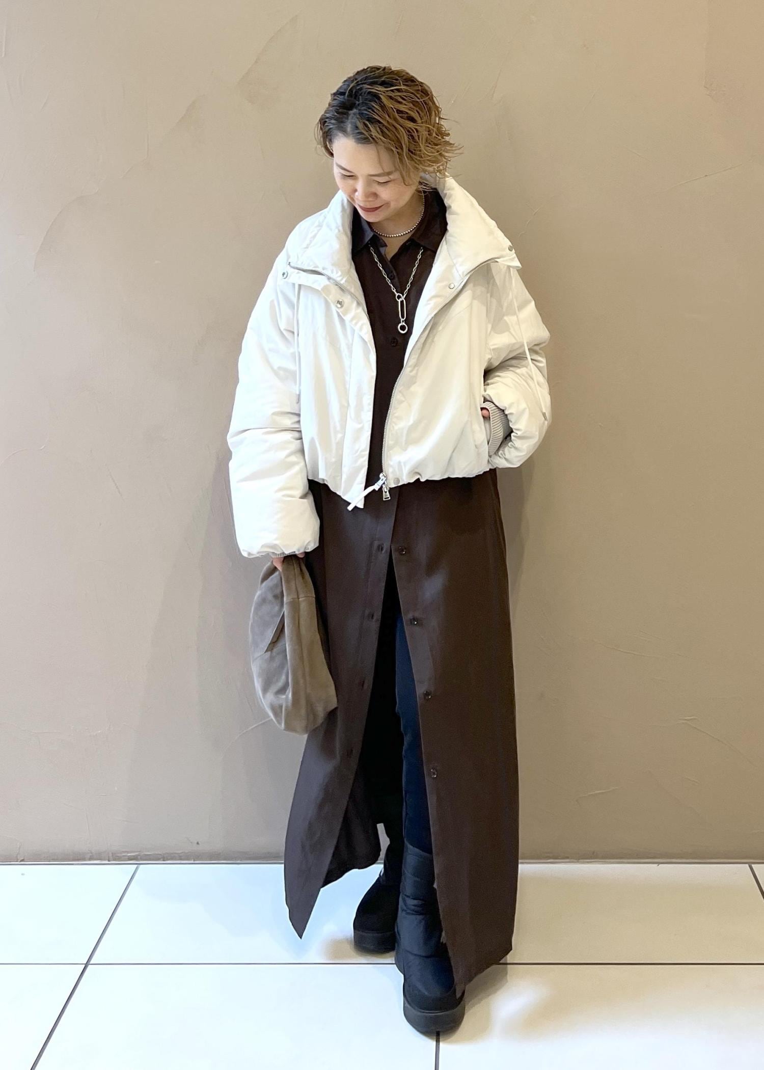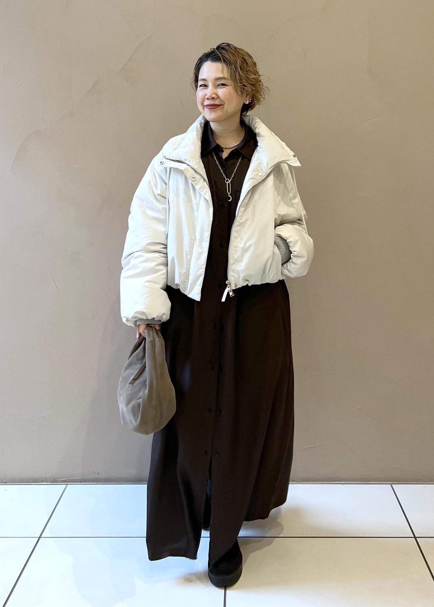低身長には嬉しいクロップド丈のダウンジャケット。
