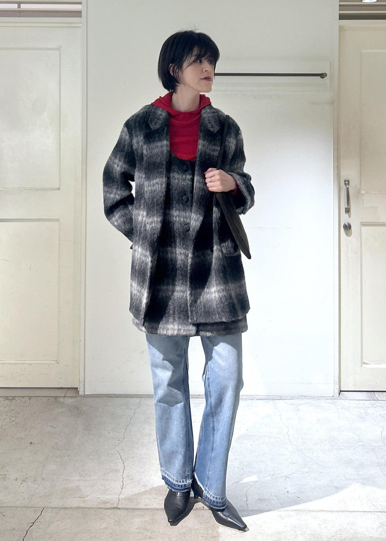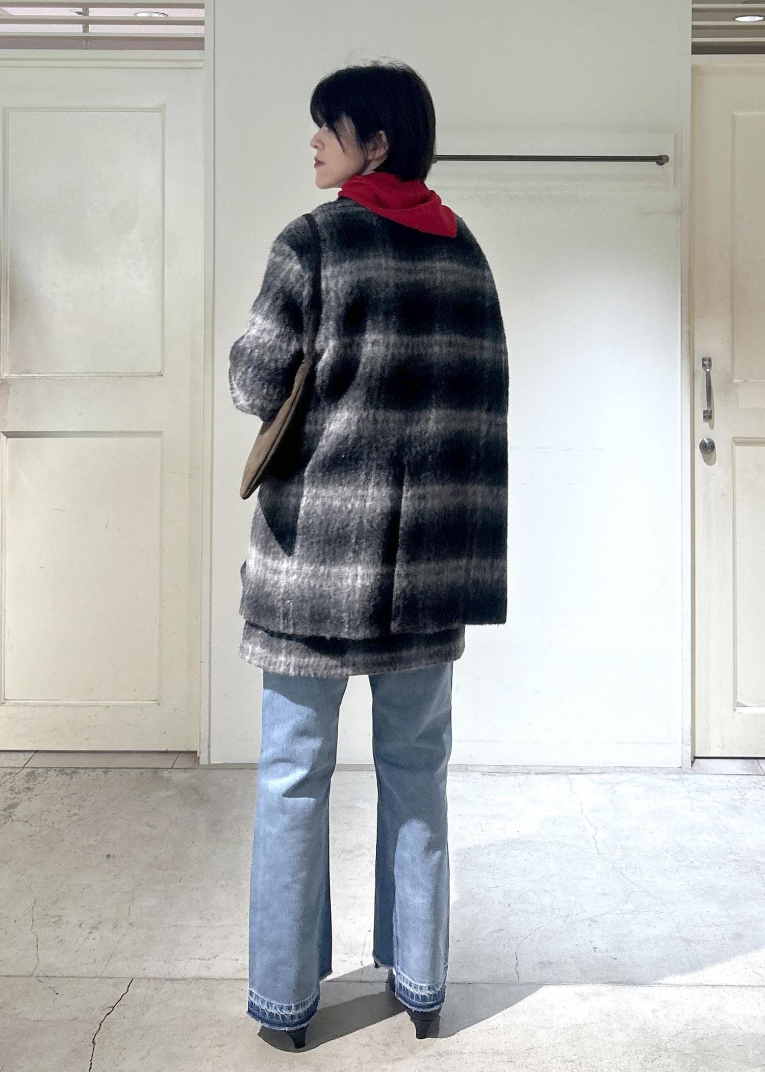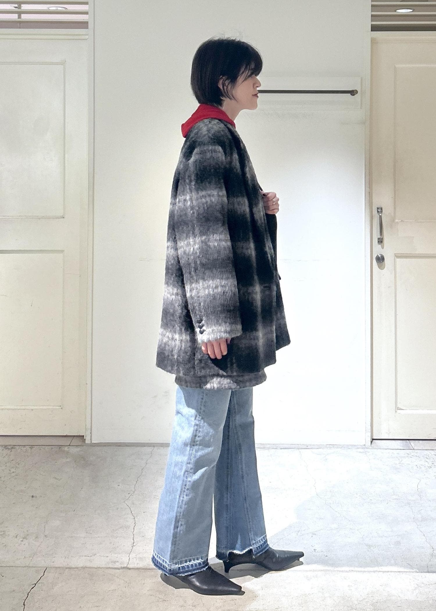 SALON adam et ropéBALLIシャギージャケットコート / セットアップ対応グレー系 / F¥64,900レビュー身長171cmで、お尻が隠れるくらいの丈の長さです。アルパカ混の柔らかいシャギー素材。裏地もあるので、軽くてとても暖かいです。大きな柄がとてもかわいい、コーディネートの主役になるコートです。