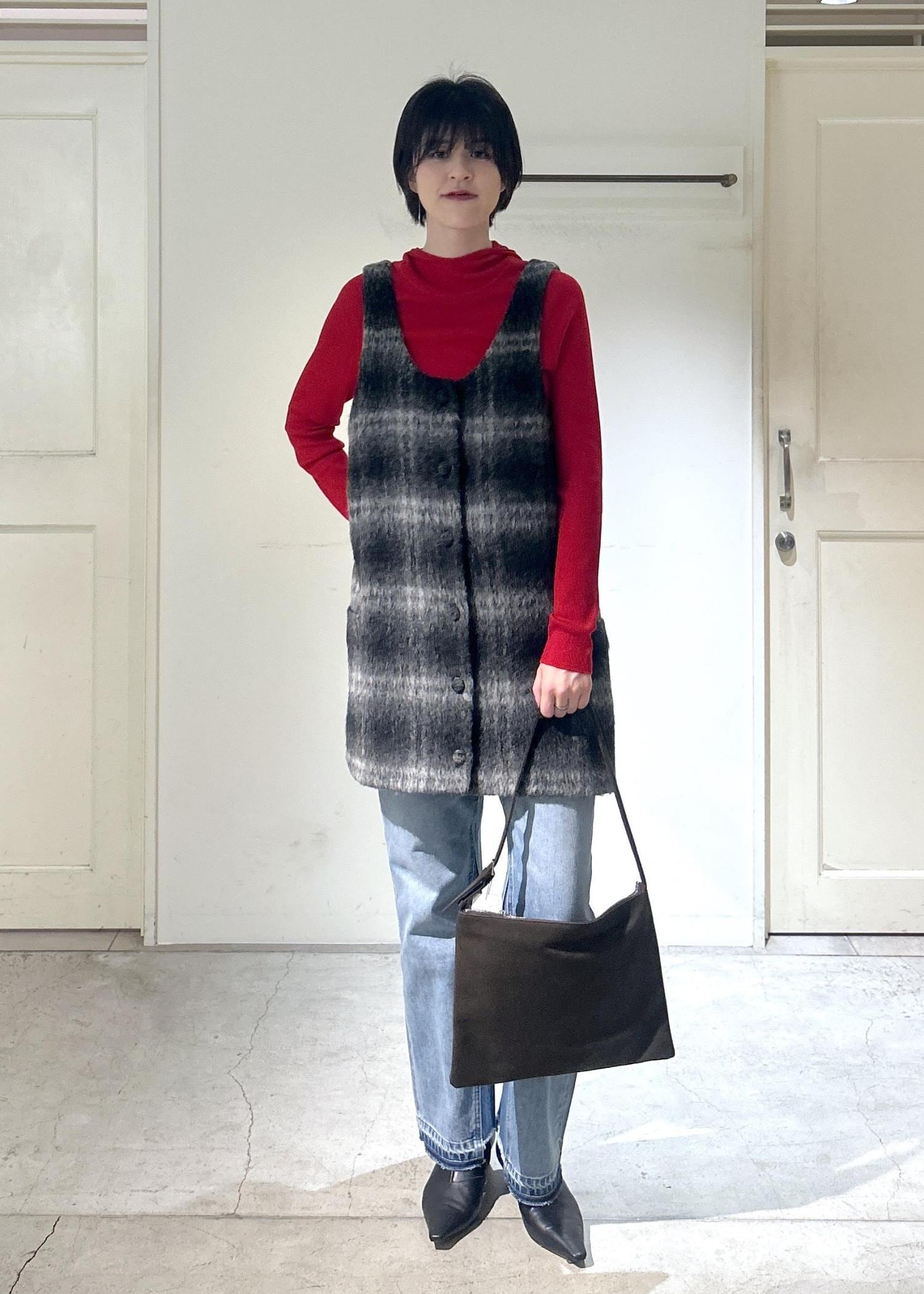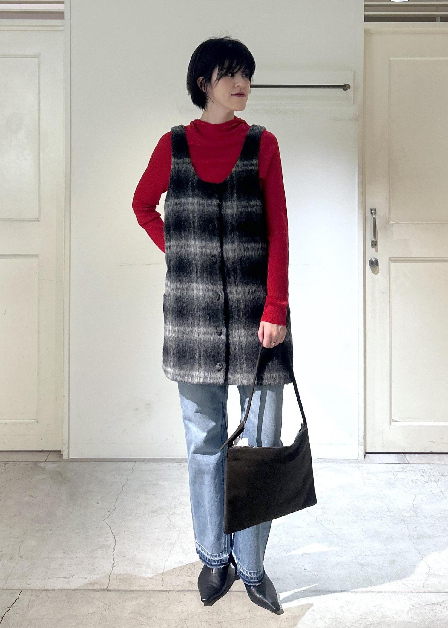 ホリデーシーズンを意識してインナーは赤にしてみました。