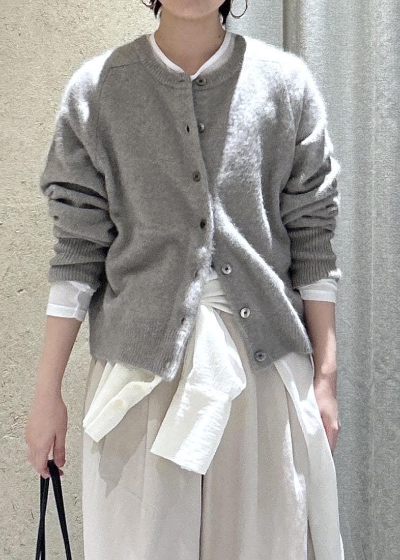 フォックスカシミヤ特有のふわふわとした優しい雰囲気のあるニットカーディガン。