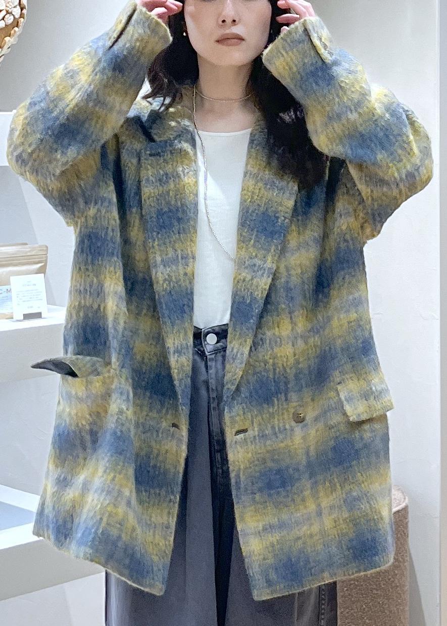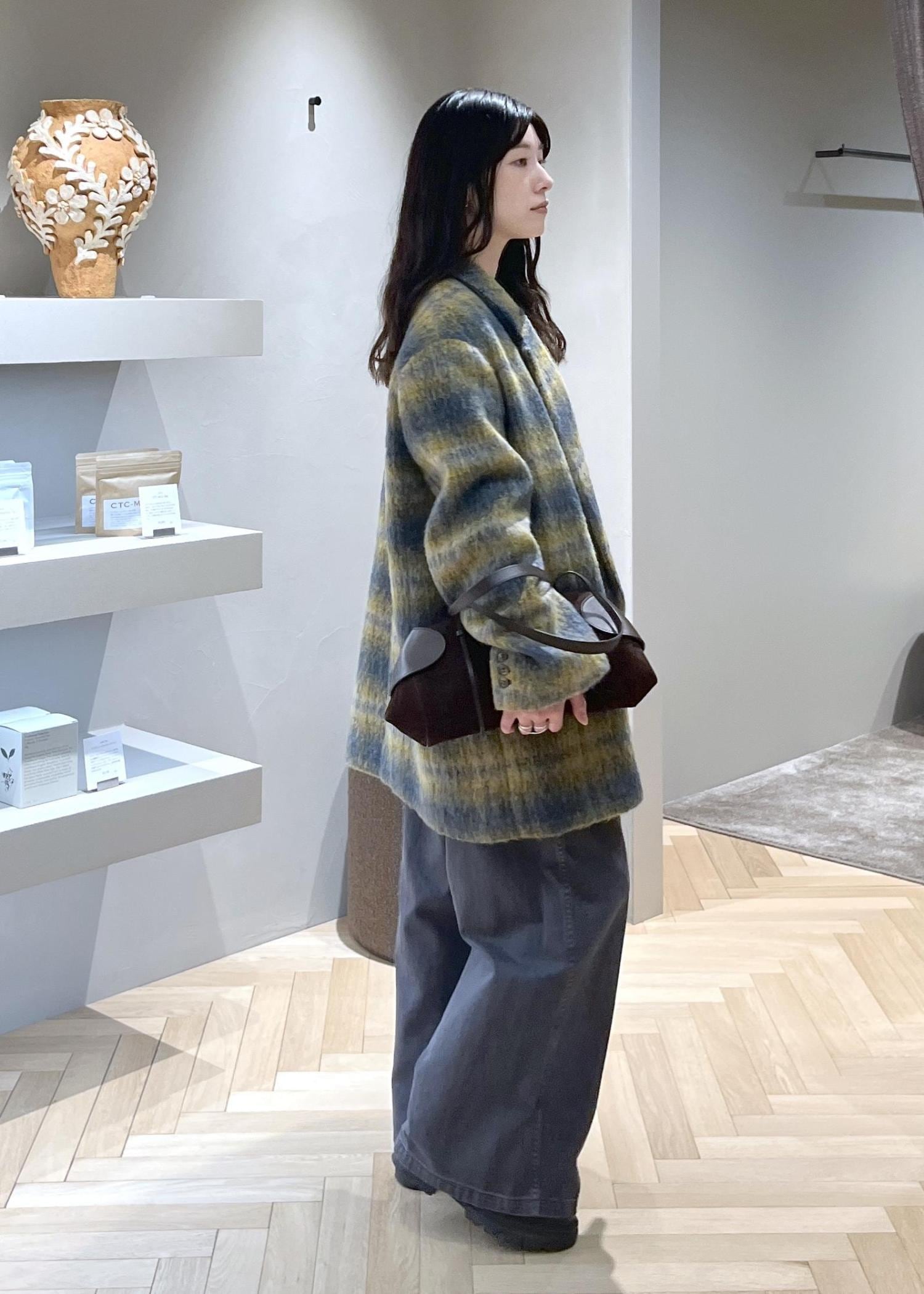 イタリアBALLI社製の高級素材を使用。アルパカ混のシャギー素材でとても軽くて暖かいです。華やかなチェック柄が存在感あります。 -