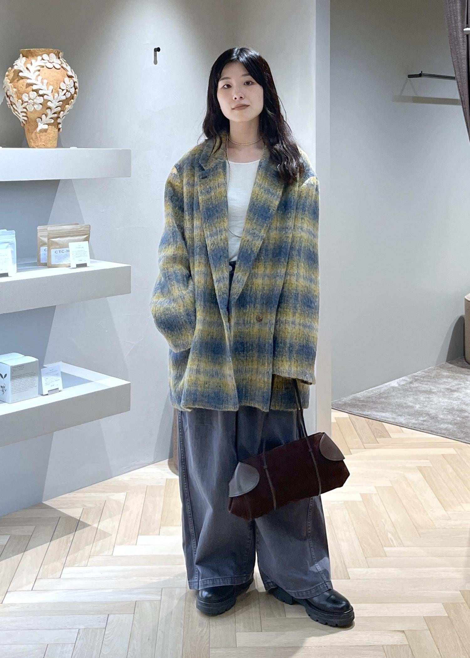 オーバーサイズのジャケットタイプ。着丈はヒップ下、身幅もゆとりがあります。