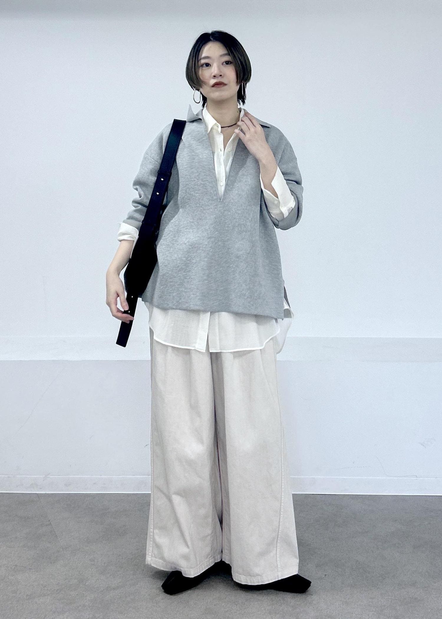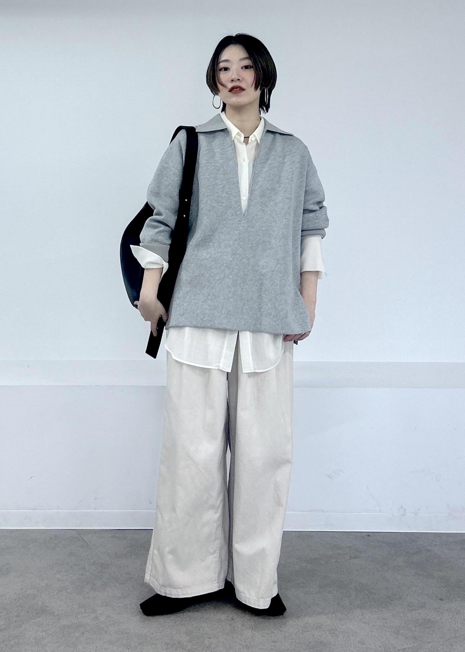私はシアーシャツと合わせて、春先の軽やかなスタイリングをイメージしてみました。