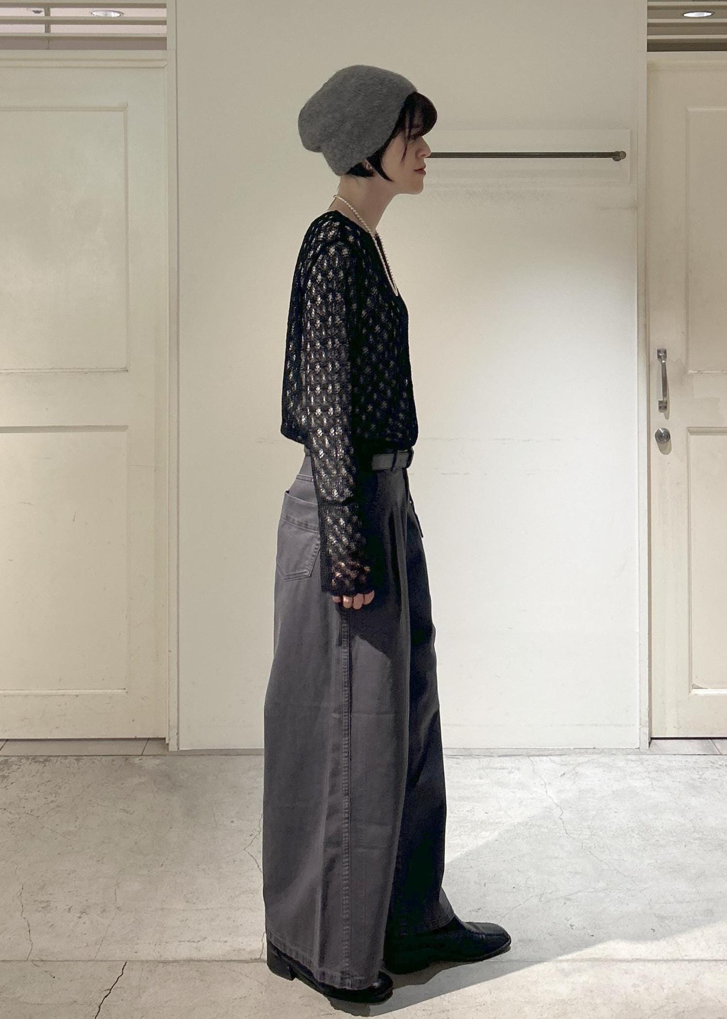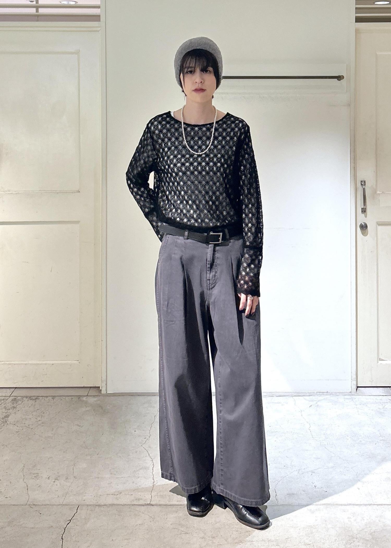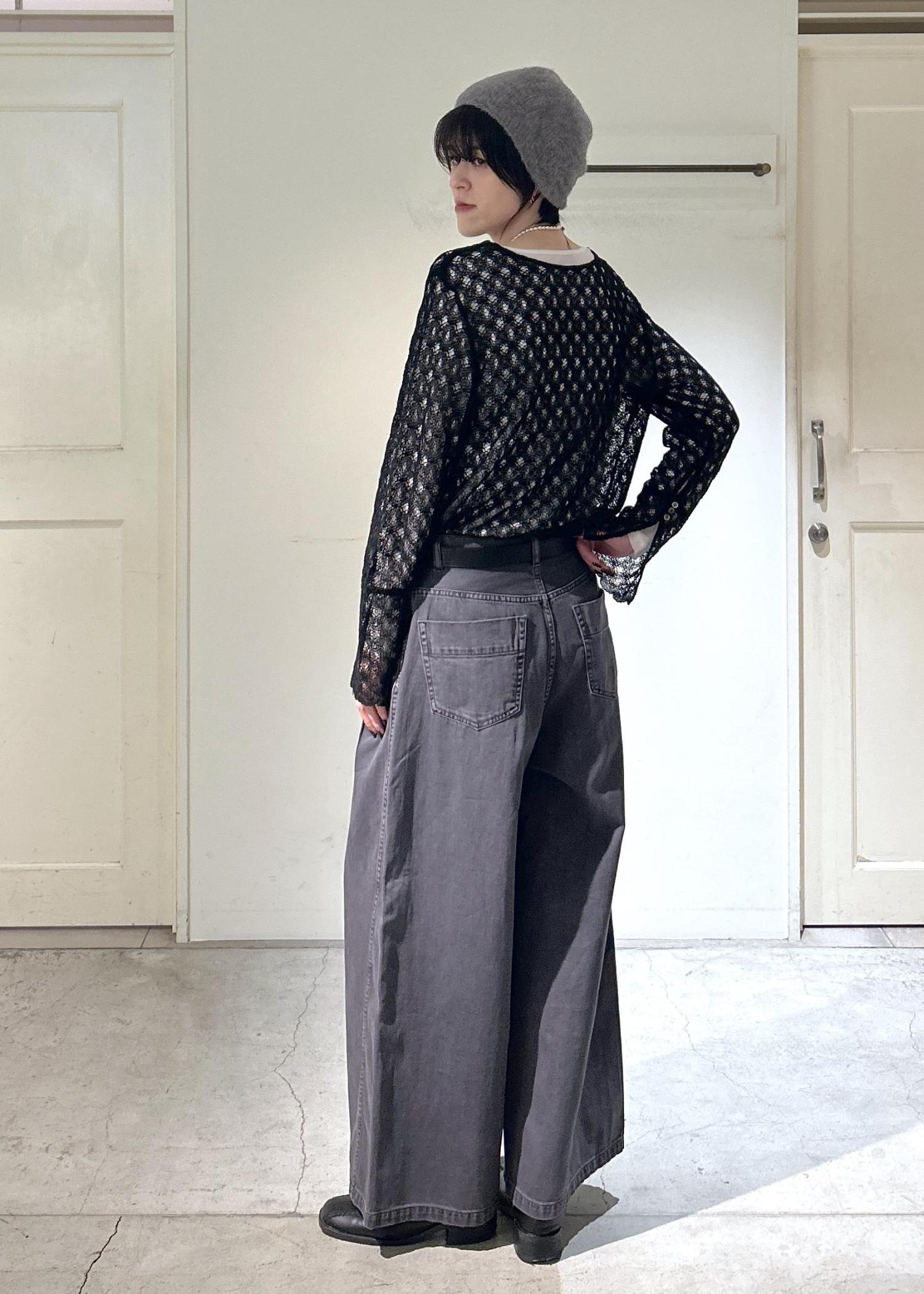 SALON adam et ropéブロークンツイル デニムパンツチャコール / M¥19,800レビュー身長171cmだと、腰履きで踝が隠れるくらいの長さです。タックが入っているので、シルエットがきれいなワイドパンツです。ヴィンテージ感のあるデザインなので、合わせやすいです。
