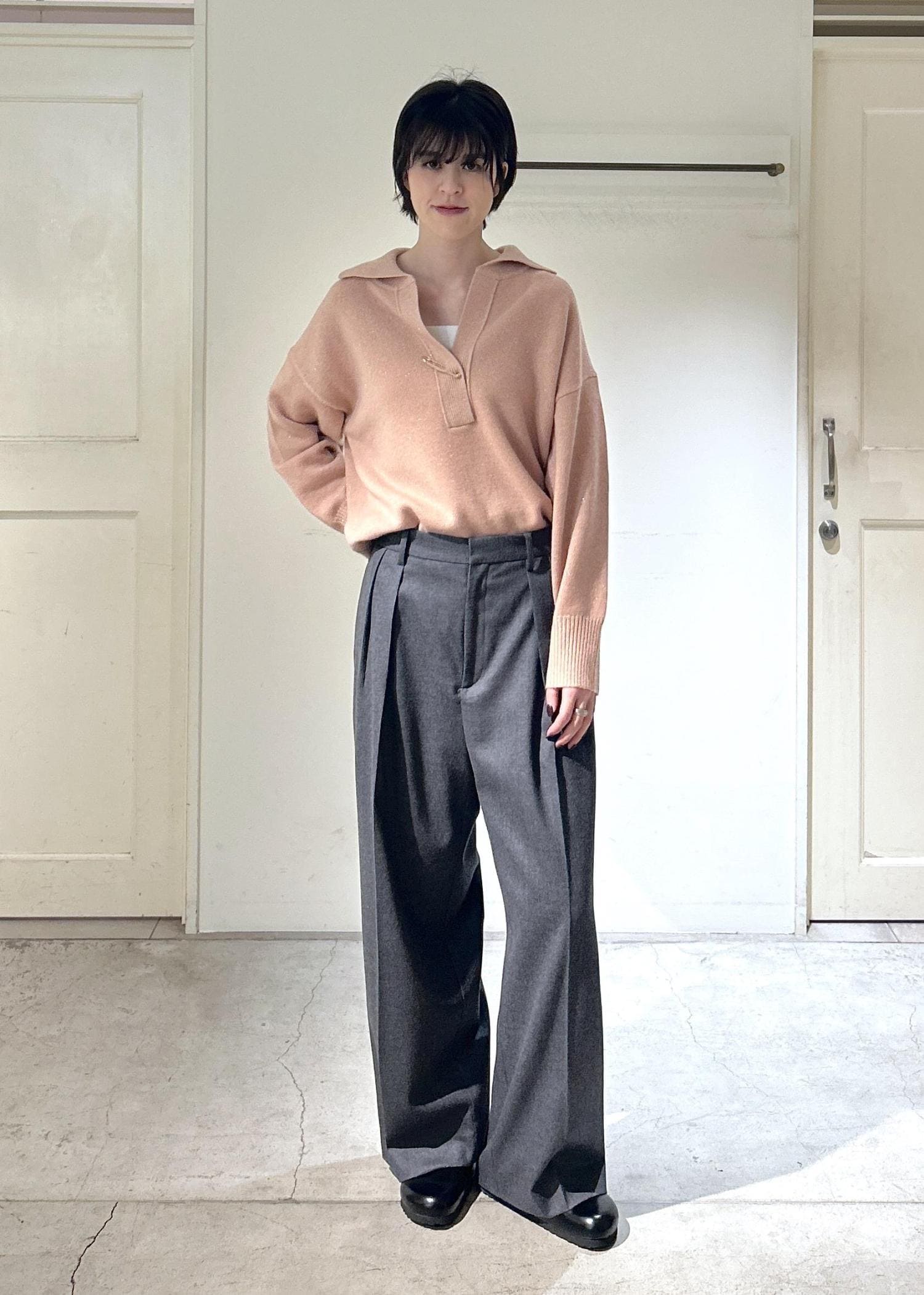 SALON adam et ropéウールタックワイドパンツ / セットアップ対応チャコール / M¥24,200レビュー[サイズ感]