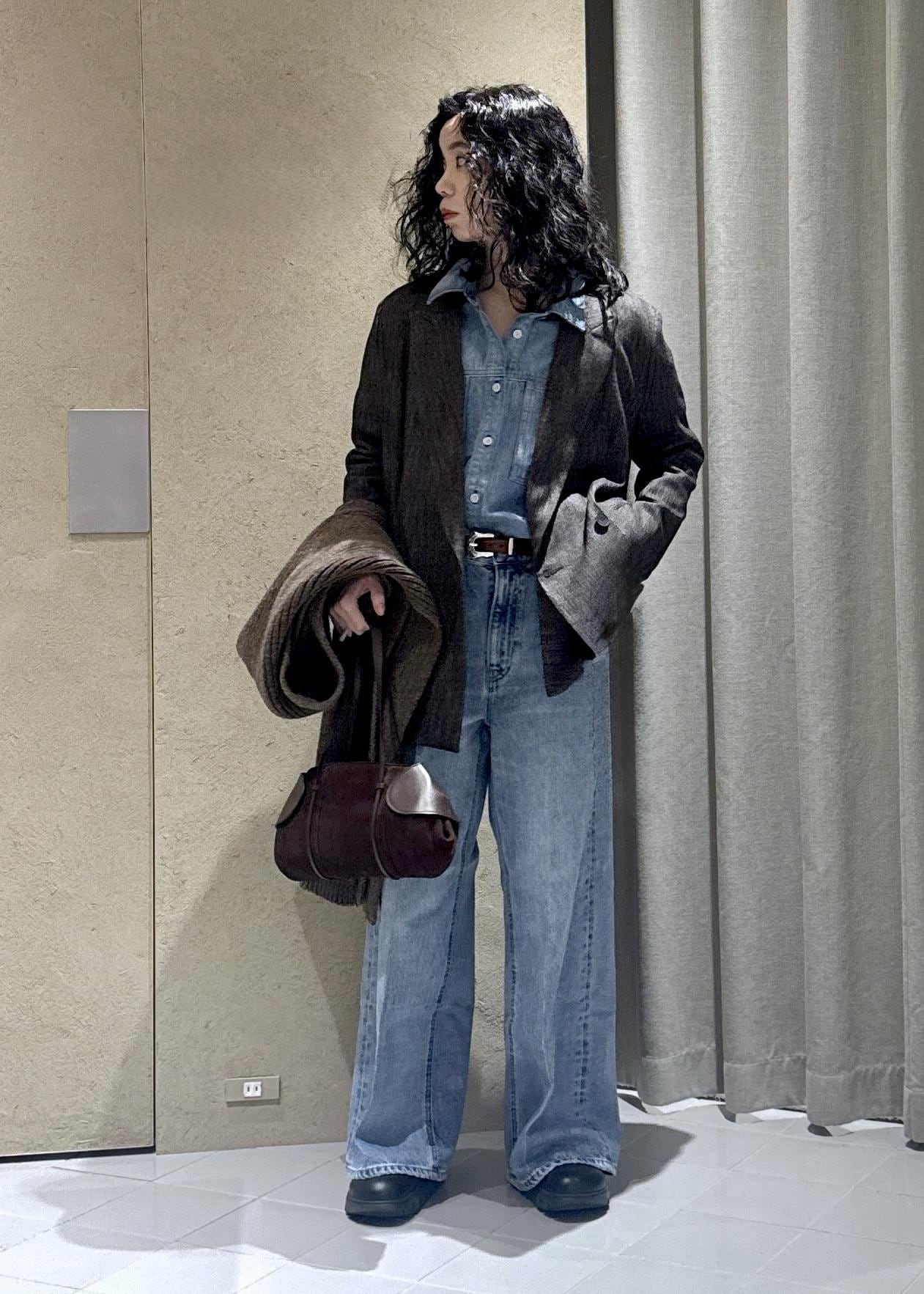 ストールでニット、バックでスエード、ベルトでツヤのあるレザーなどメリハリのあるスタイリングを意識してみました!
