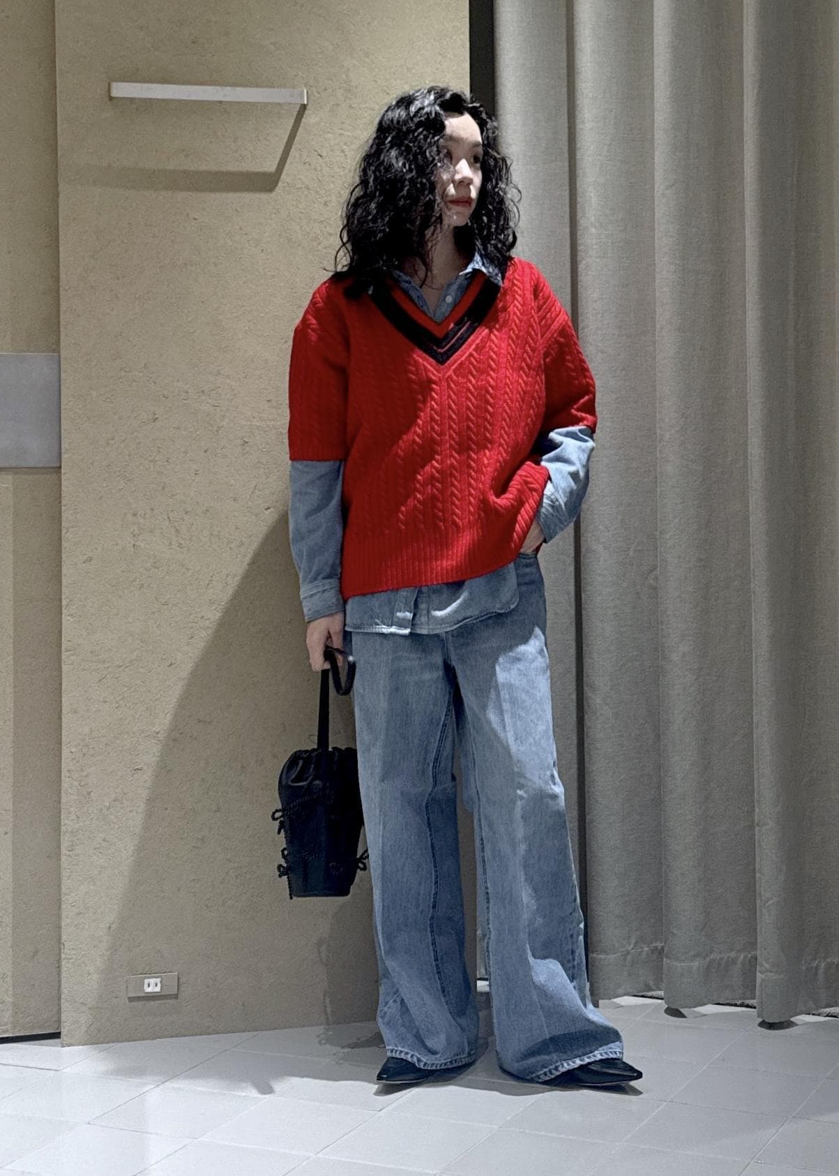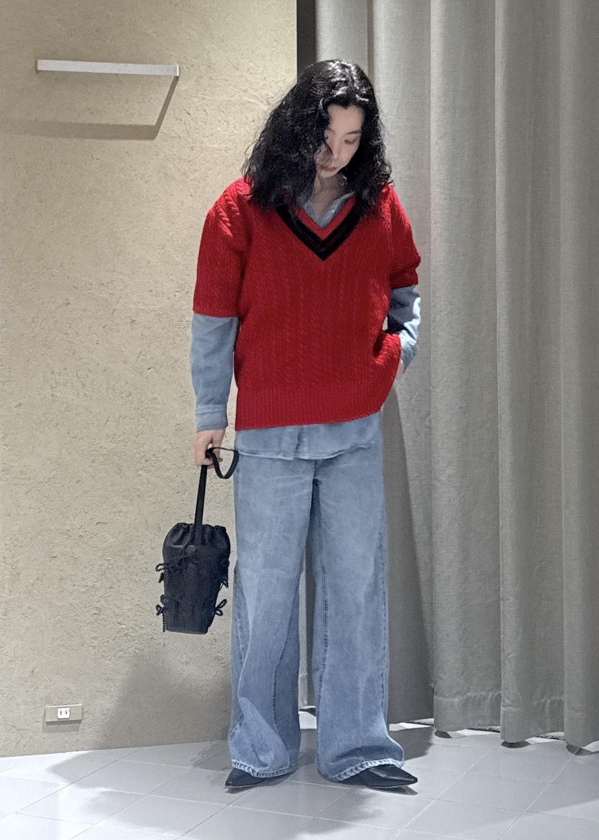 赤いニットはオンライン未掲載アイテムですがこちらでご紹介。