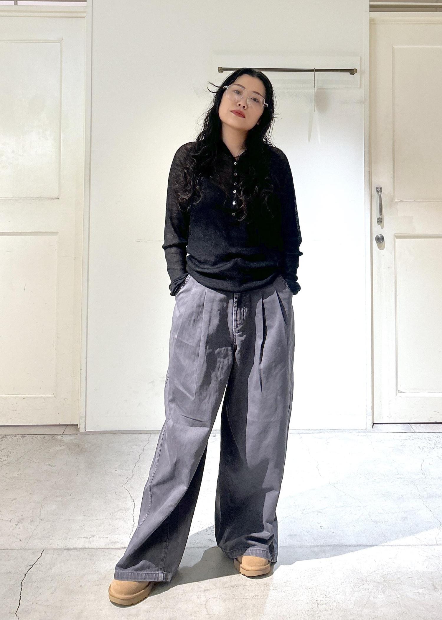 ワイドなブロークンツイルパンツをメインにワントーンコーデ!