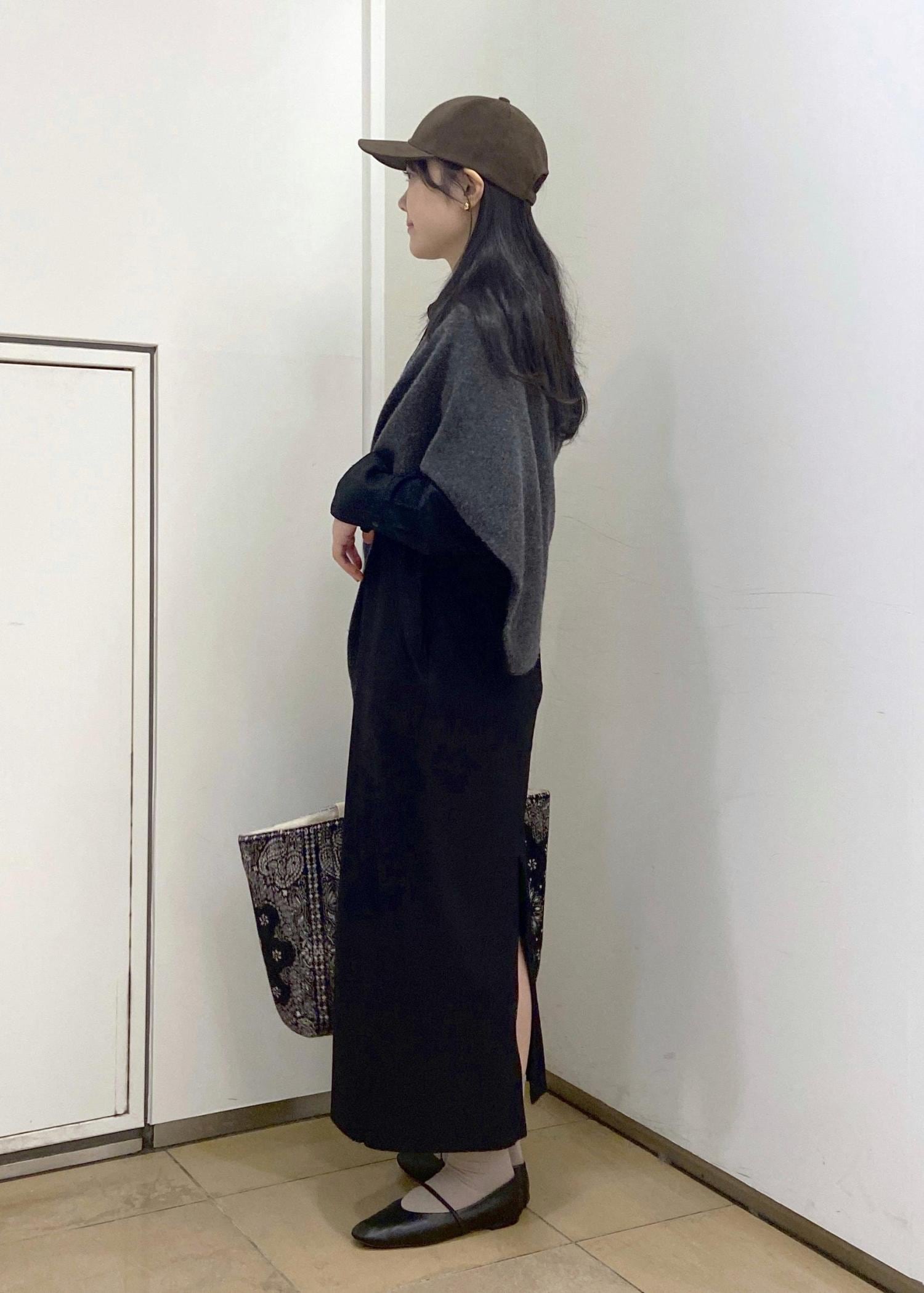 スウェードのキャップやストールは、トレンド感とスタイリングにメリハリ、程よく抜け感を加えてくれるので今年は大活用しています、、!