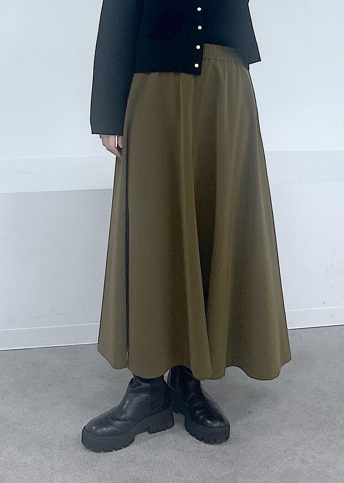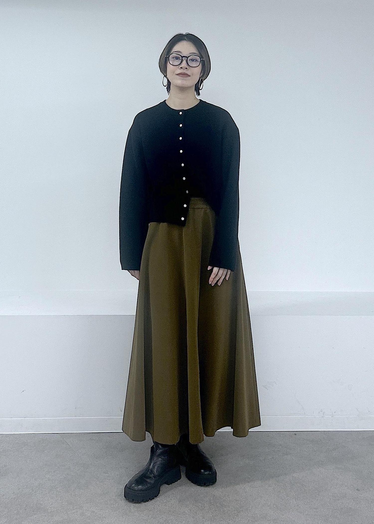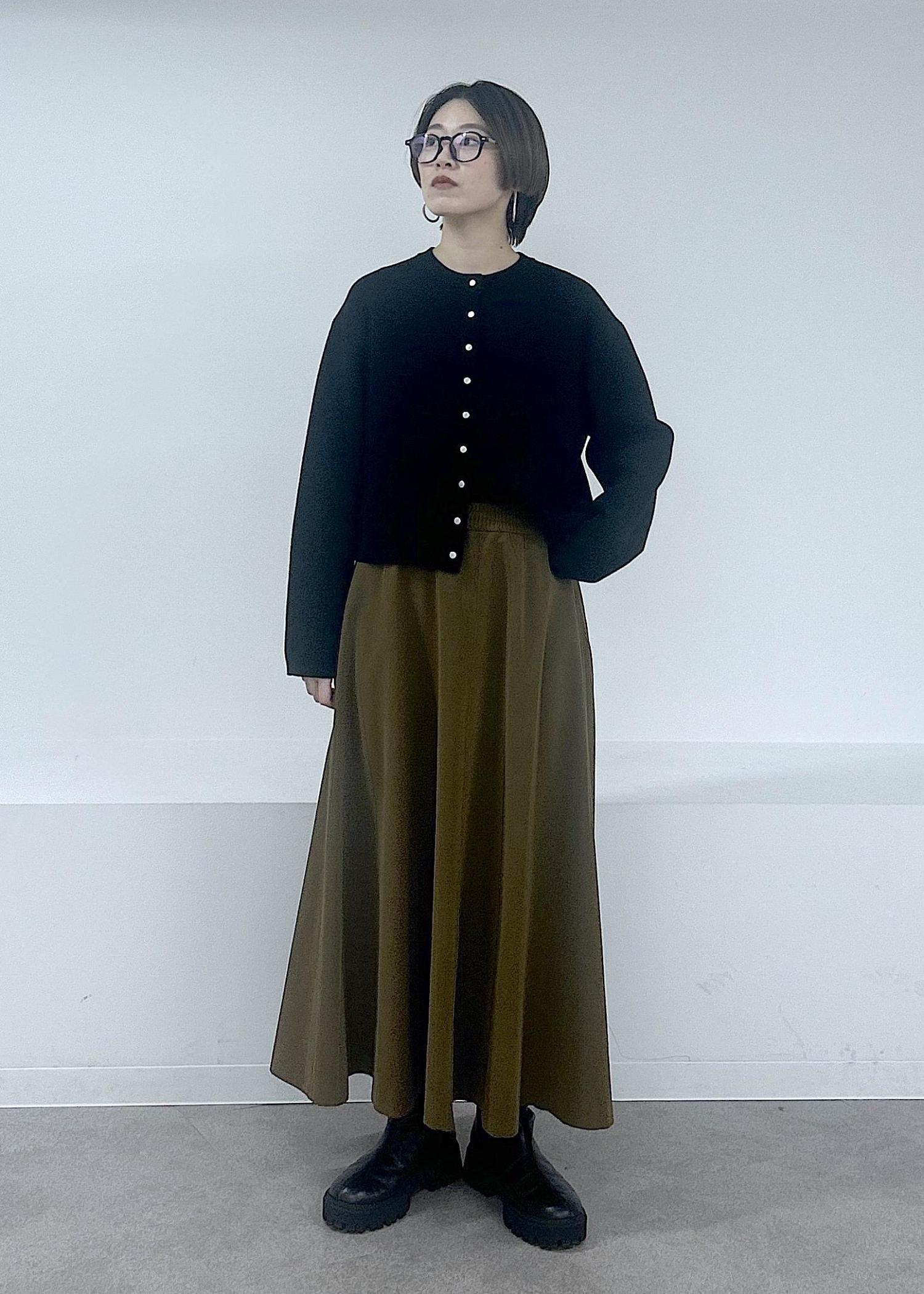 フレアスカートですが、ストンとした落ち感がありすっきり上品なシルエットにまとまります。