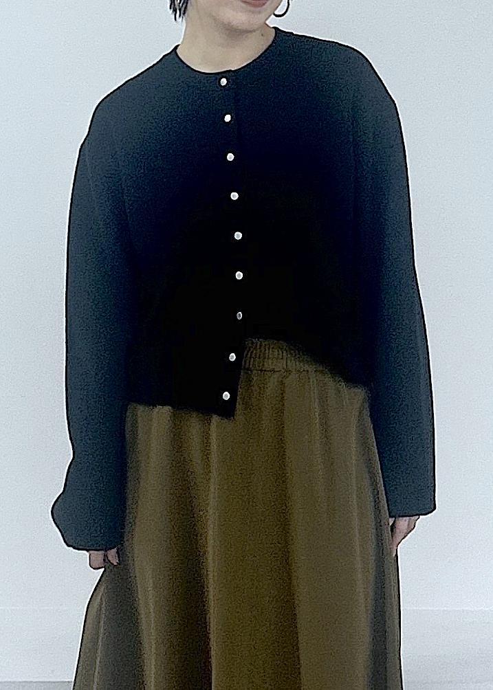 身体のラインをカバーしつつ、クロップド丈でスタイルアップしてくれるカーディガン。