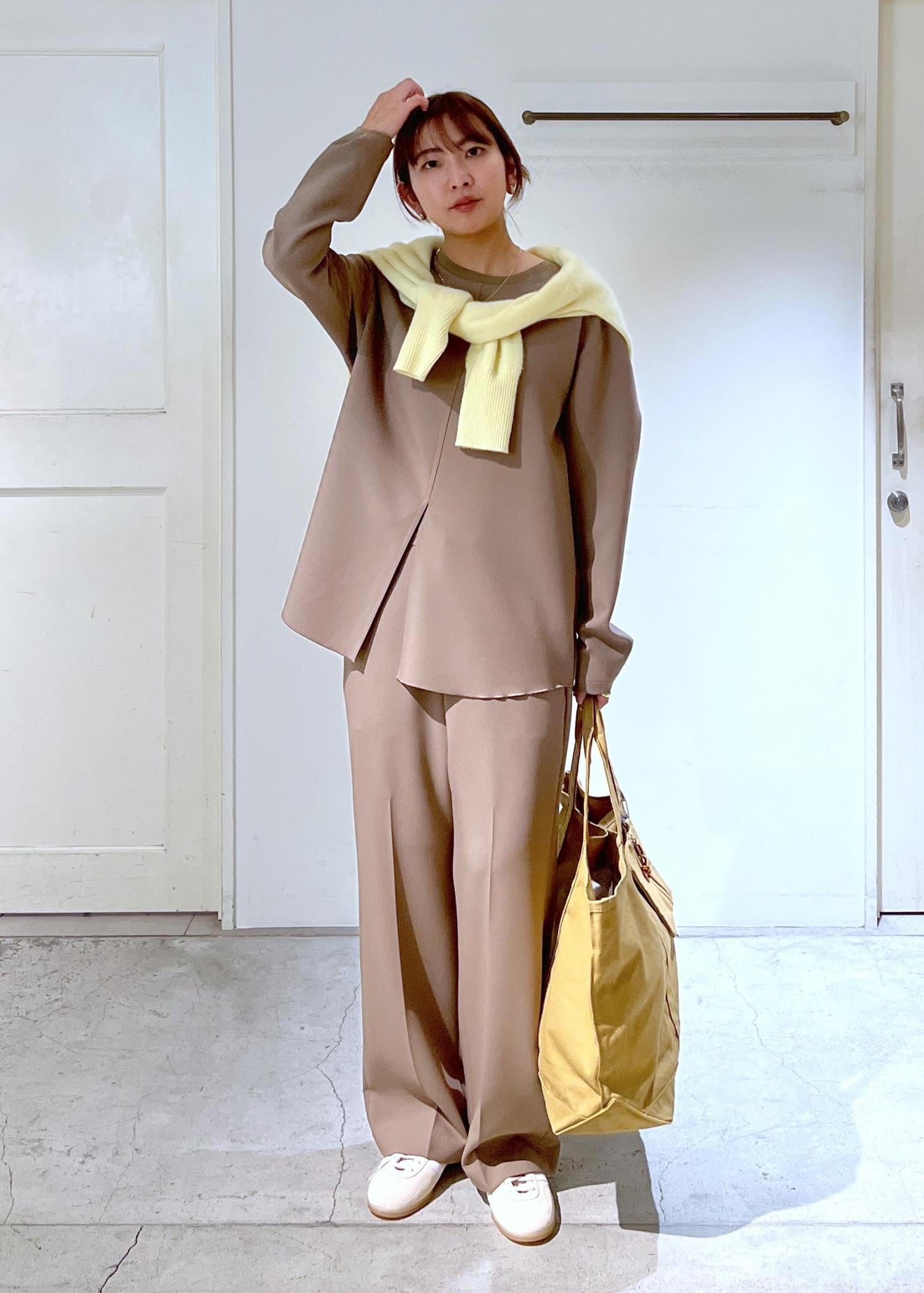 アイテム次第で新年会などお食事のシーンなどにも、日常使いもできるセットアップ。しかもシワになりにくくイージーケアな素材なのも嬉しいポイントです。