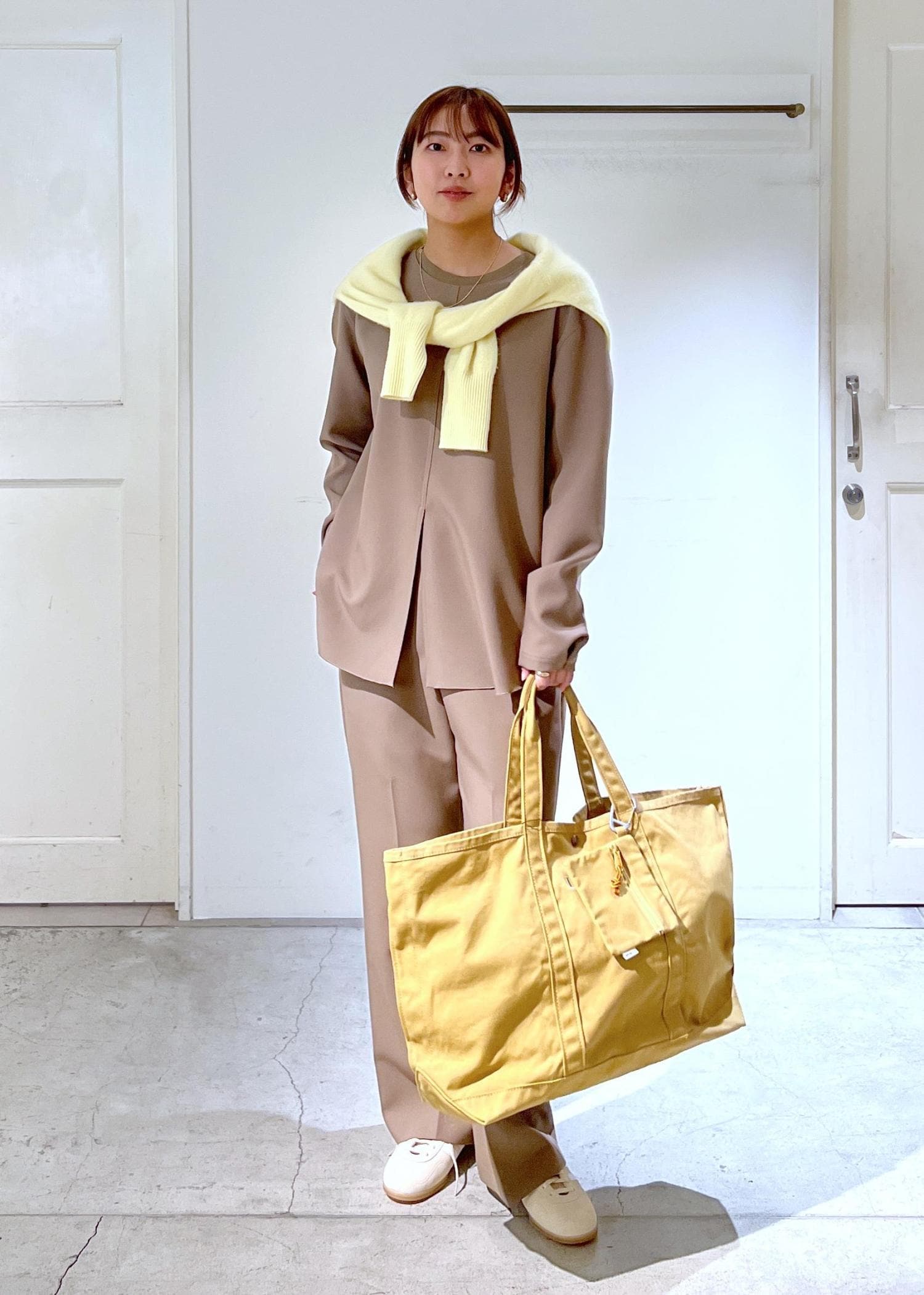 SALON adam et ropéカシミヤクルーネックニットカーディガンイエロー系 / F¥35,200レビュー程よくゆとりがあるサイズ感です。
