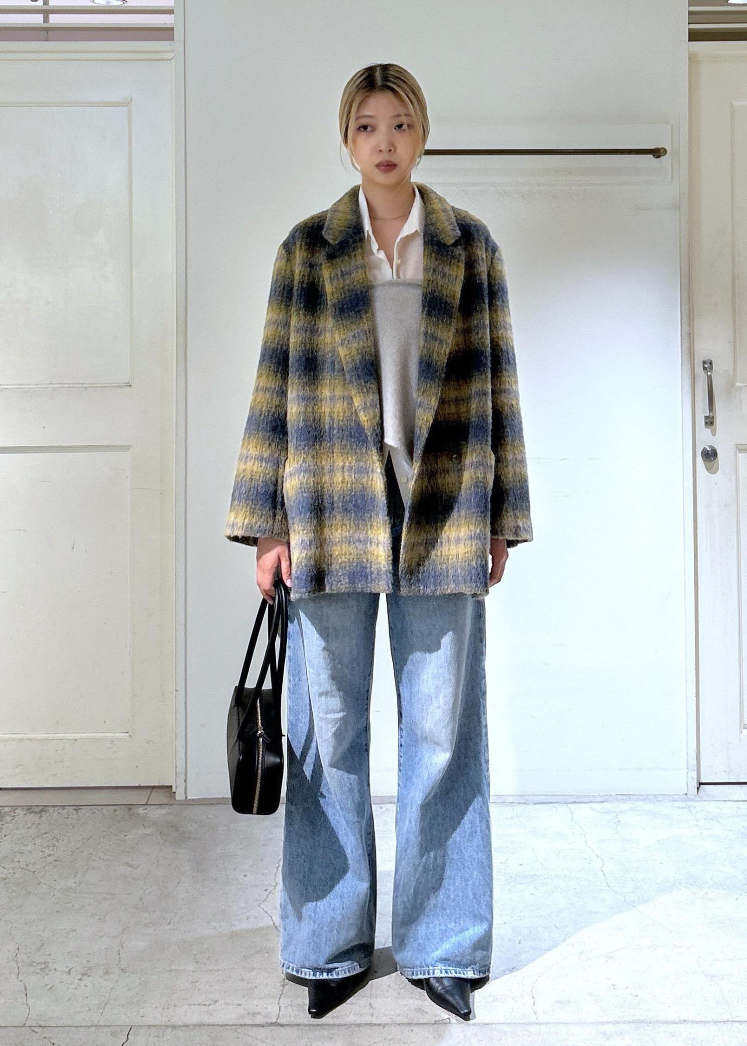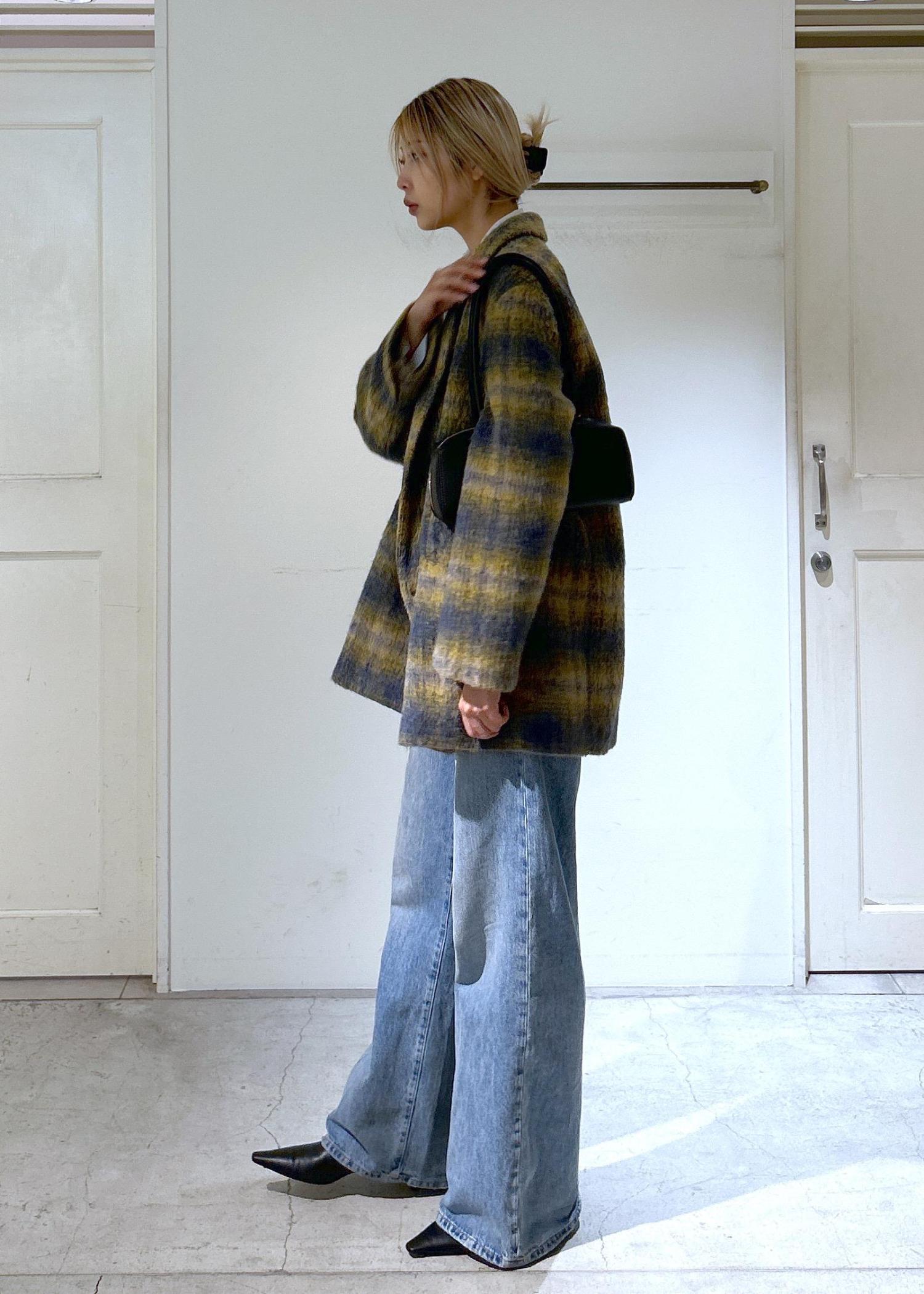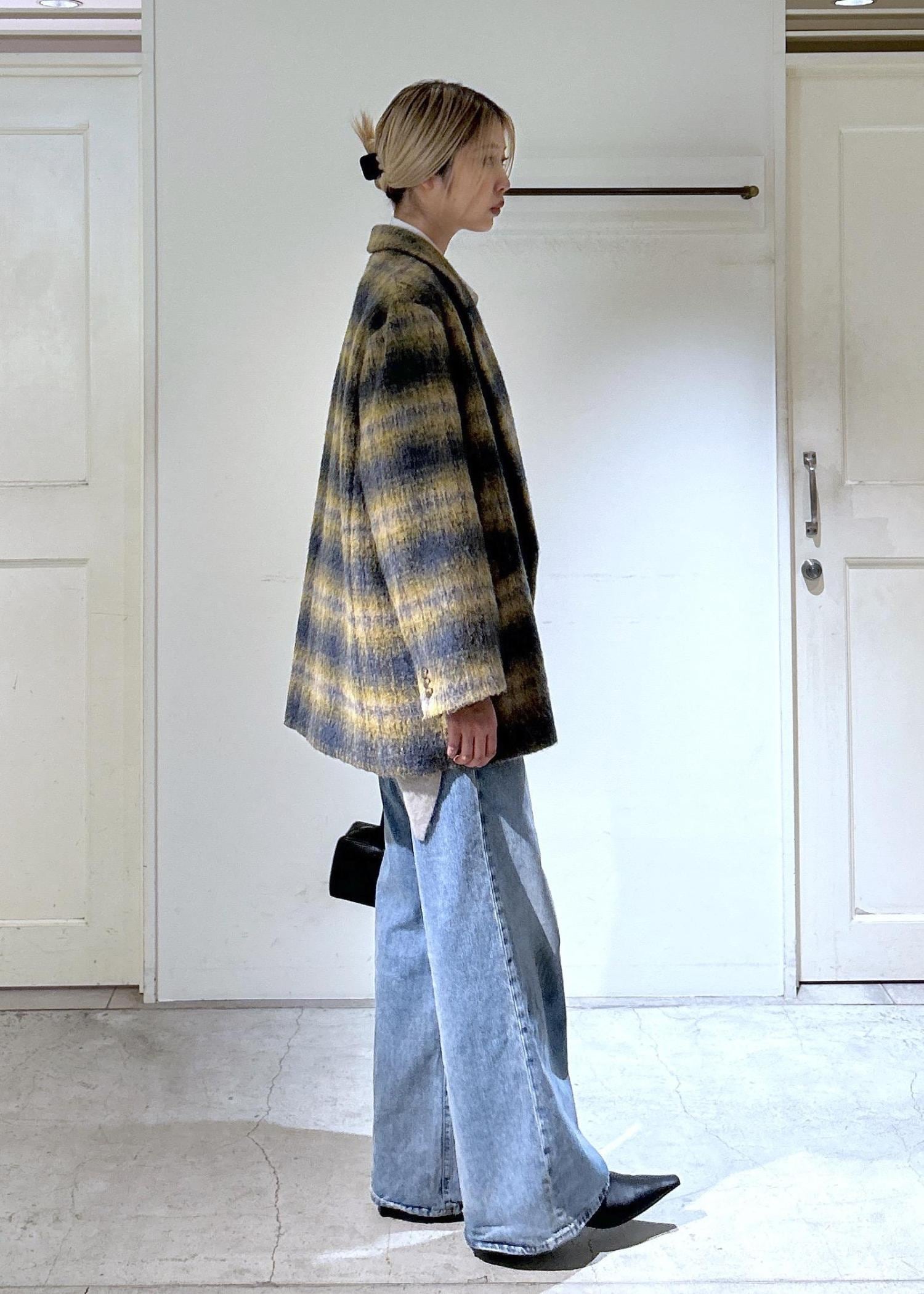 今回はシャギージャケットコートを使用してパンツスタイルのコーディネートを組んでみました。