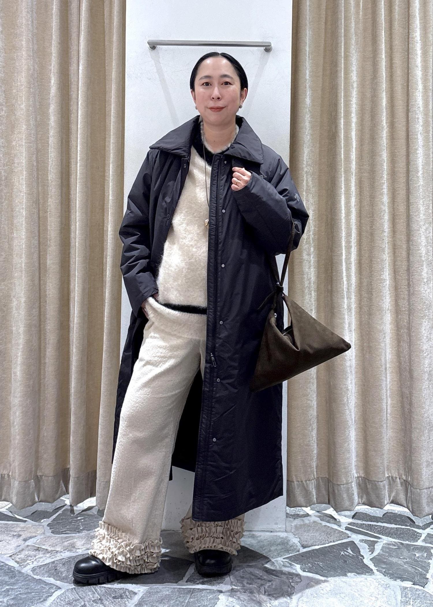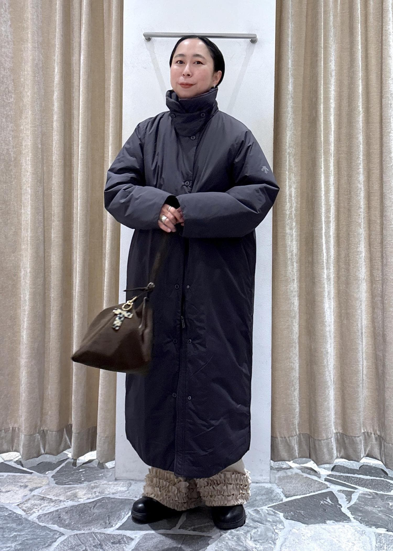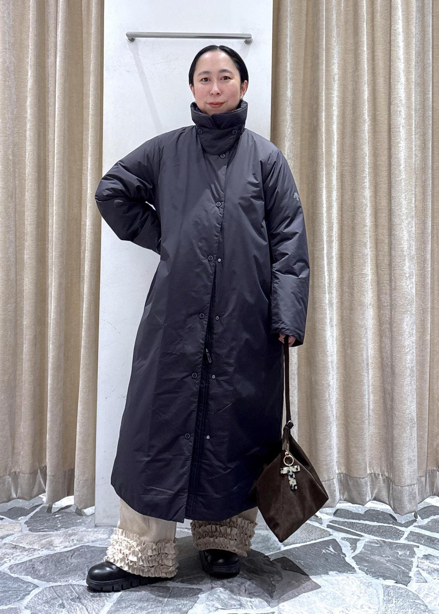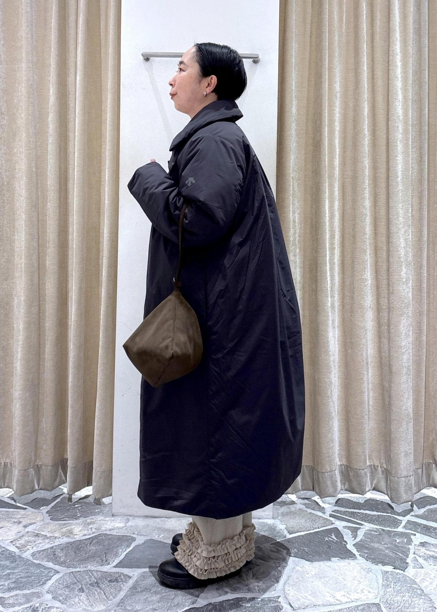 SALON adam et ropé【DESCENTE ALLTERRAIN(デサントオルテライン)】別注ステンカラーパフコートブラック系 / F¥69,300レビュー見頃、アーム共にかなりゆったりめで厚手ニットやジャケットなども着込めるサイズ感です。