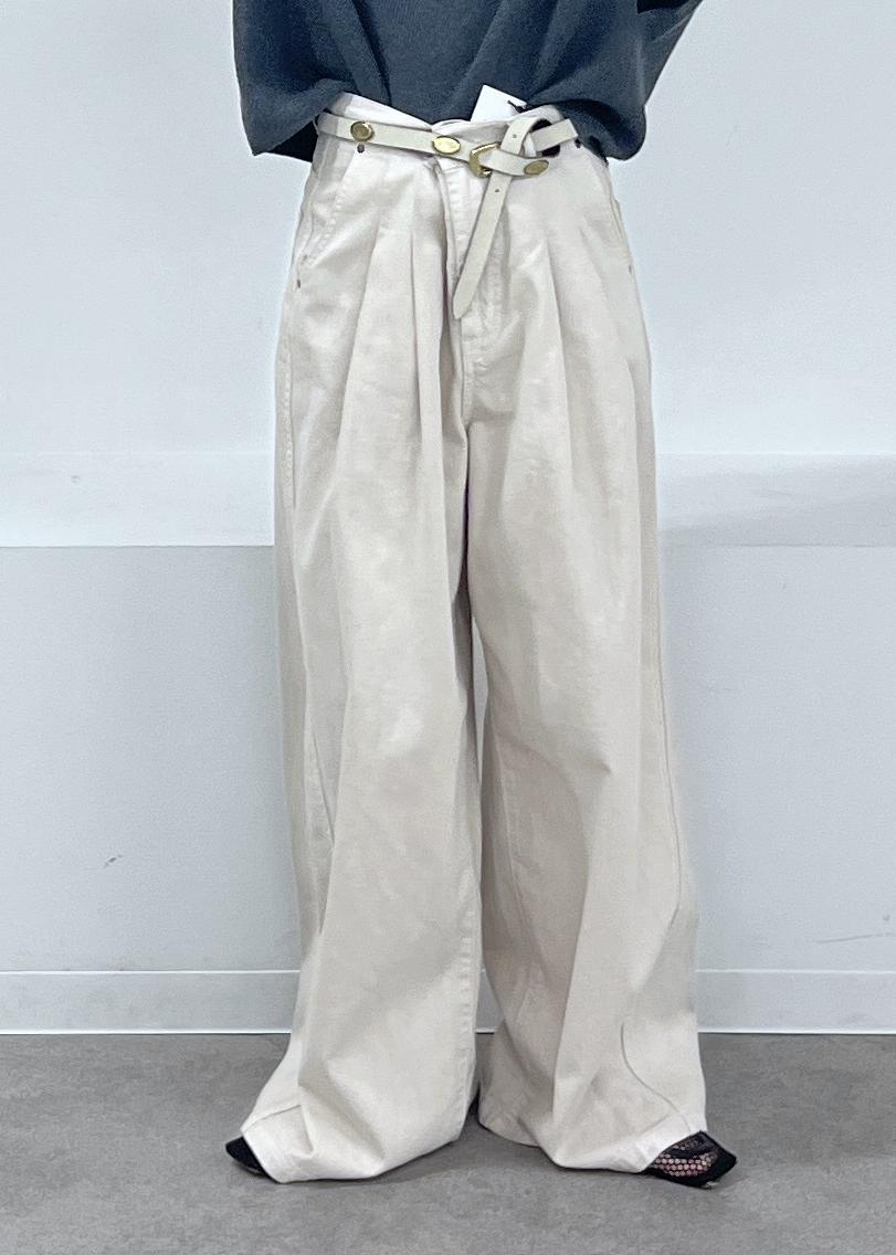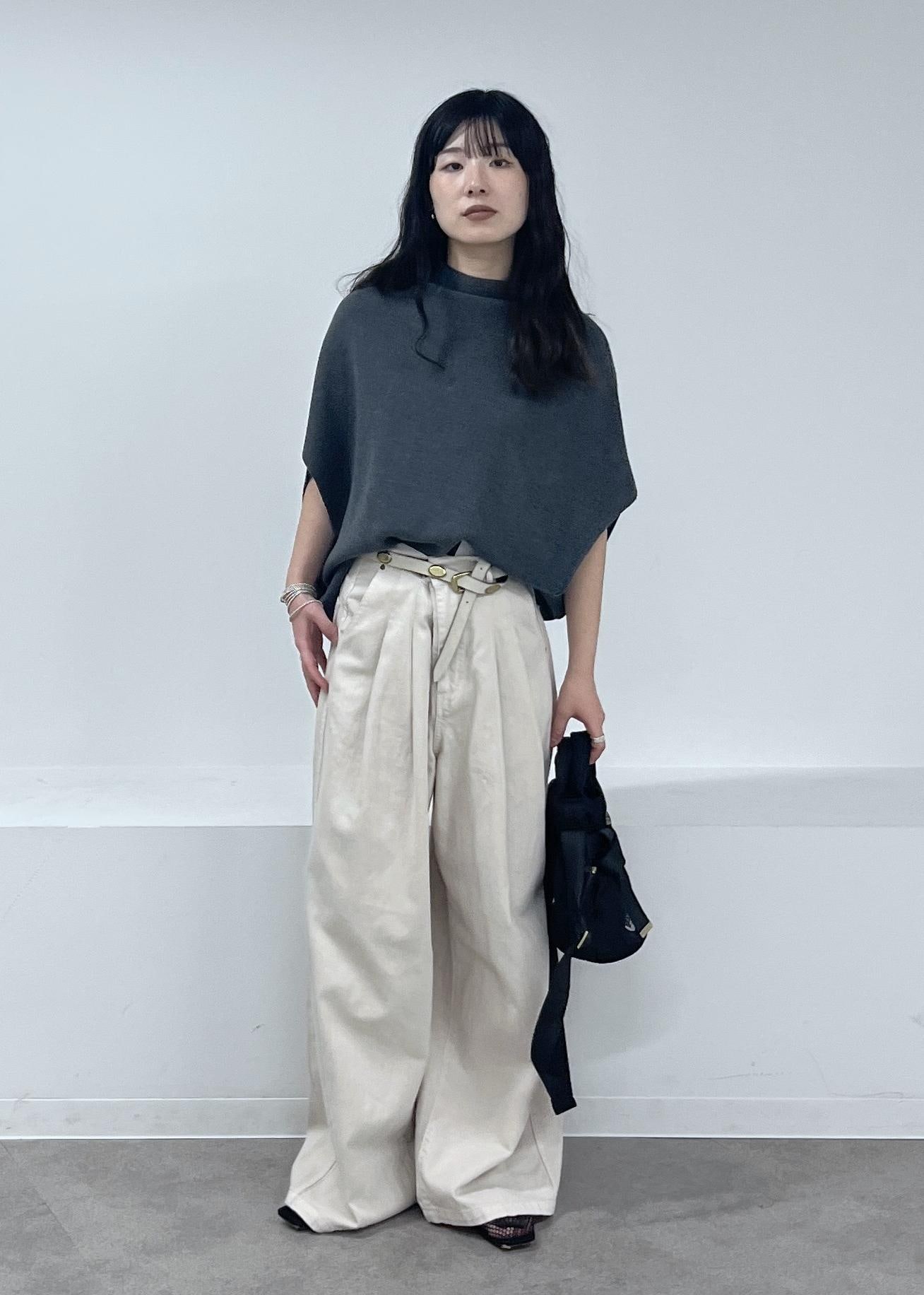 今回はカジュアルにワイドパンツと合わせました。