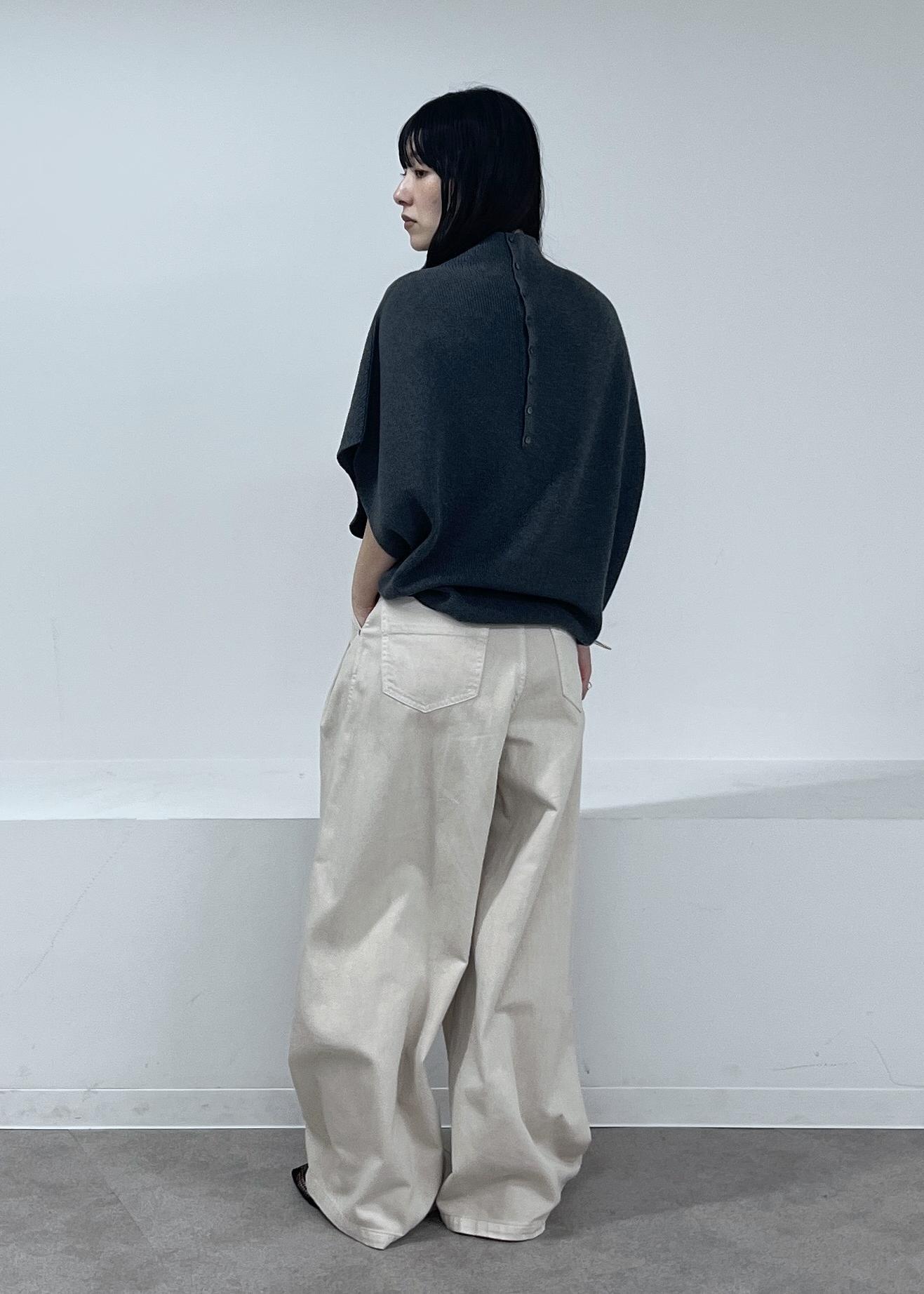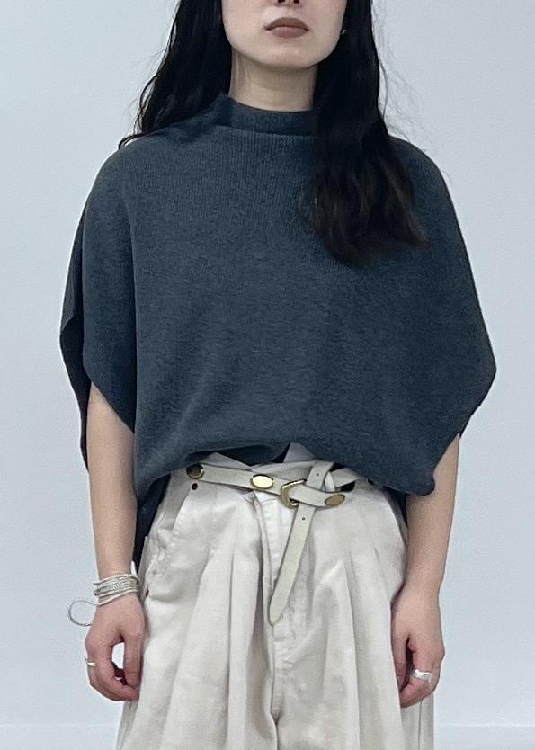 ゆったりとしたシルエット。首の半分辺りまでのハイネックにもなります。脇周りは空いてます。