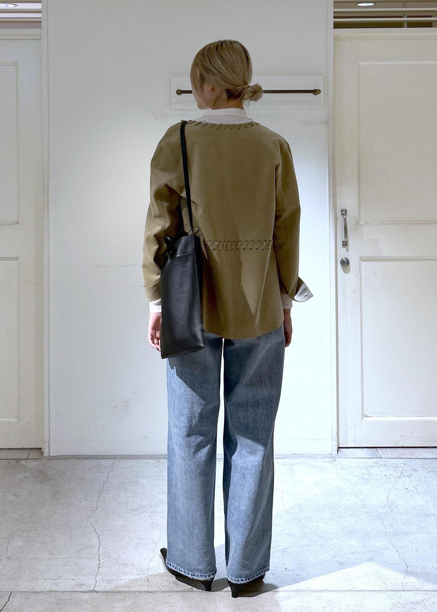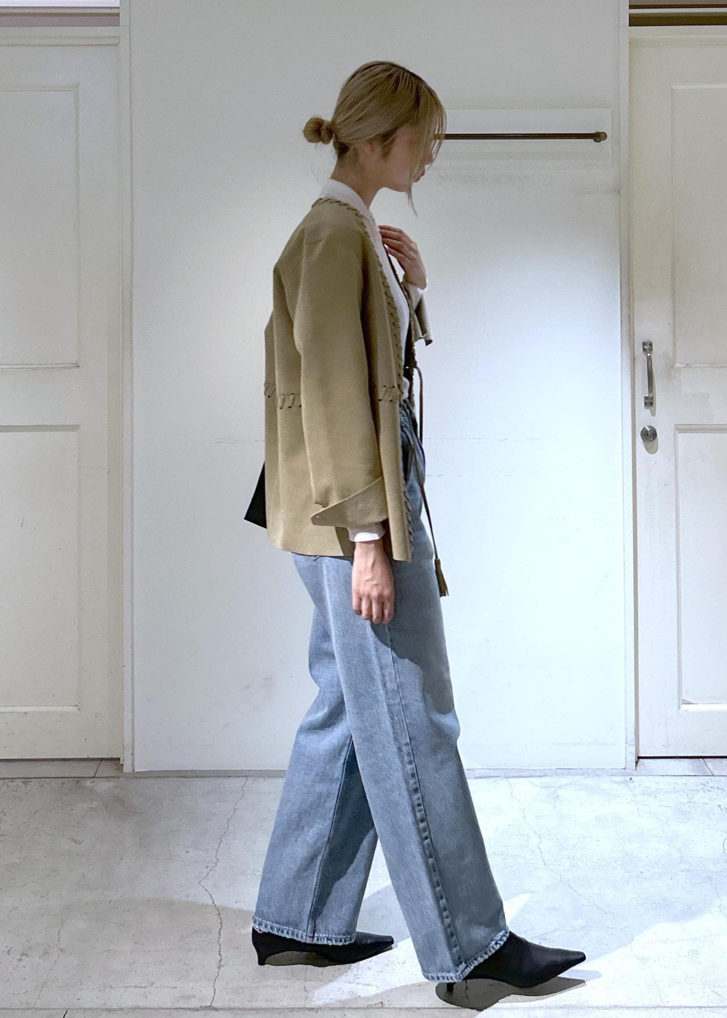今回はウルトラスウェードノーカラータッセルジャケットと、RED CARD TOKYOとの別注デニムDAKOTA MOUSEを使ってコーディネートを組んでみました。