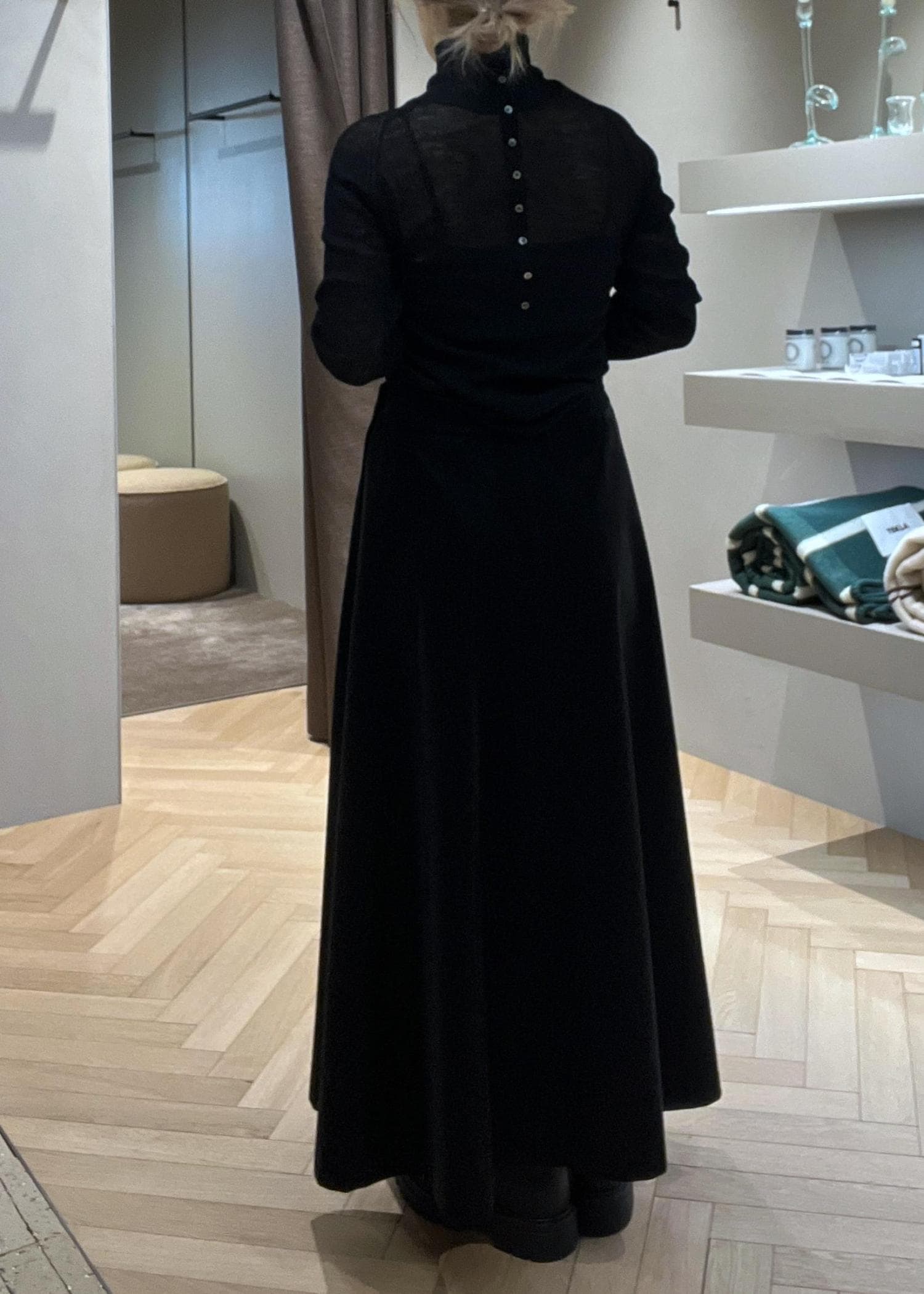 SALON adam et ropéパールレザーライクフレアスカートブラック / F¥24,200レビュー152cmでも足首がしっかり見えるくらいで履きやすい丈。高身長さんならブーツ合わせがおすすめです。