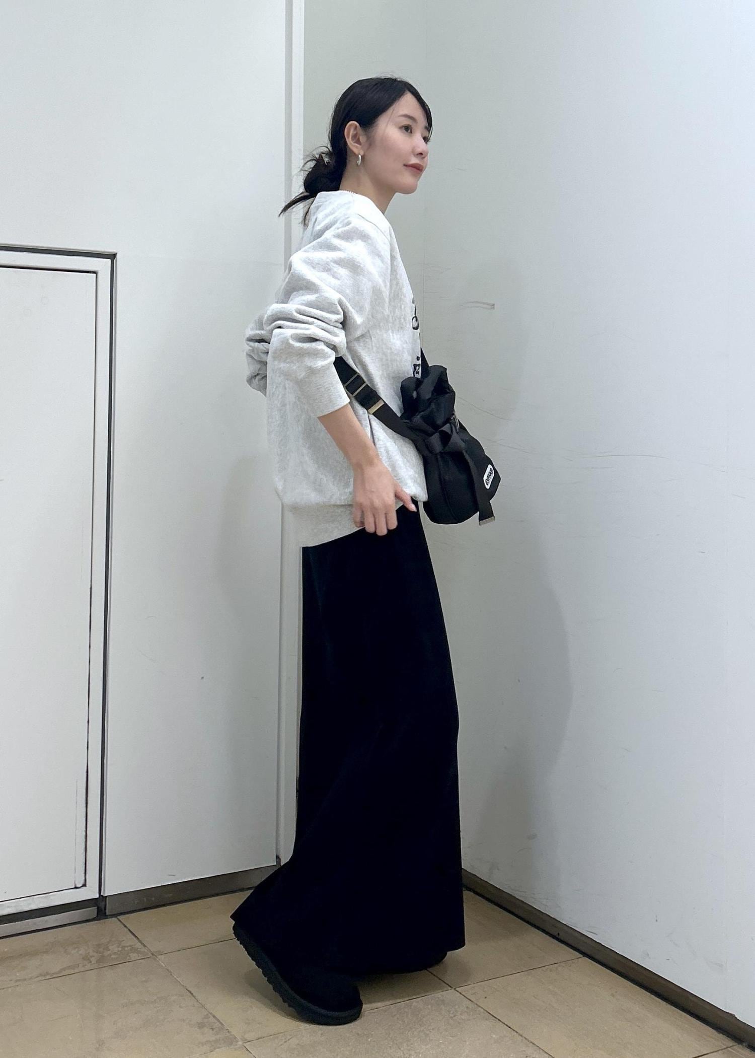 体のラインは拾わず、スッキリ見せてくれるシルエットで真冬でも安心して着用できる保温力の高いスカートです。