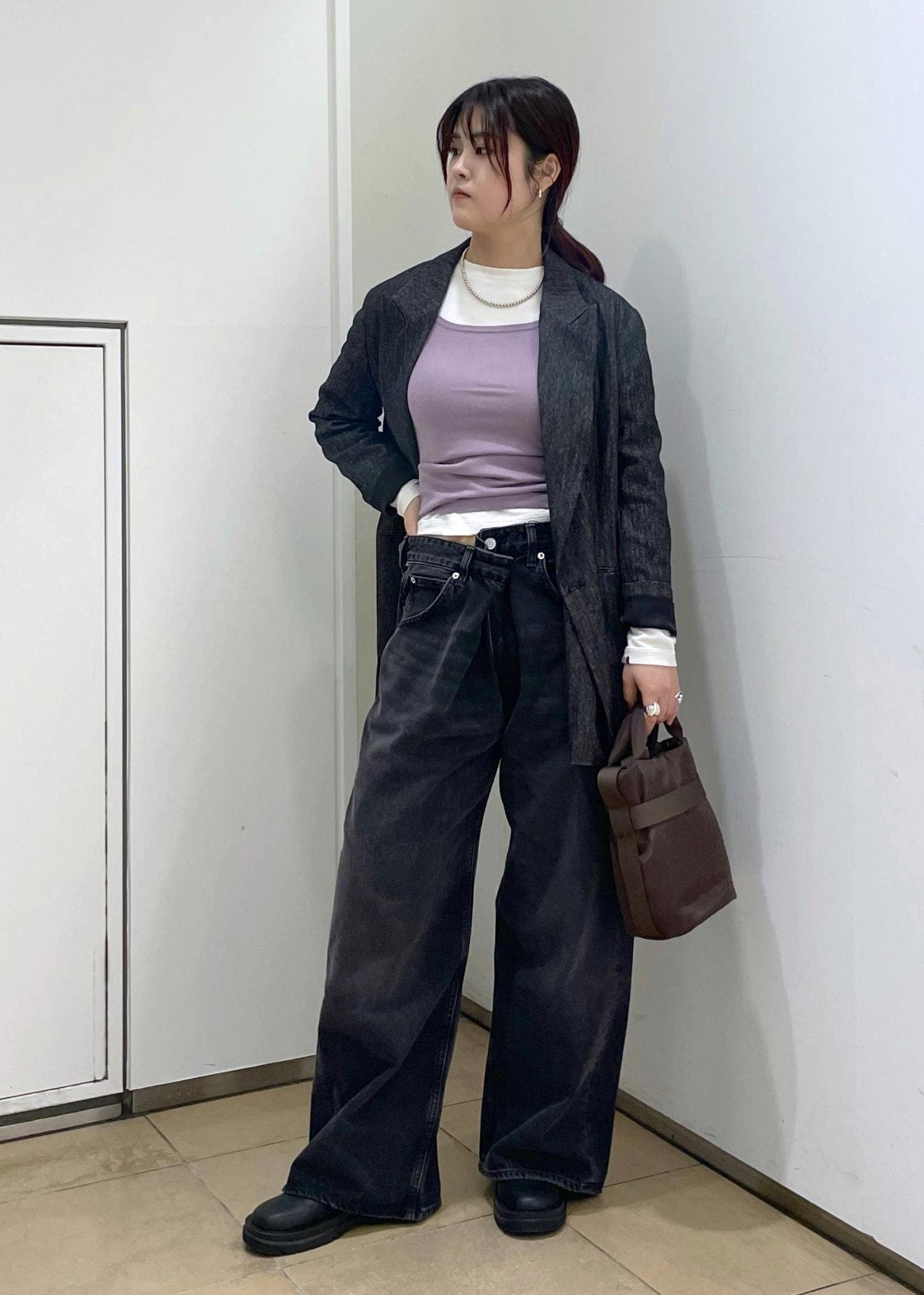 デニムの柔らかさとワイドな形が相まって、くたっと抜け感のあるシルエットになります。